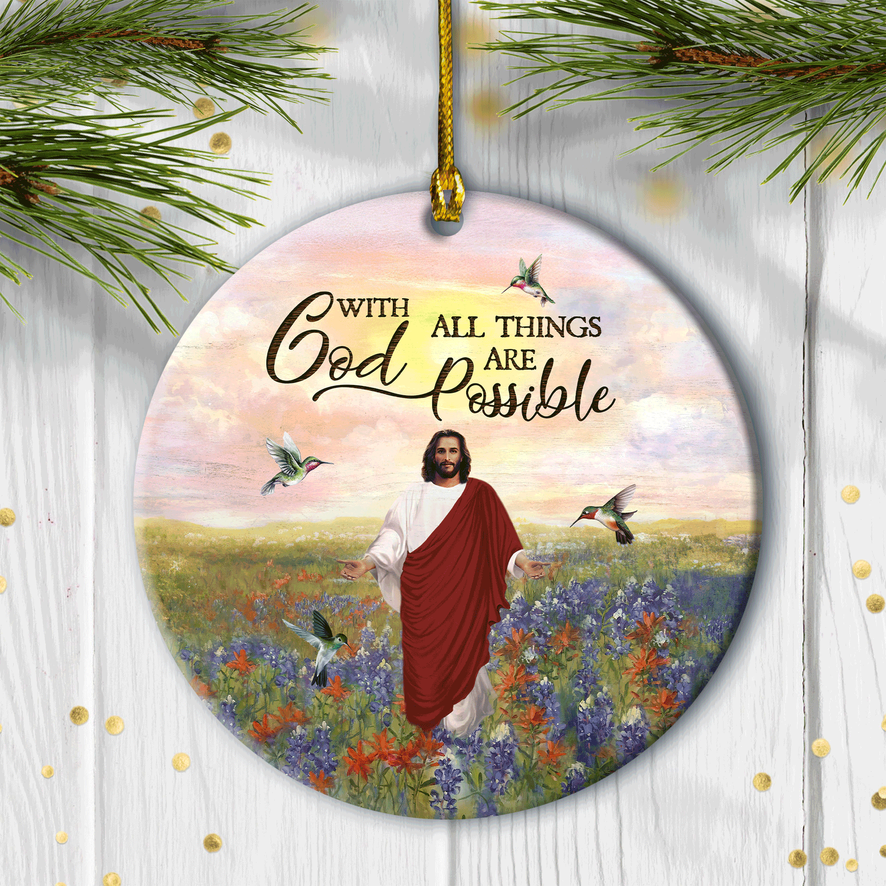 Jesus Circle Ceramic Ornament - Flower Field, hummingbird Circle Ceramic Ornament - Gift For Religious Christian - Jesus With All Things Are Possible