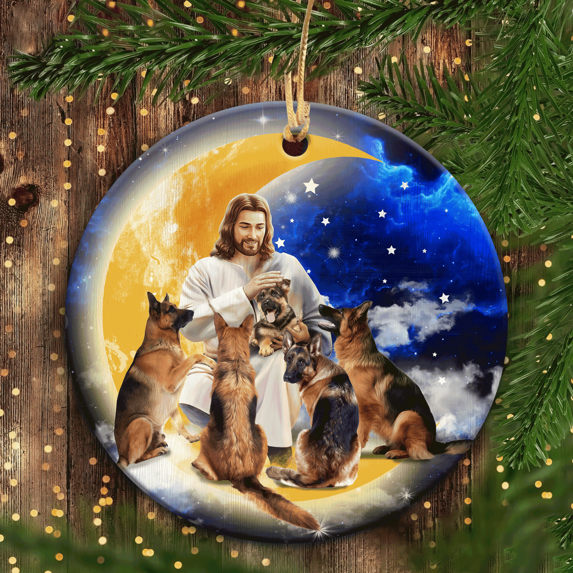 Jesus Circle Ceramic Ornament - German Shepherd, beautiful Night - Gift for Religious Christian, German Shepherd lover
