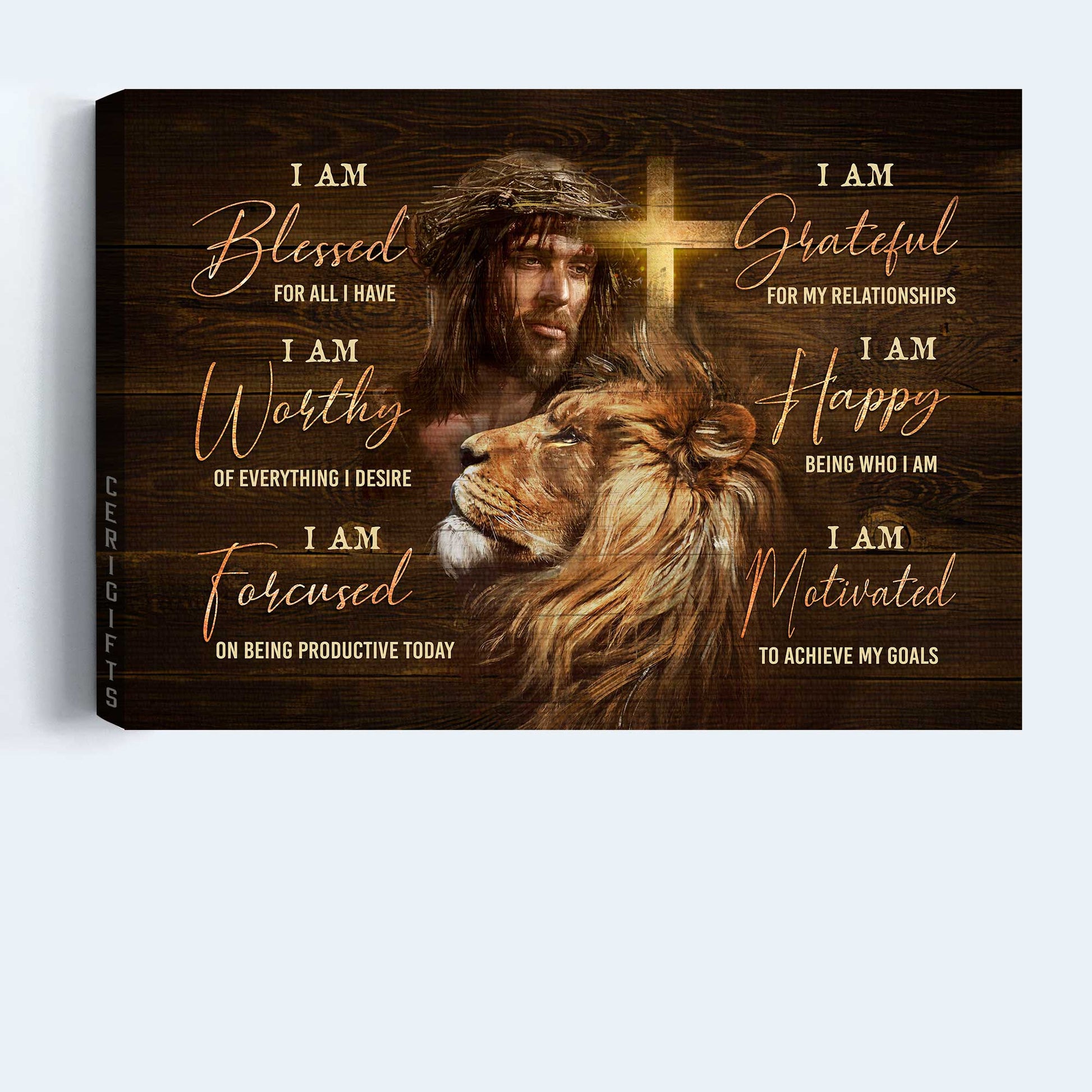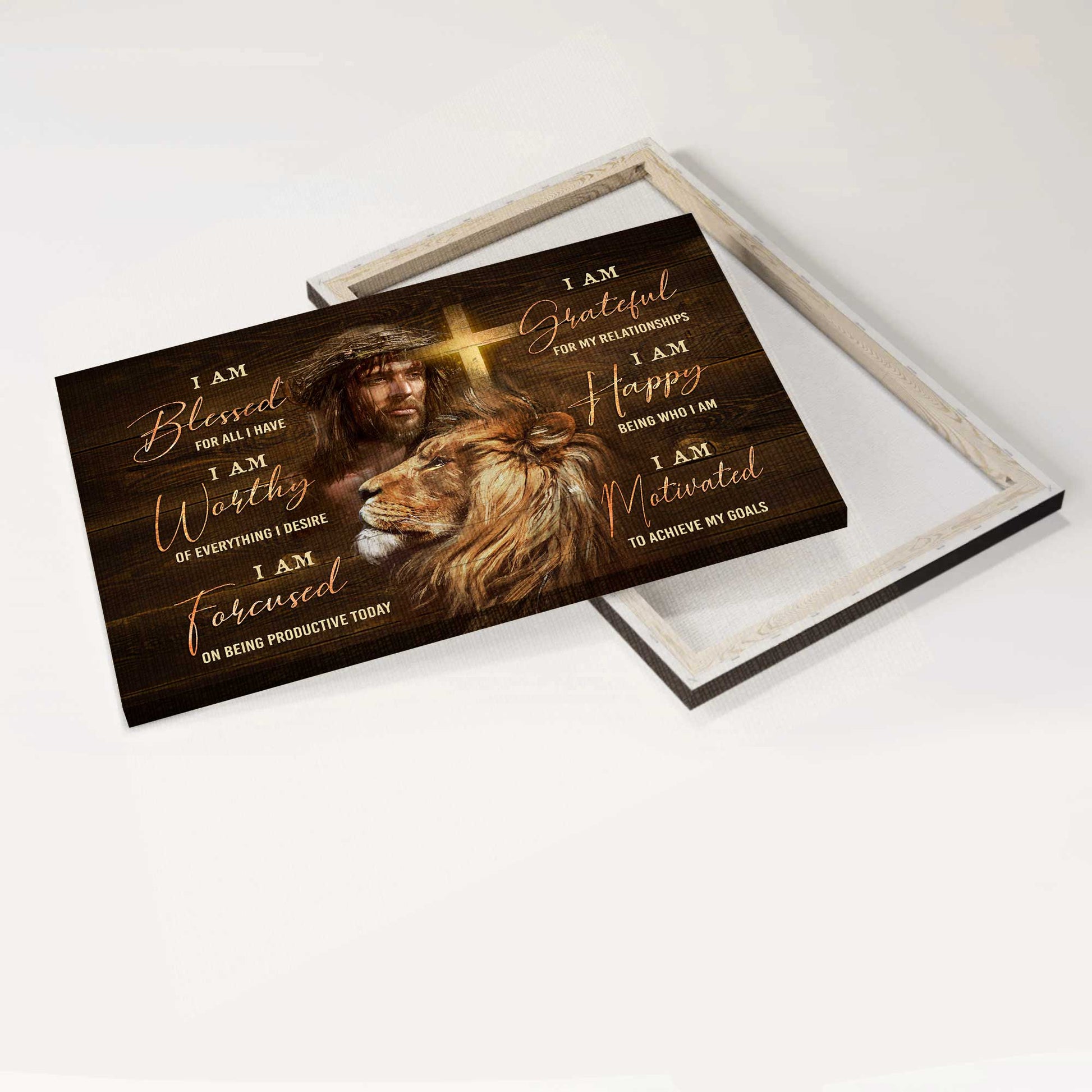 Perfect Wall Decoration: Jesus, Faith, God, Lion Head - Landscape Canvas - Motivational Quote, I Am Bless For All I Have is wall decor hang in office, living room, bedroom, this modern artwork design perfect matches any space and any home decor style.