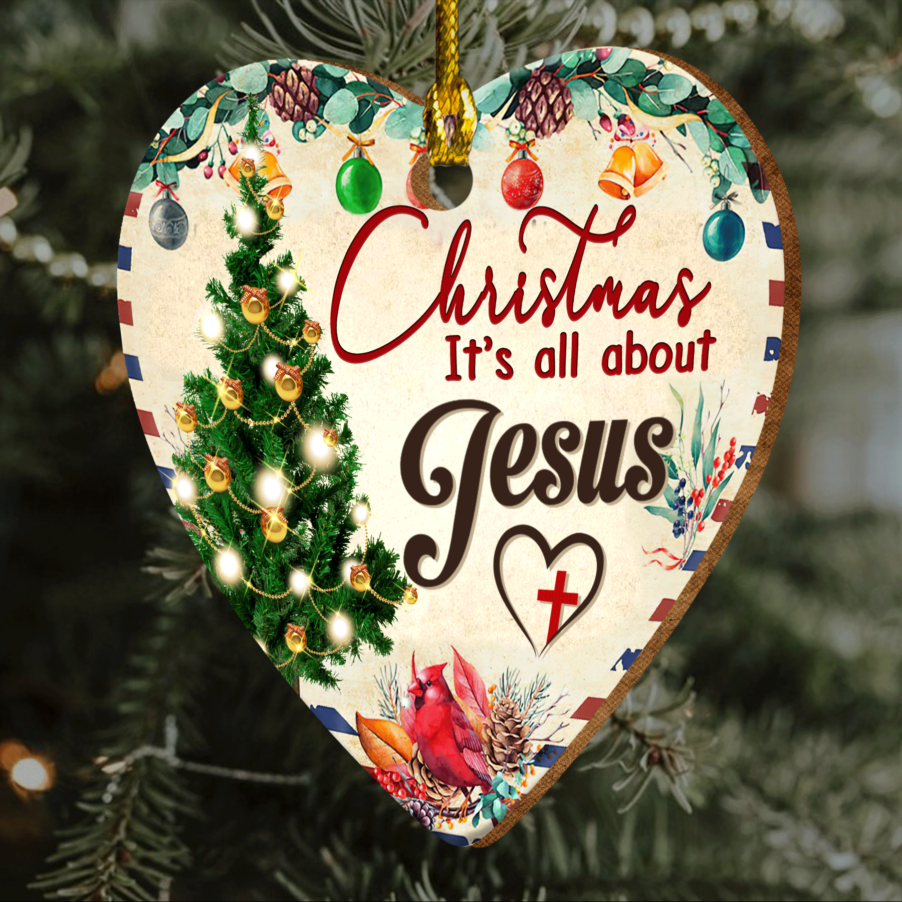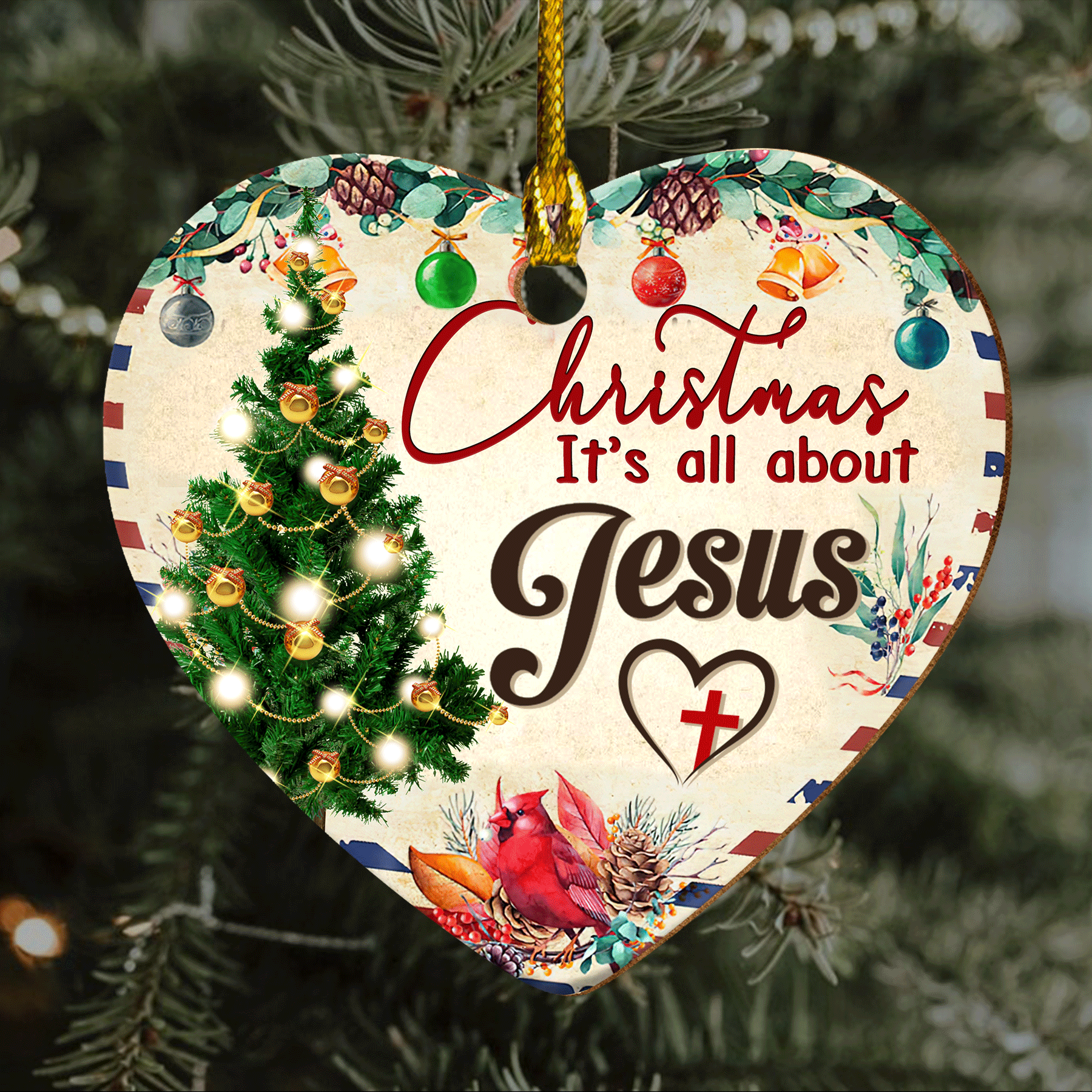Jesus Heart Ceramic Ornament - Cardinal, Chrismas Tree, Cross Symbol, Christmas It's All About Jesus Ceramic Ornament Gifts For Religious Christian