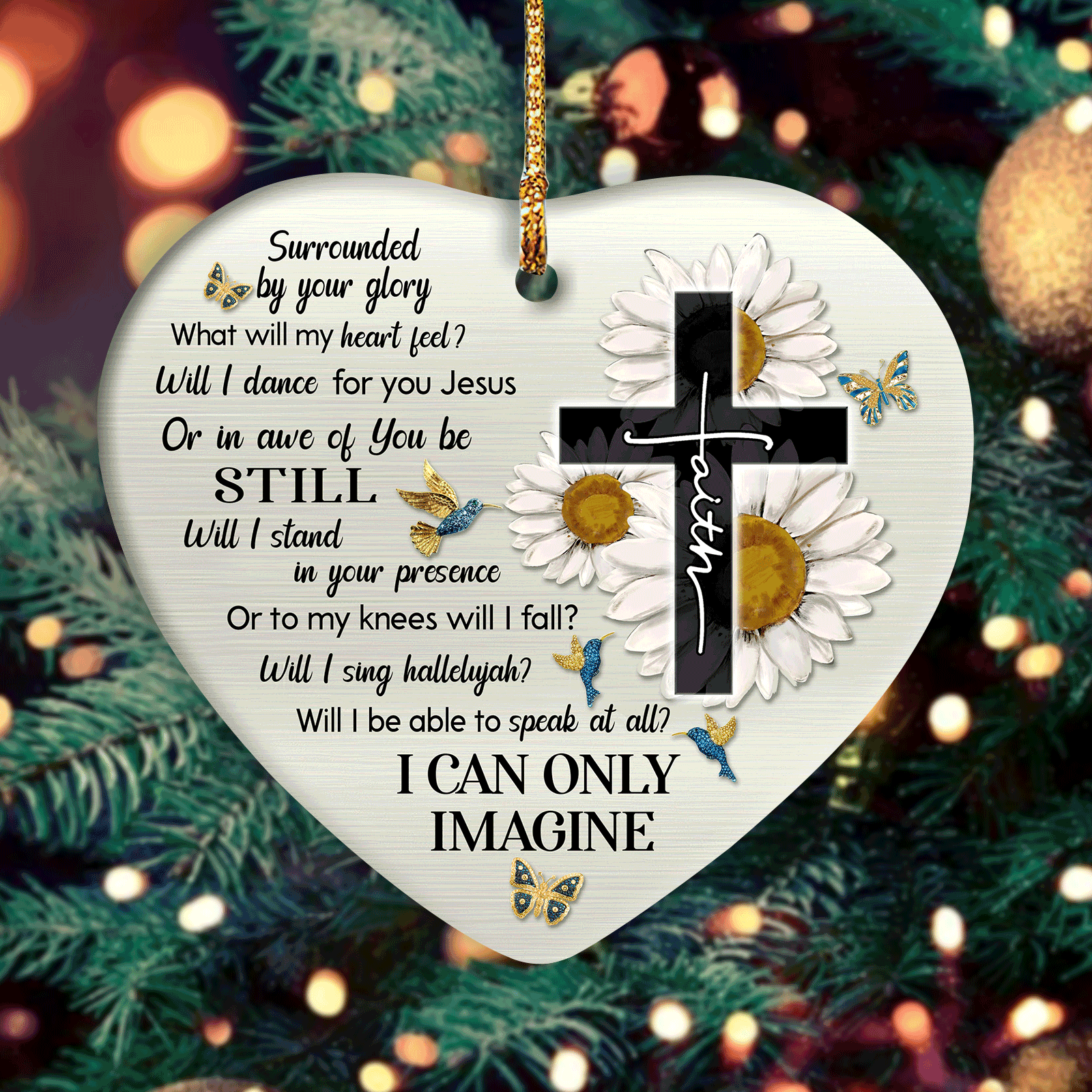Jesus Heart Ceramic Ornament- Faith Cross, Daisy Flower, Hummingbird, Pretty Butterfly- Gift For Christian- I Can Only Imagine