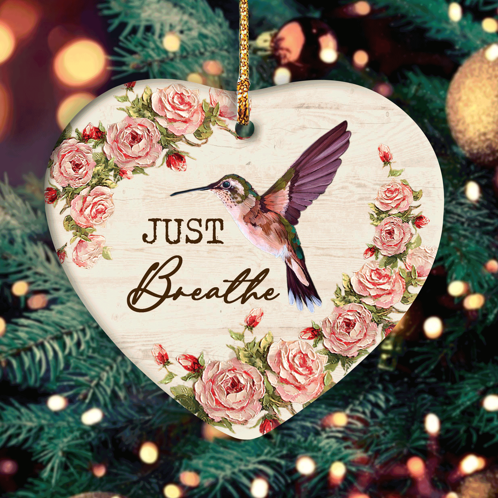 Jesus Heart Ceramic Ornament - Hummingbird, Red roses - Christian Gift For Christmas - Just breathe