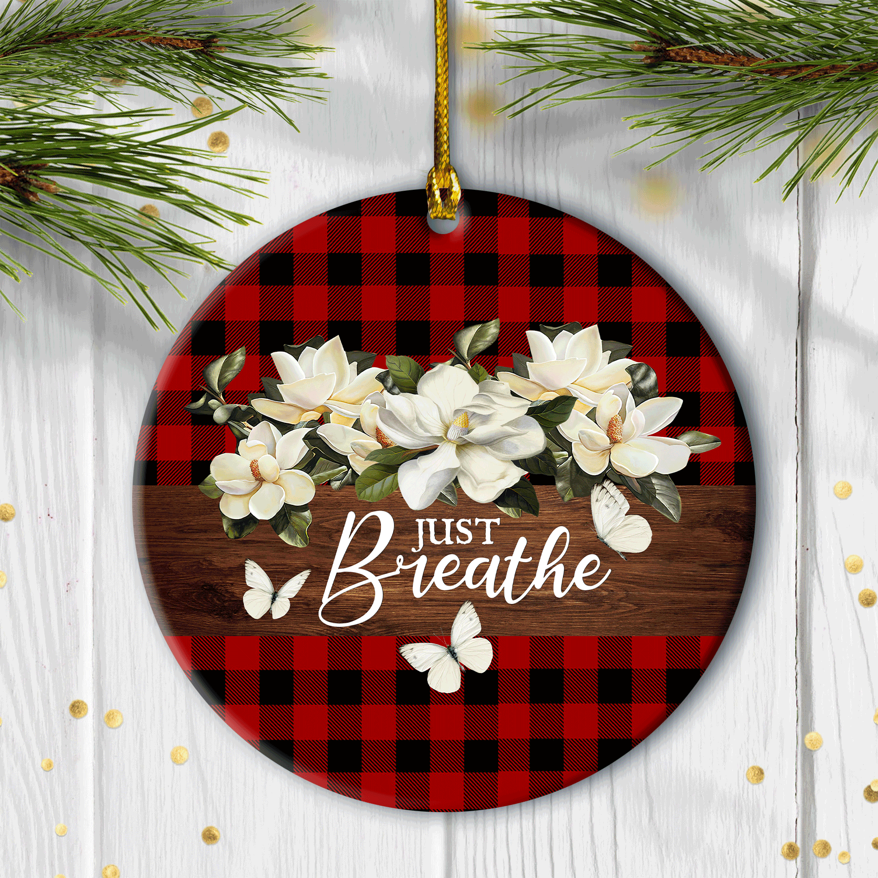 Jesus - Circle Ceramic Ornament - Jasmine Flower, Just Breathe - Gift For Religious Christian