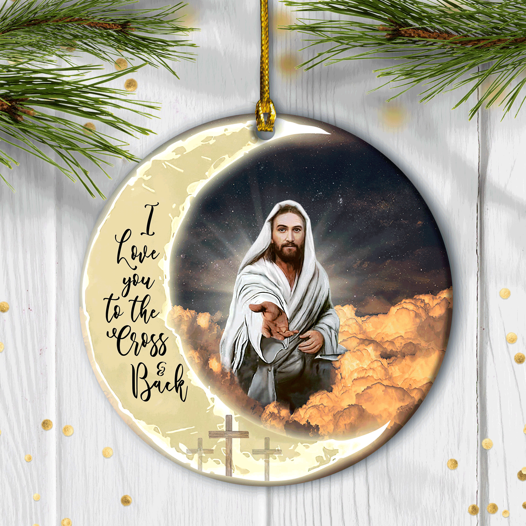 Jesus - Jesus Circle Ceramic Ornament - Crescent Moon, Come To Jesus, Cross Symbol - I Love You To The Cross And Back - Christian Gift, Gifts For Christmas Home Decor.