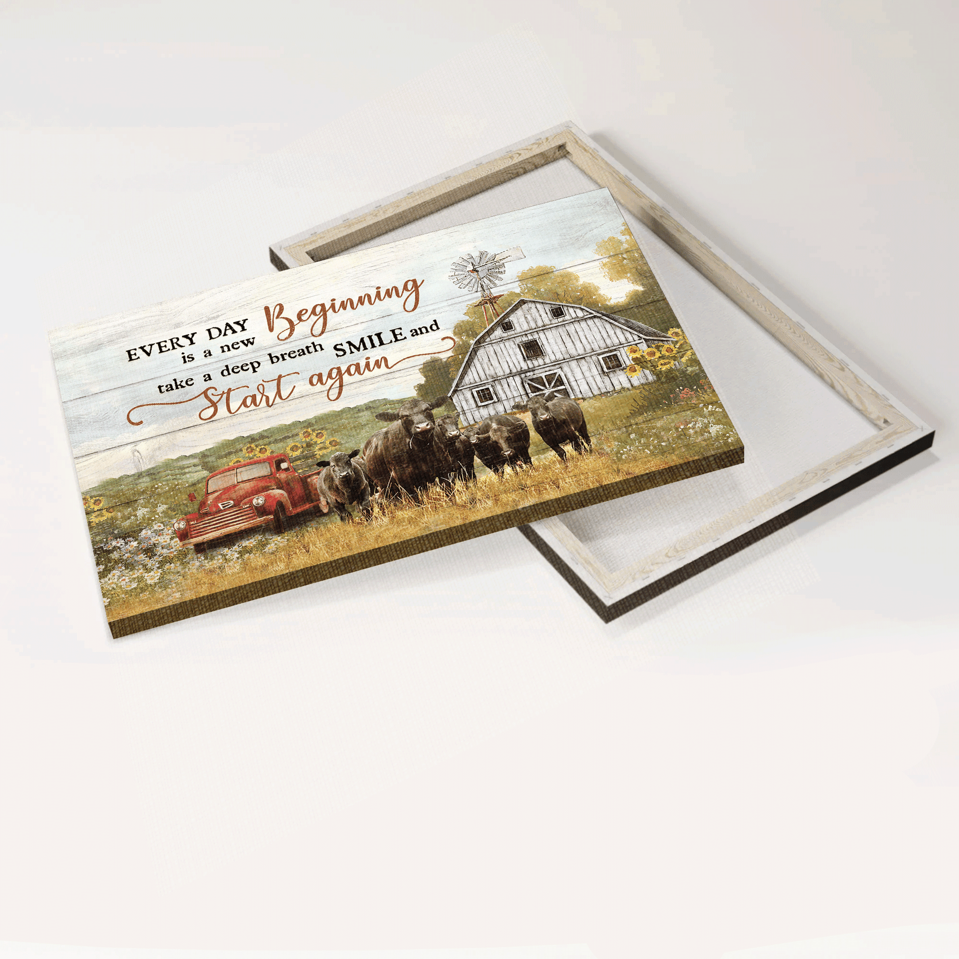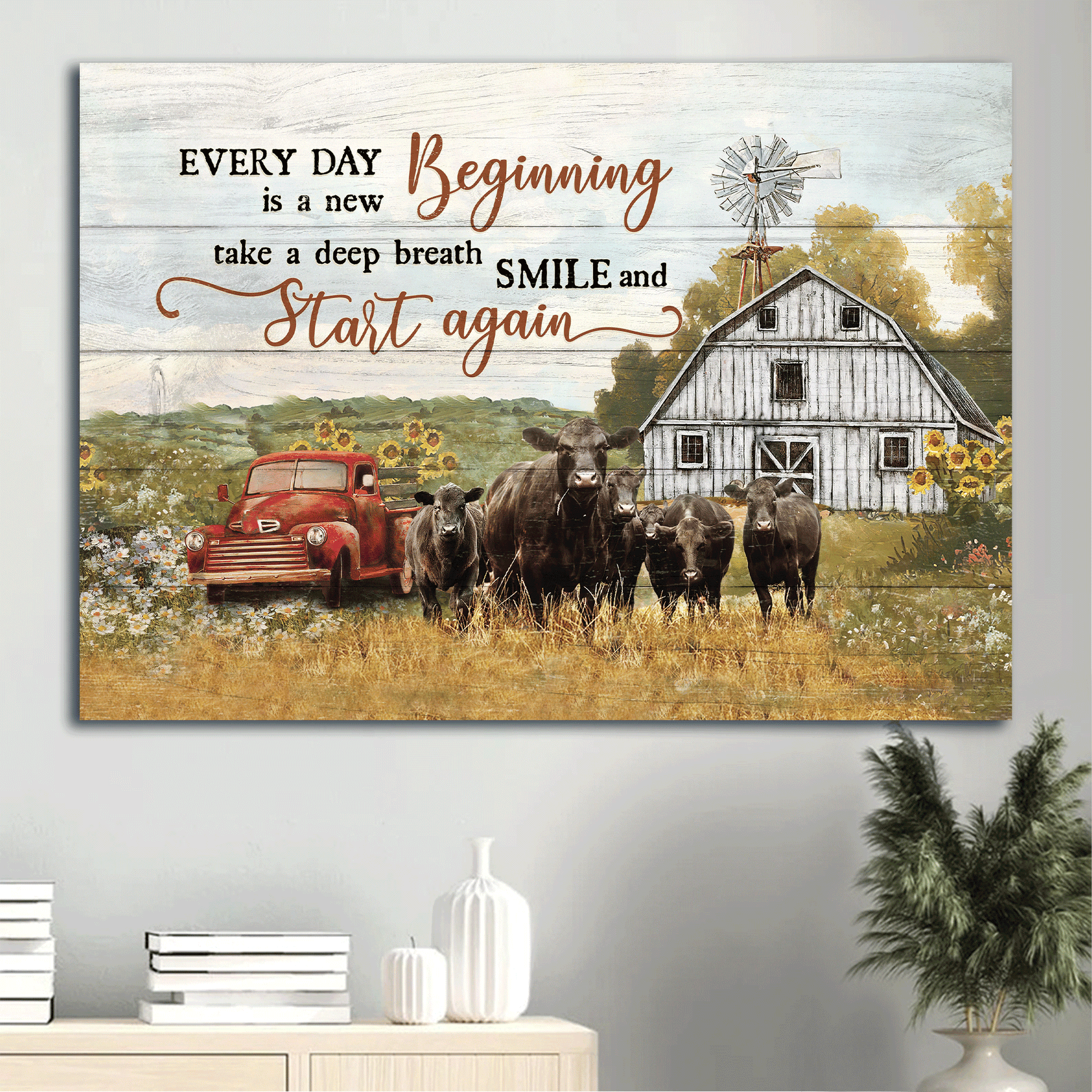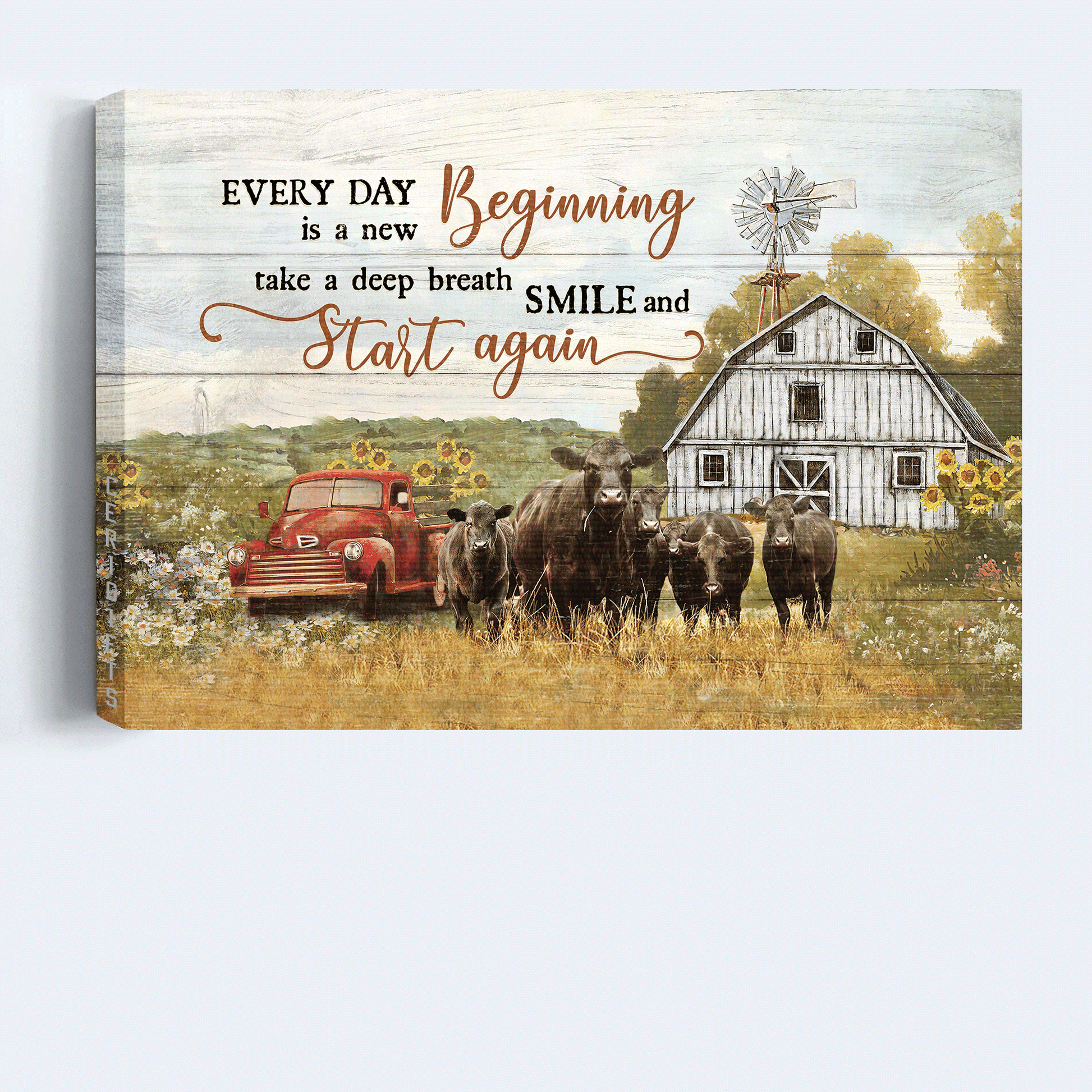 Jesus Landscape Canvas- Aberdeen Angus Canvas, Sunflower Car, Tranquil Farm- Gift For Religious Christian- Every Day Is A New Beginning.