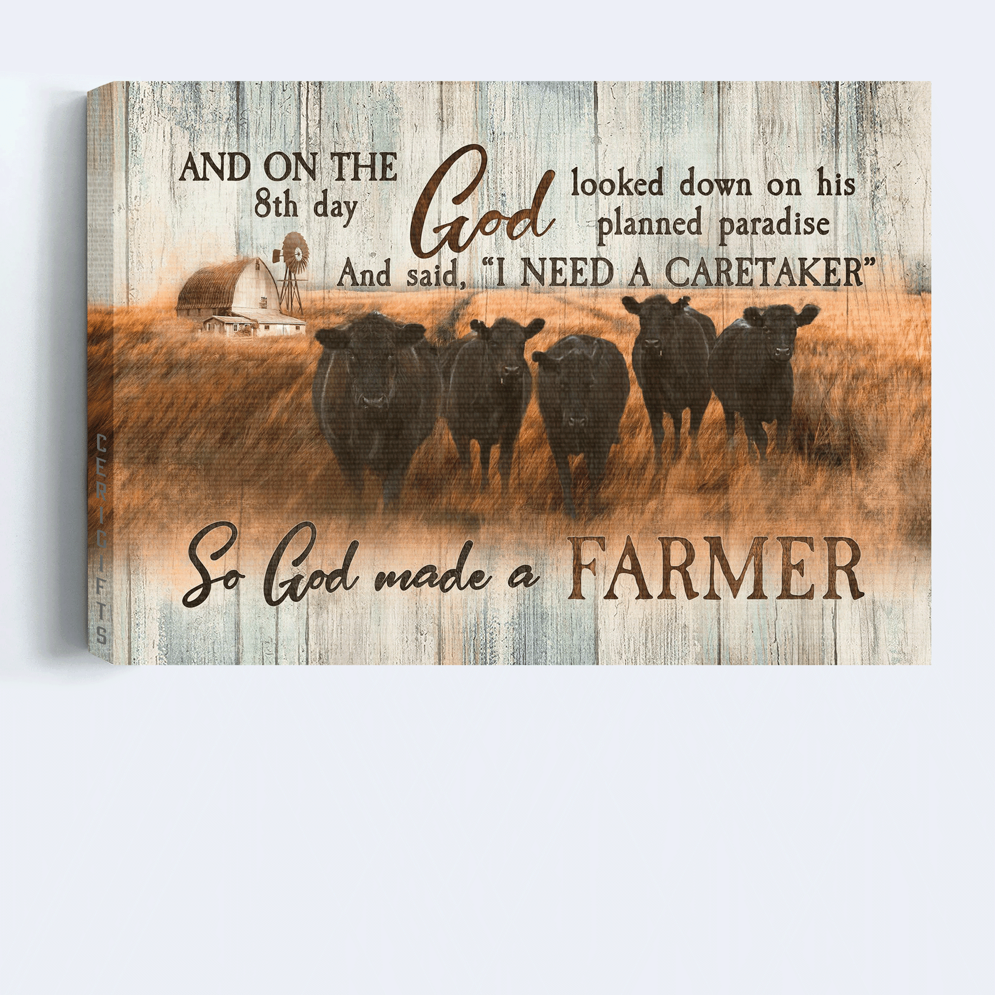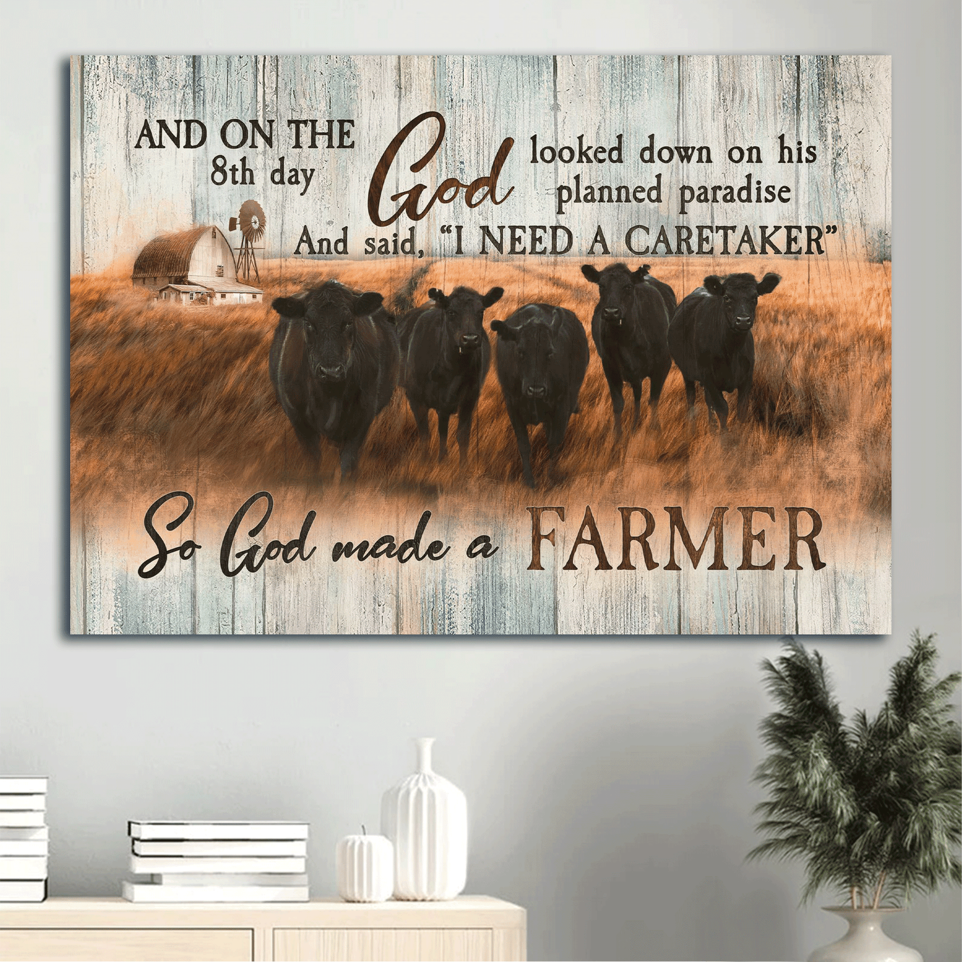 Jesus Landscape Canvas- Aberdeen Angus Canvas, Tranquil Farm Landscape Canvas- Gift For Religious Christian- God Looked Down On His Planned Paradise.