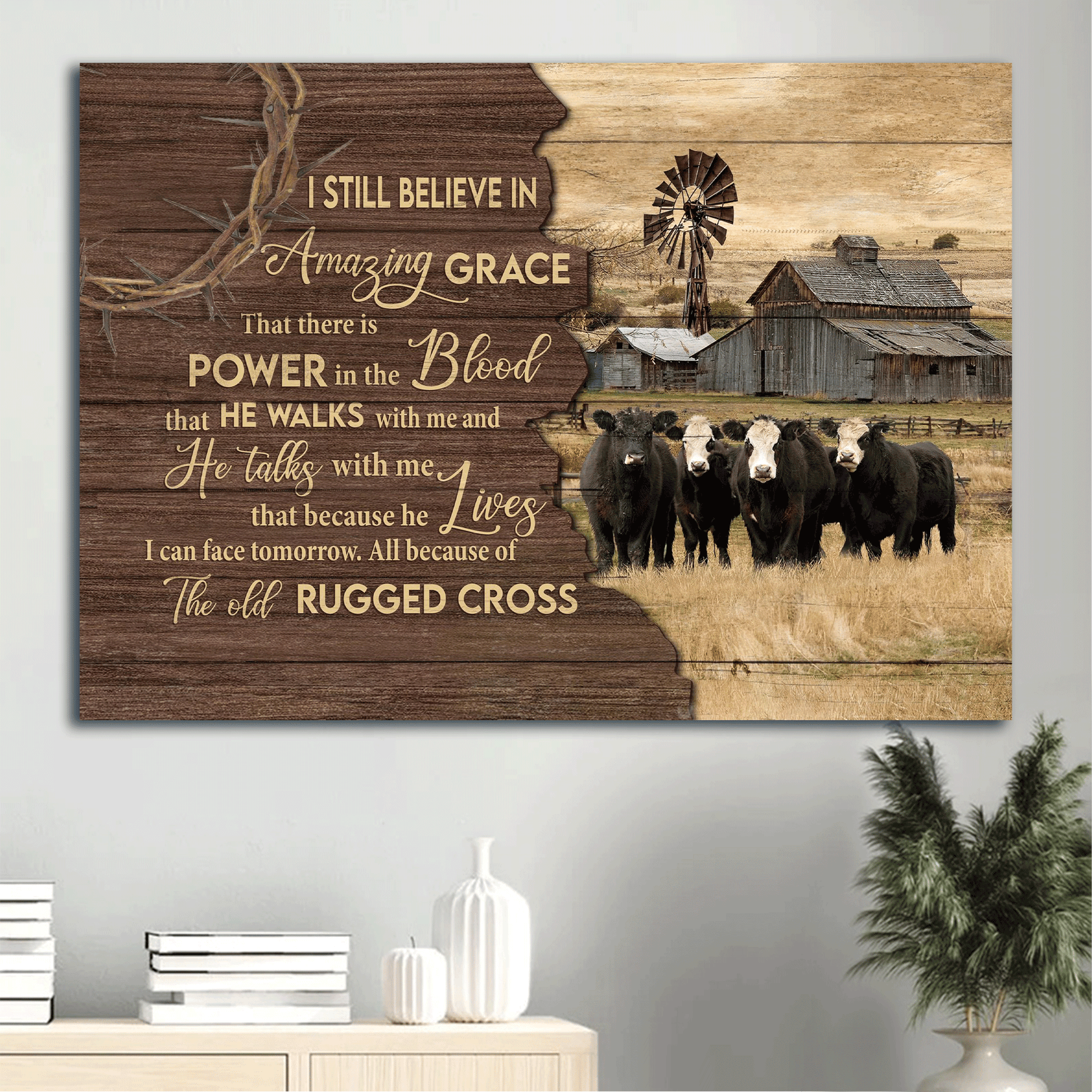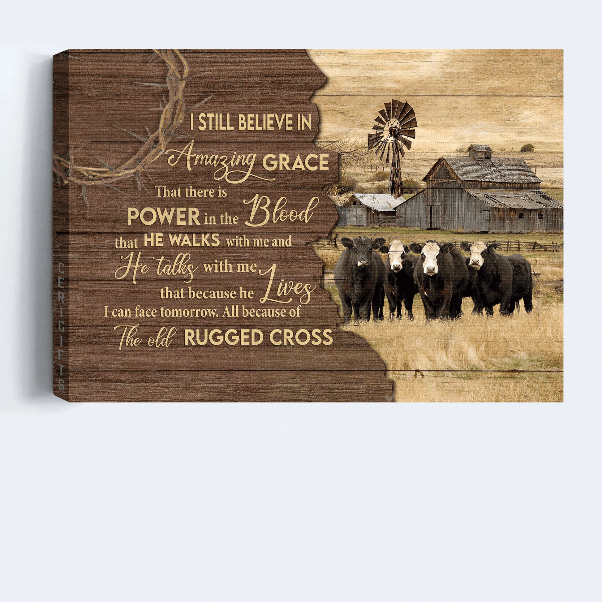Jesus Landscape Canvas- Aberdeen Angus Canvas, Tranquil Farm Landscape Canvas- Gift For Religious Christian- The Old Rugged Cross.