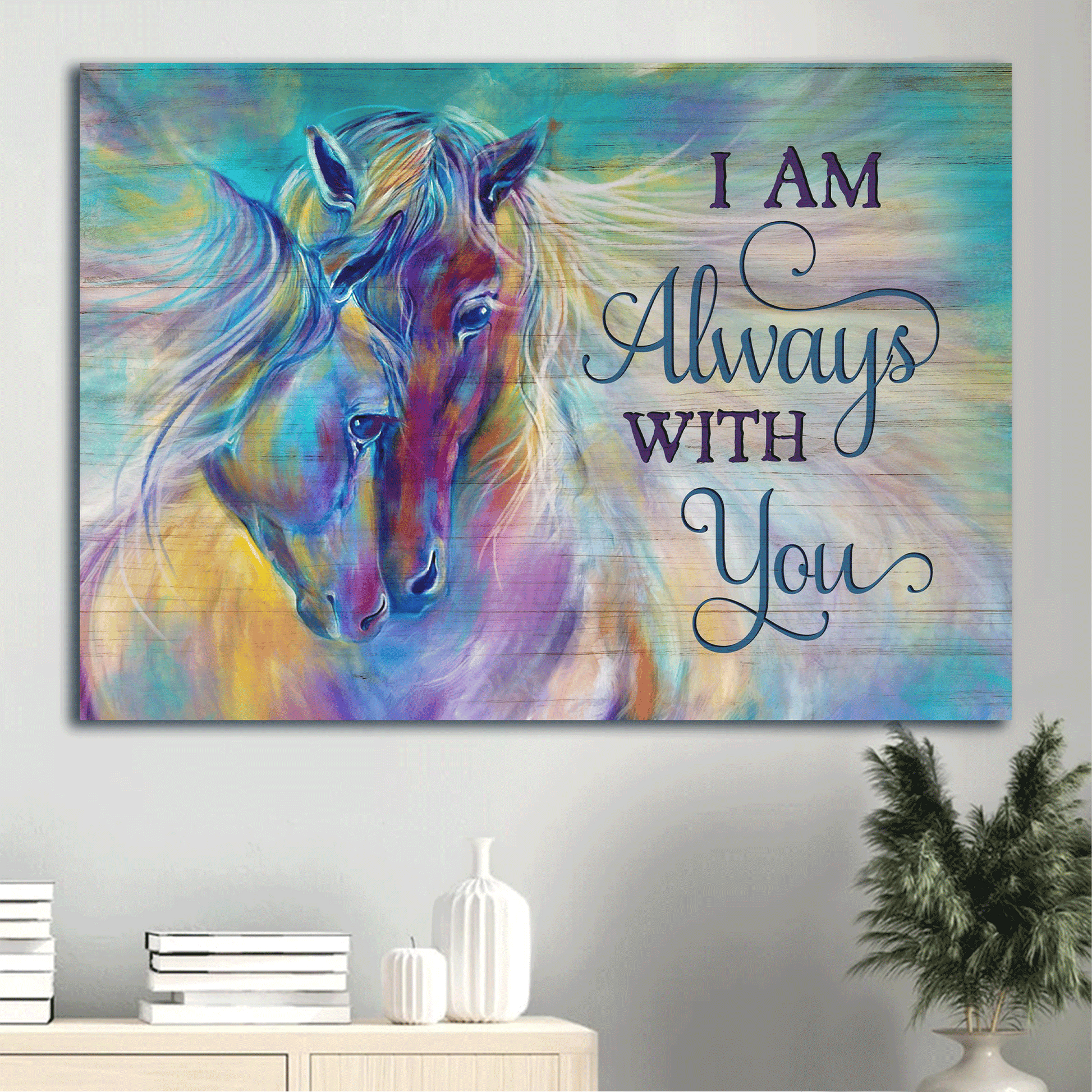 Jesus Landscape Canvas- Abstract Art, Watercolor Horses, Sweet Couple Landscape Canvas- Gift For Religious Christian- I Am Always With You.