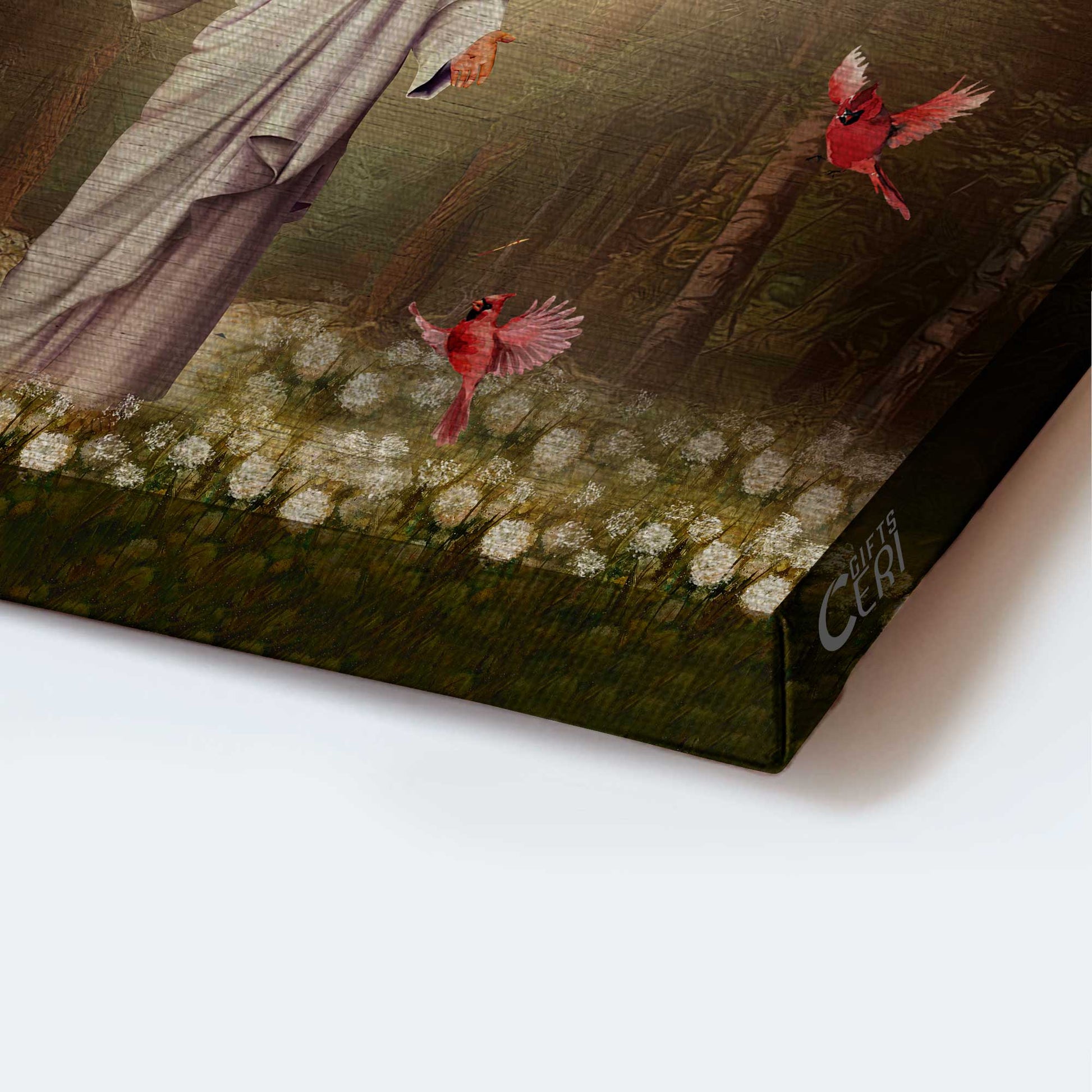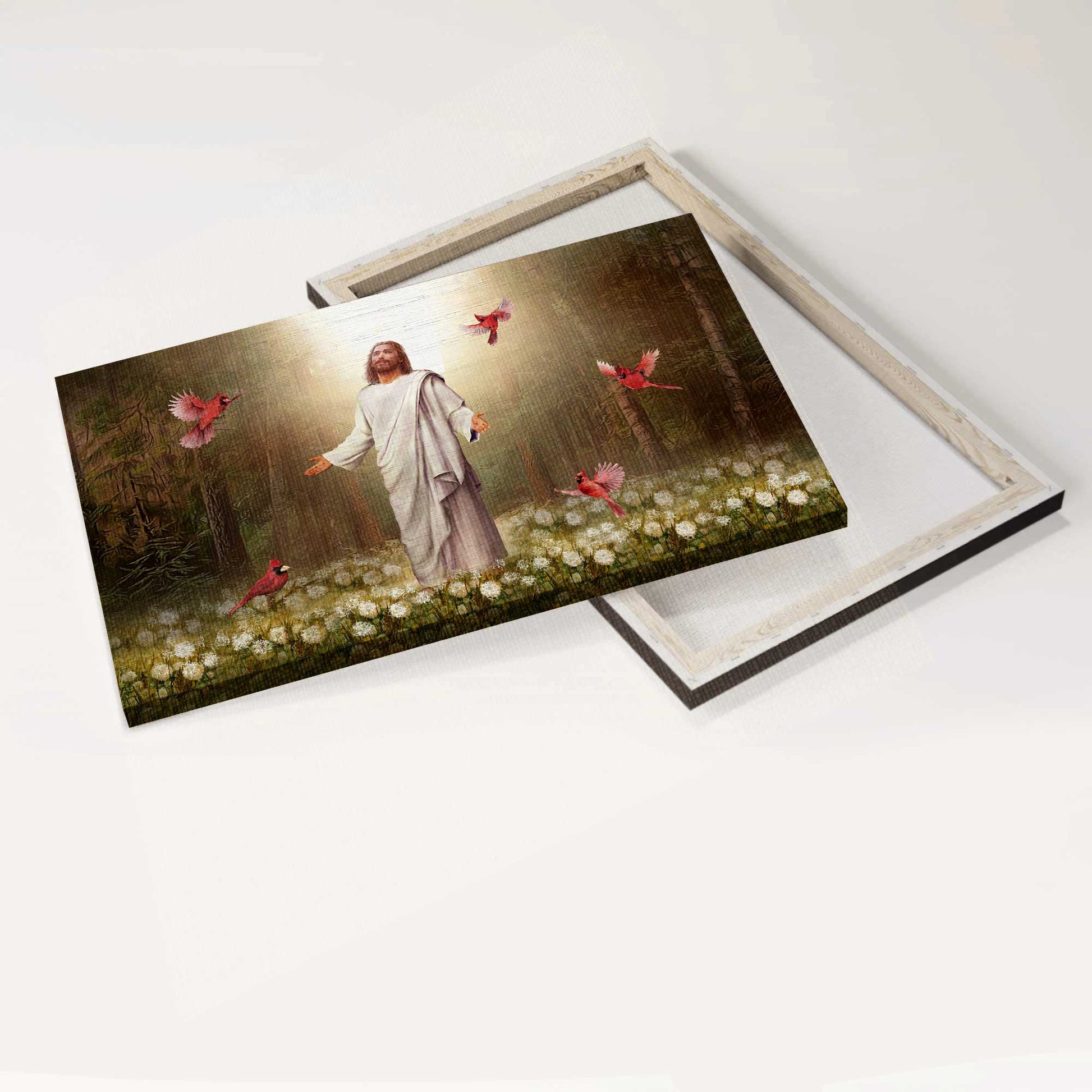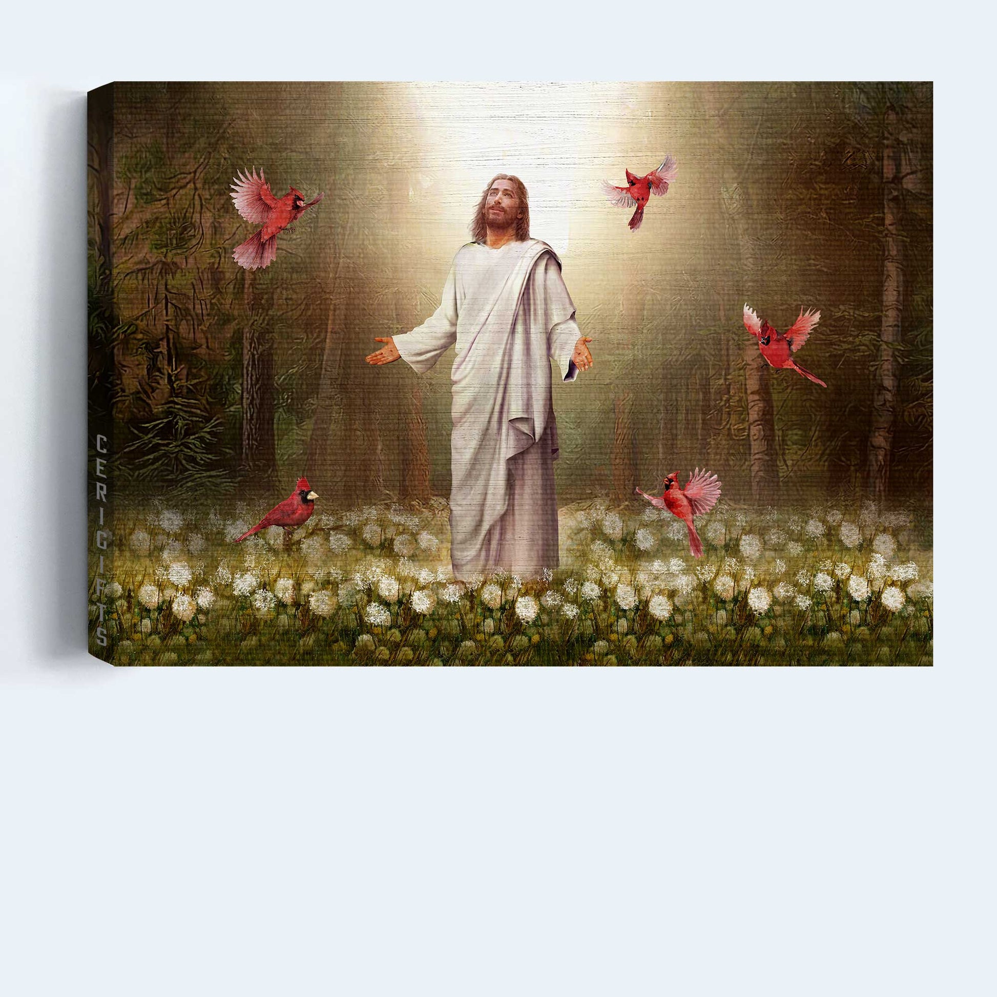 Jesus Landscape Canvas- Amazing Forest, Jesus Painting, Pretty Cardinal, Beautiful Dandelion Field Landscape Canvas- Gift For Christian