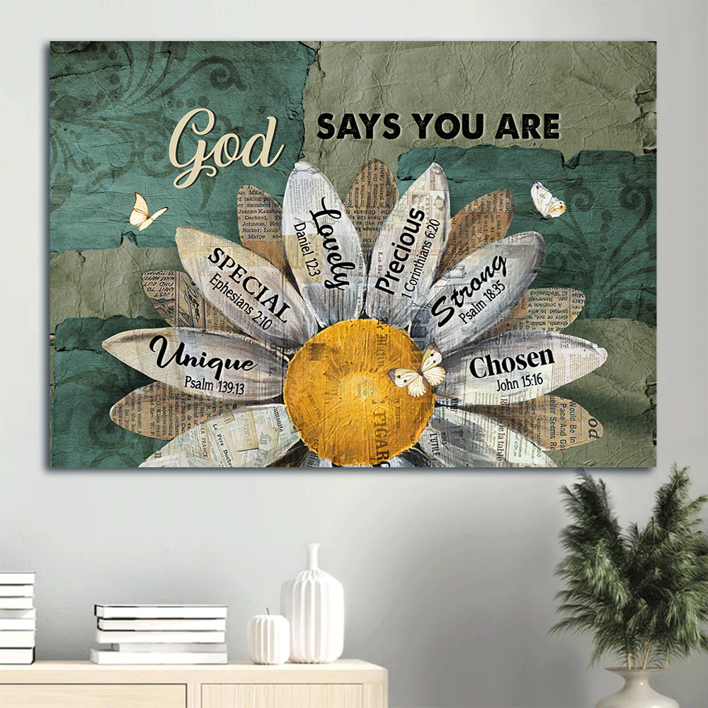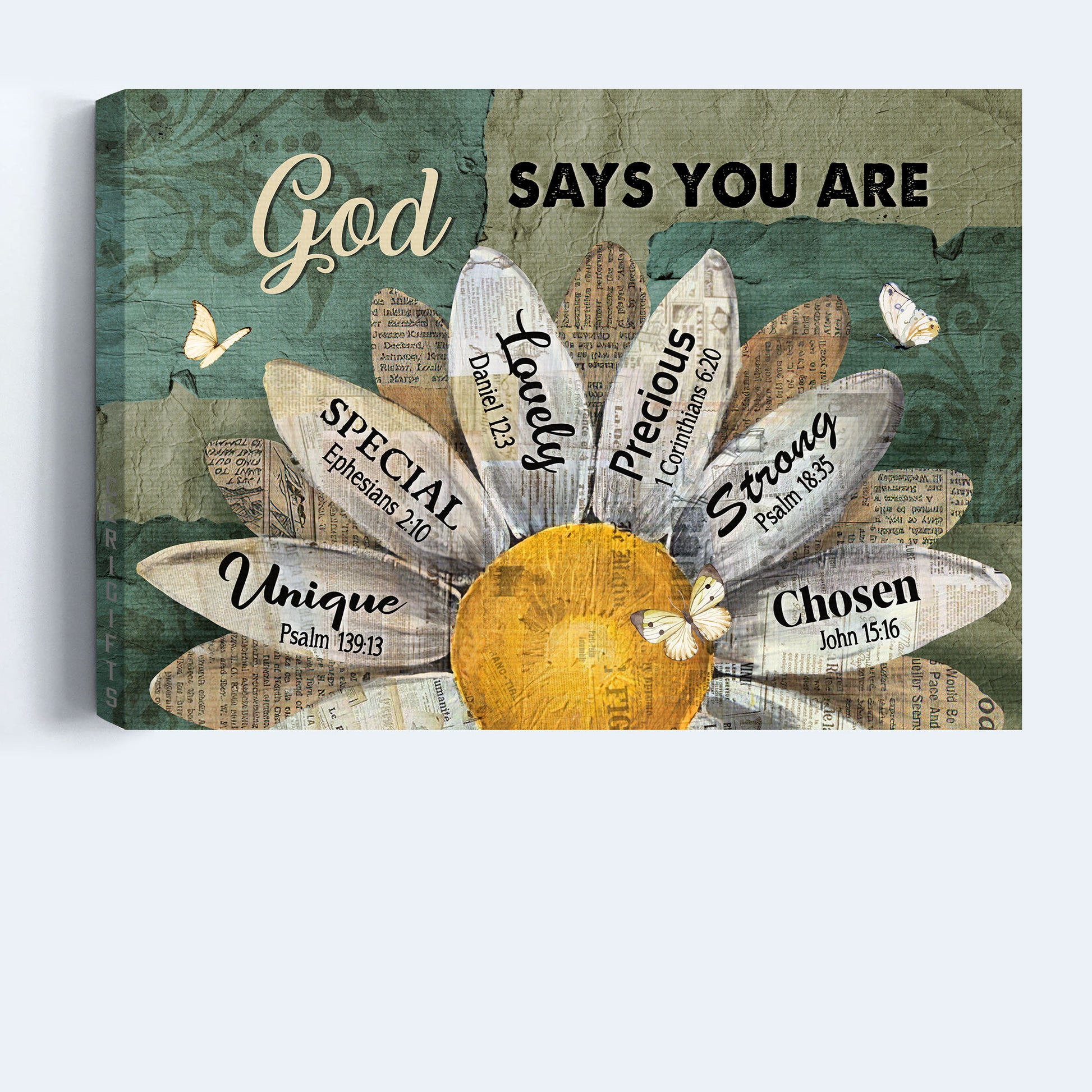 Amazing sunflower, White butterfly, Blue background, God says you are - Jesus Landscape Canvas Prints, Christian Wall Art can be hung on the wall of your kitchen, living room, bedroom, bathroom and even outdoor space.