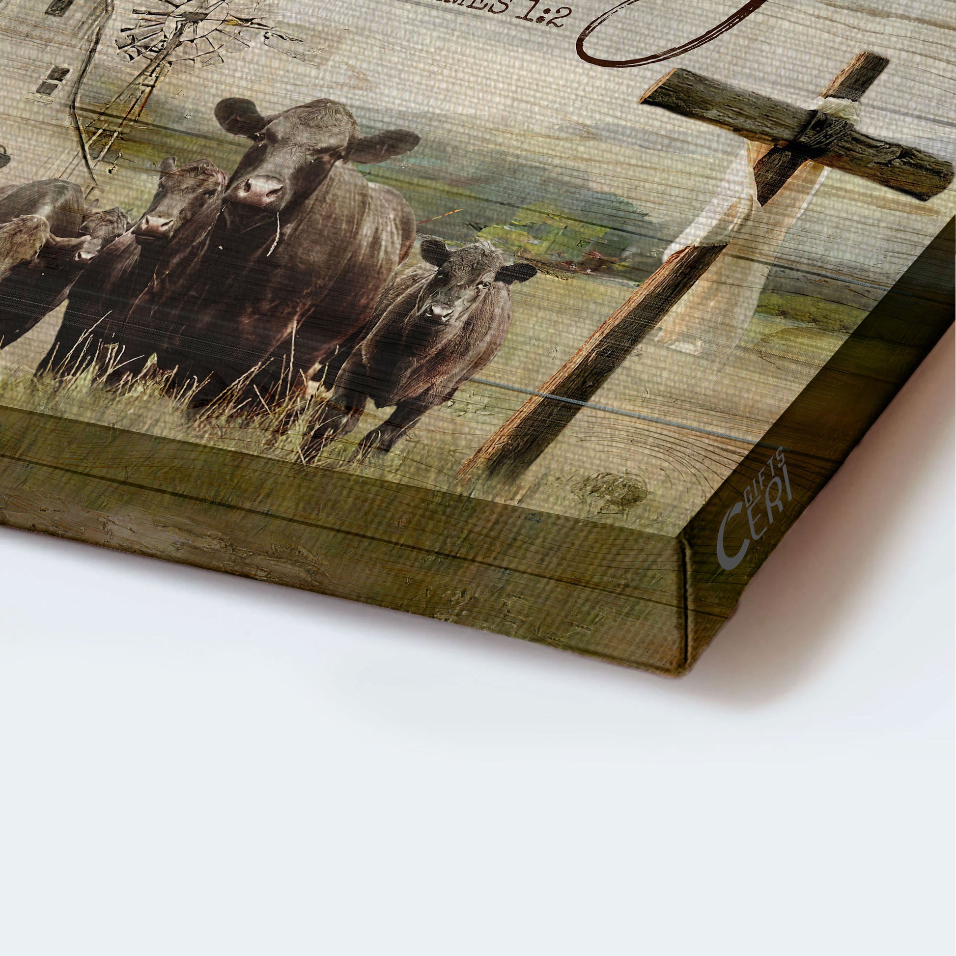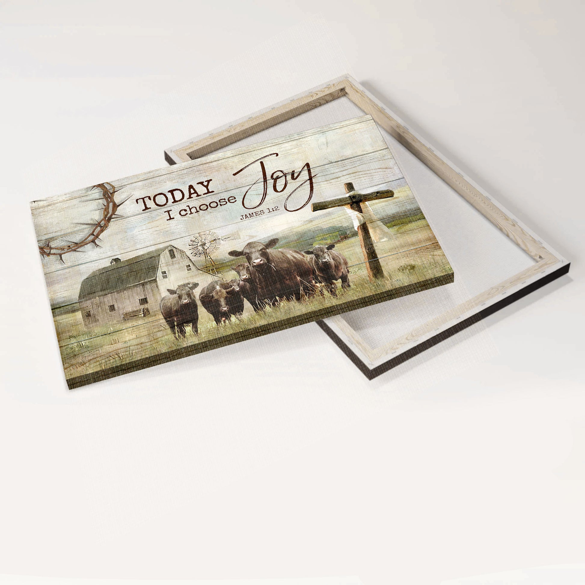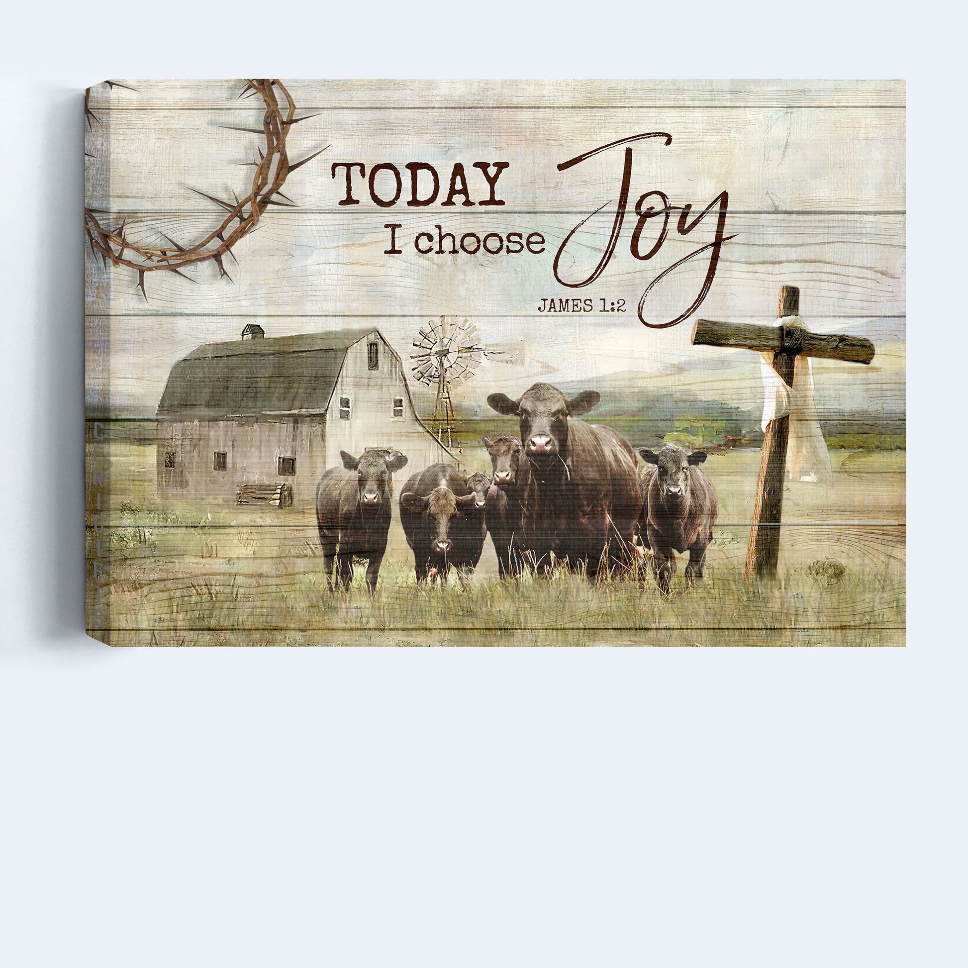 Jesus Landscape Canvas - Angus Cow, Tranquil farm, Old Barn Painting, Wooden Cross Landscape Canvas - Gift For Religious Christian - Today I choose joy
