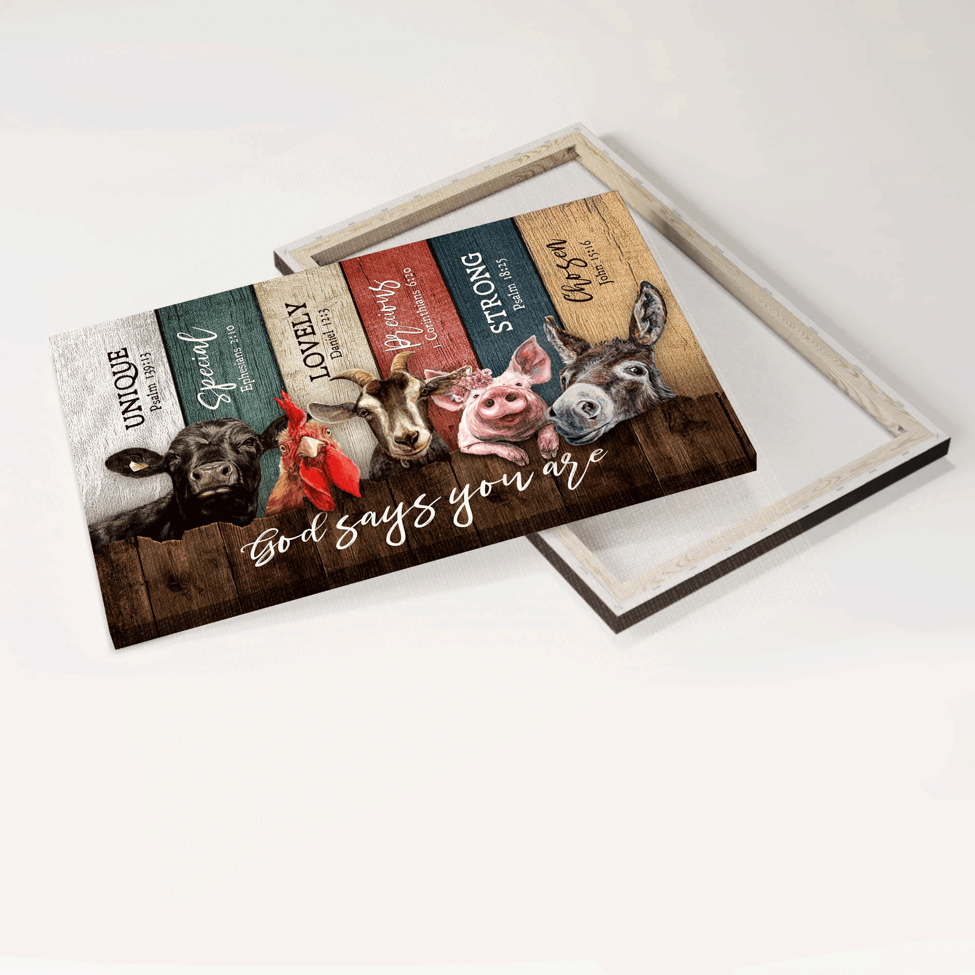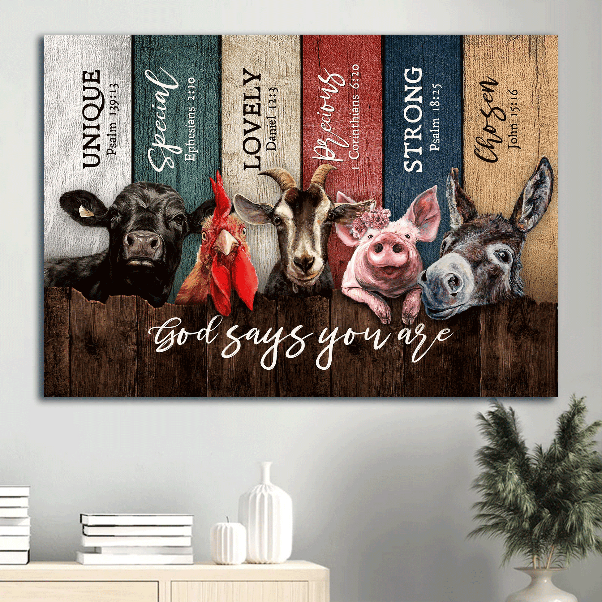 Jesus Landscape Canvas- Animals On Farm, Animal Painting Landscape Canvas- Gift For Christian, Farm Lover- God Says You Are.