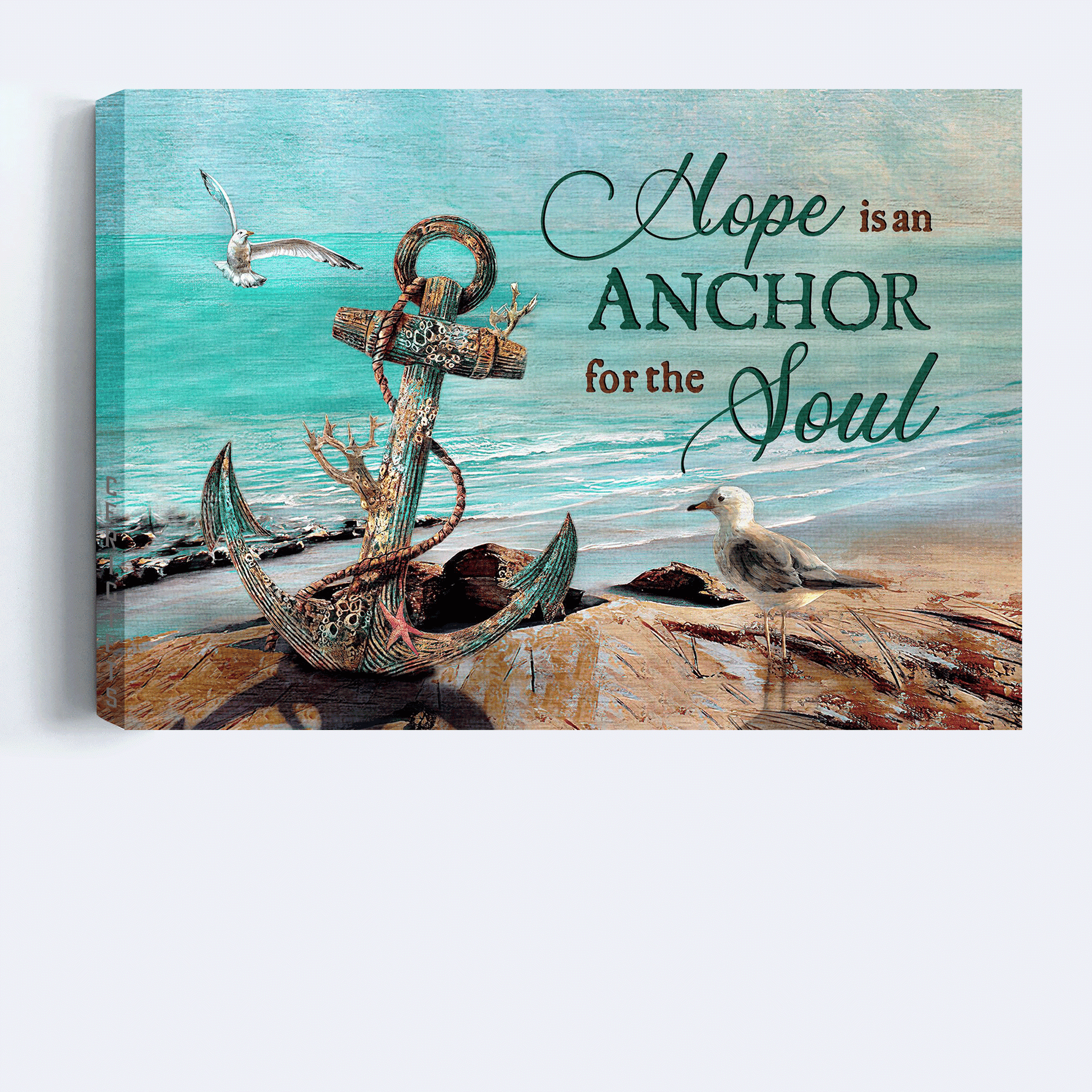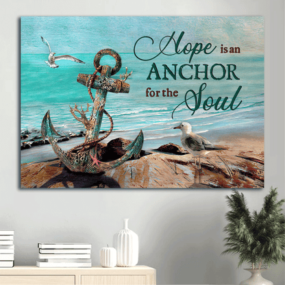 Jesus Landscape Canvas- Antique Anchor, Brilliant Ocean, Seagull, Blue Ocean Canvas- Gift For Christian- Hope Is An Anchor For The Soul