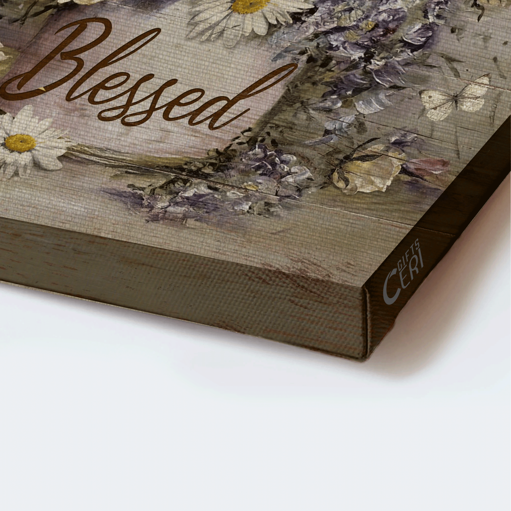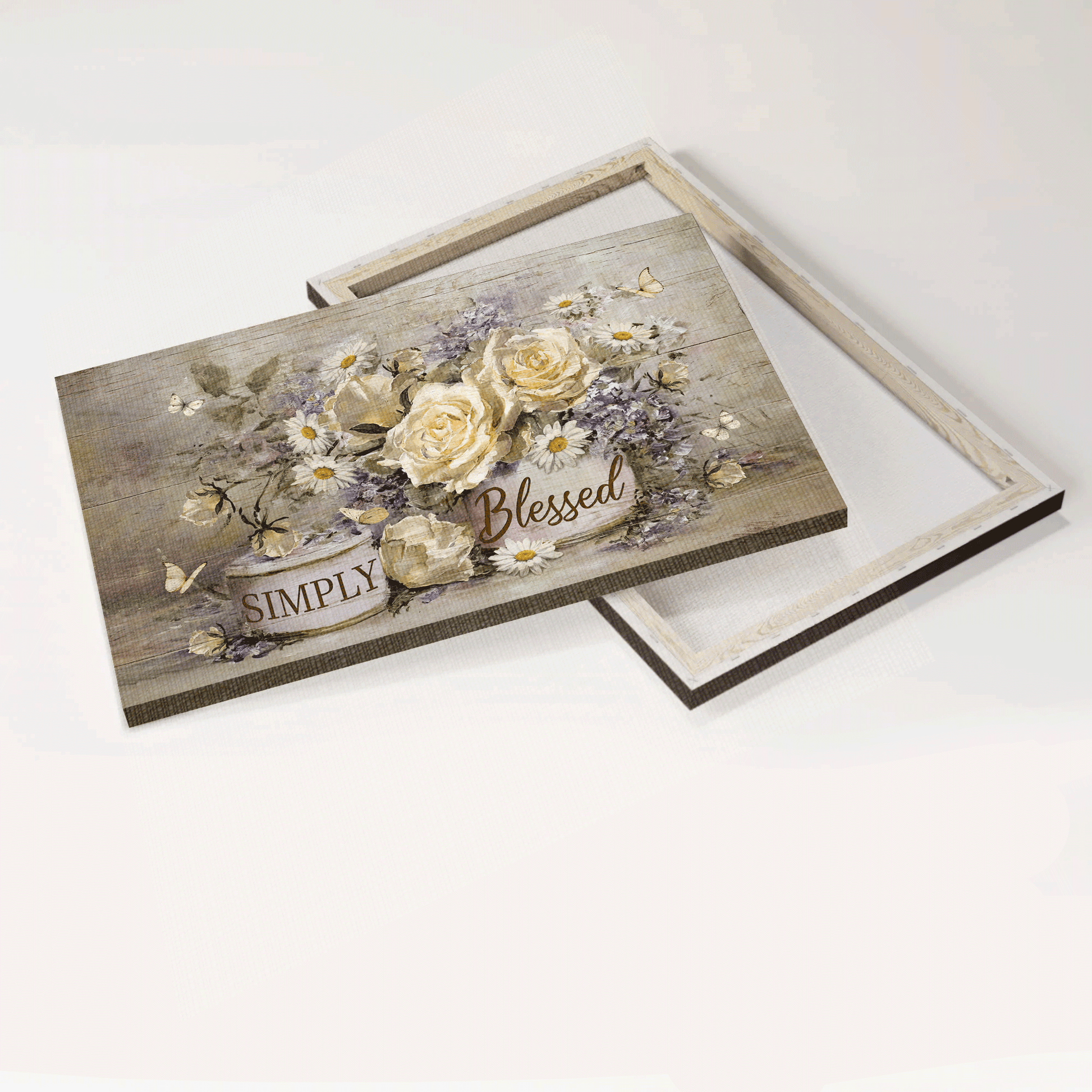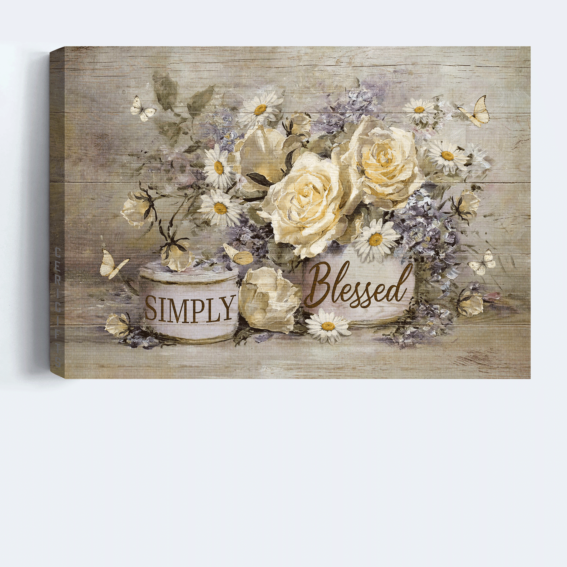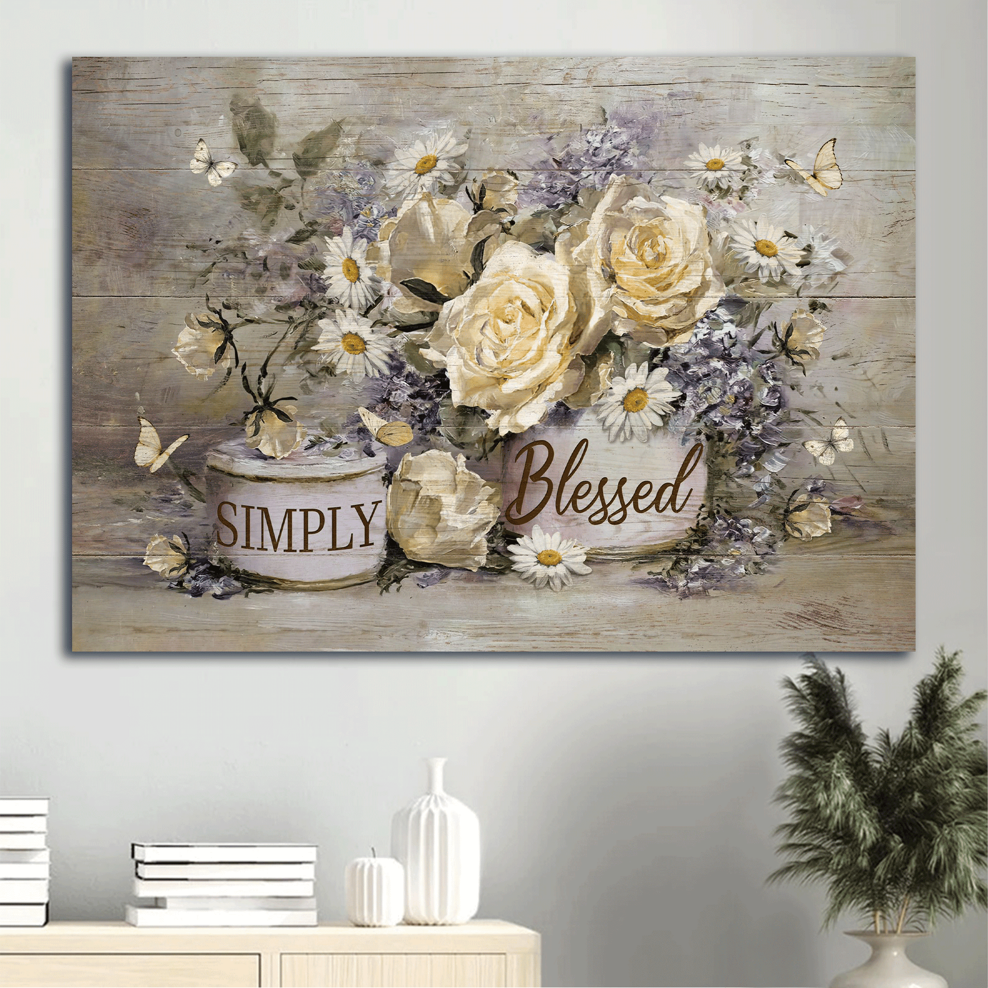 Jesus Landscape Canvas- Antique Artwork, Vintage Flower, Yellow Butterfly Landscape Canvas, Simply Blessed Canvas- Gift For Christian.