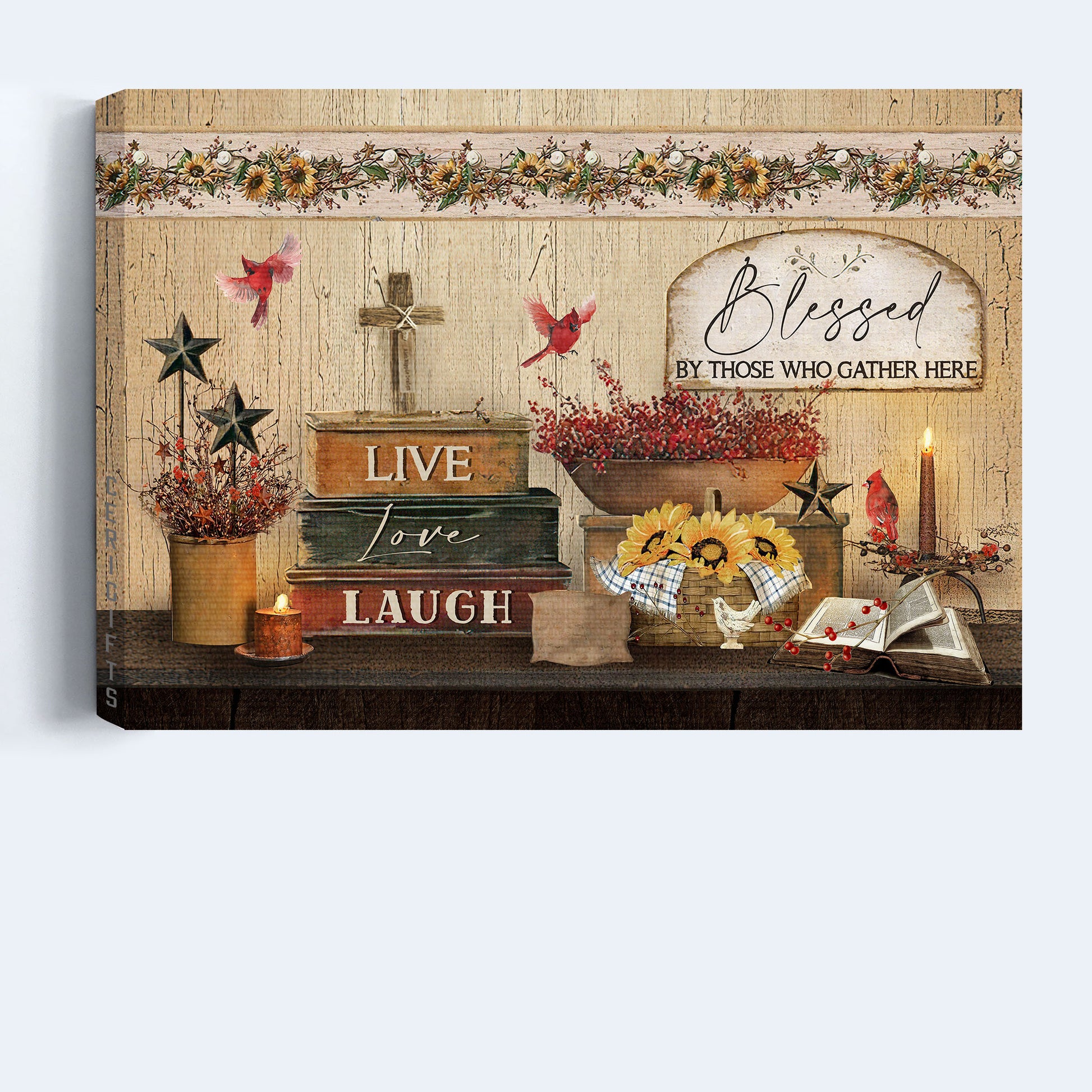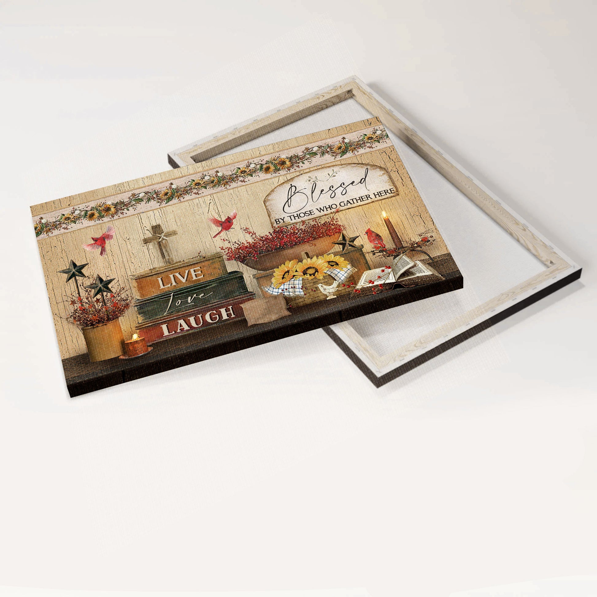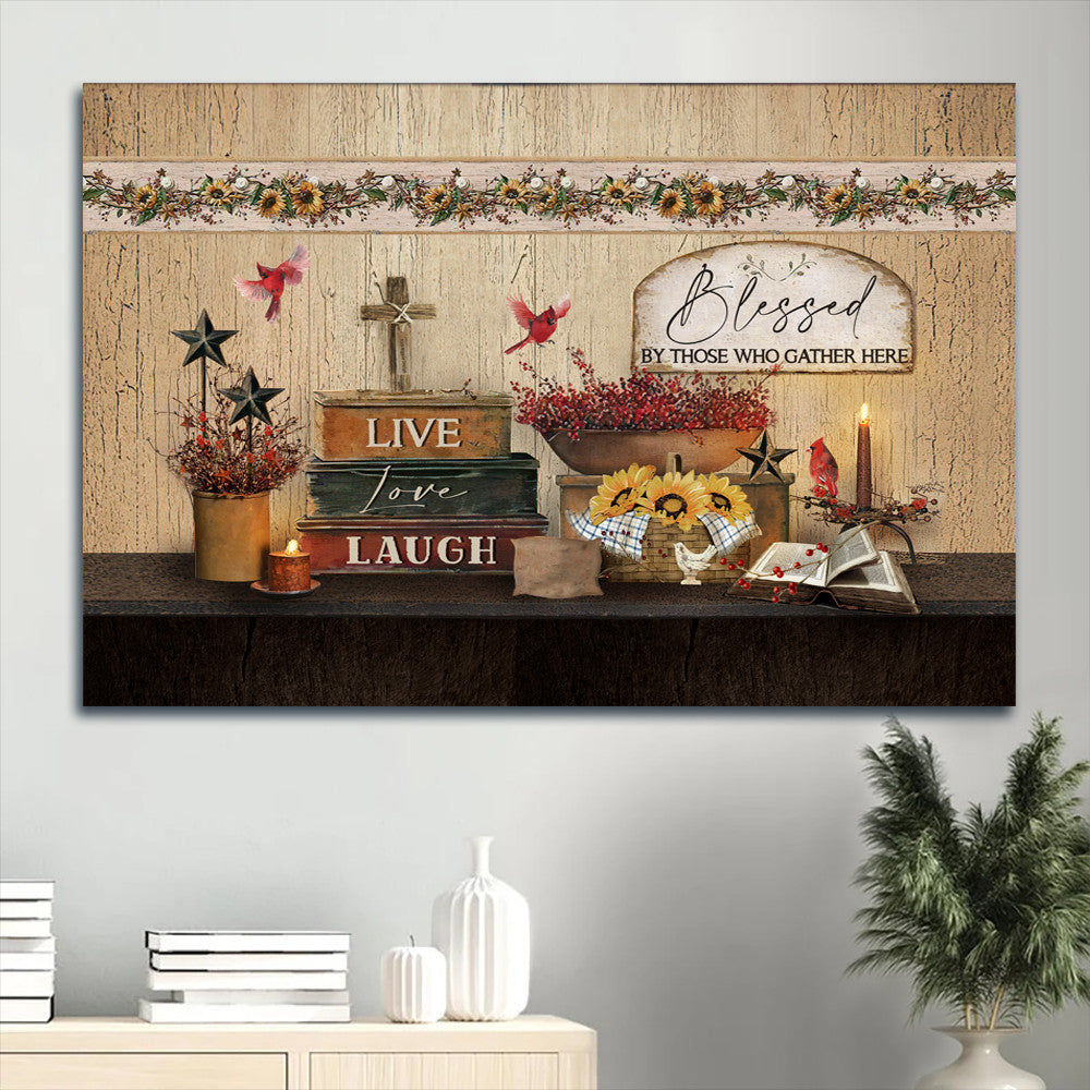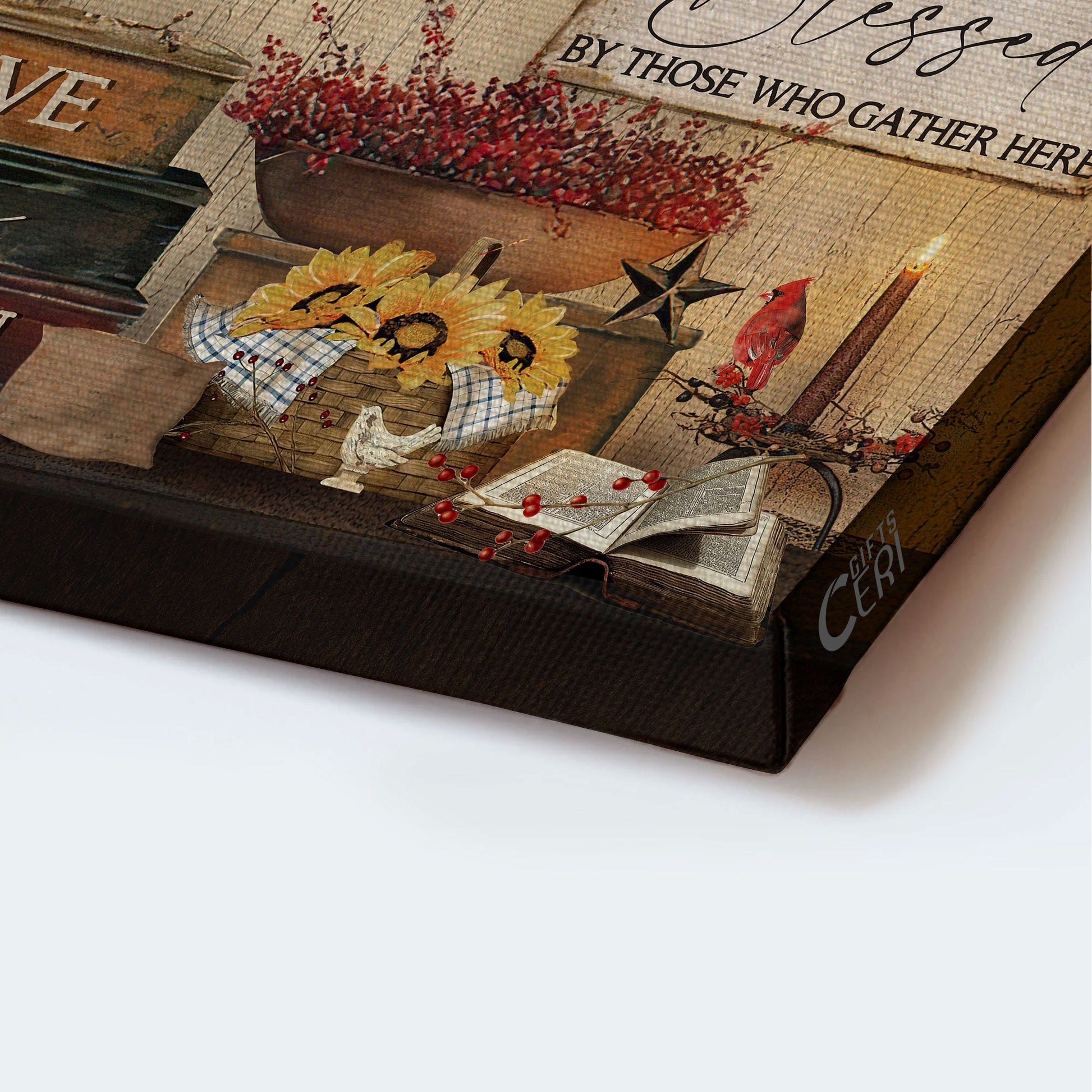 Jesus Landscape Canvas - Antique books, Cardinal drawing, Baby flower Landscape Canvas - Gift For Christian - Blessed by those who gather here