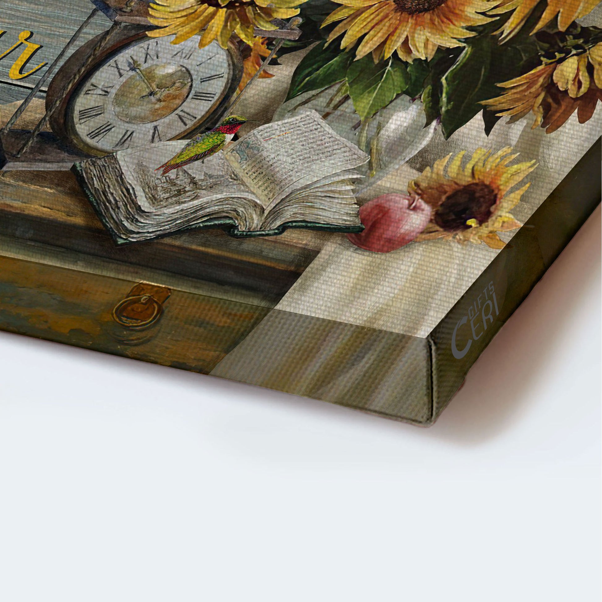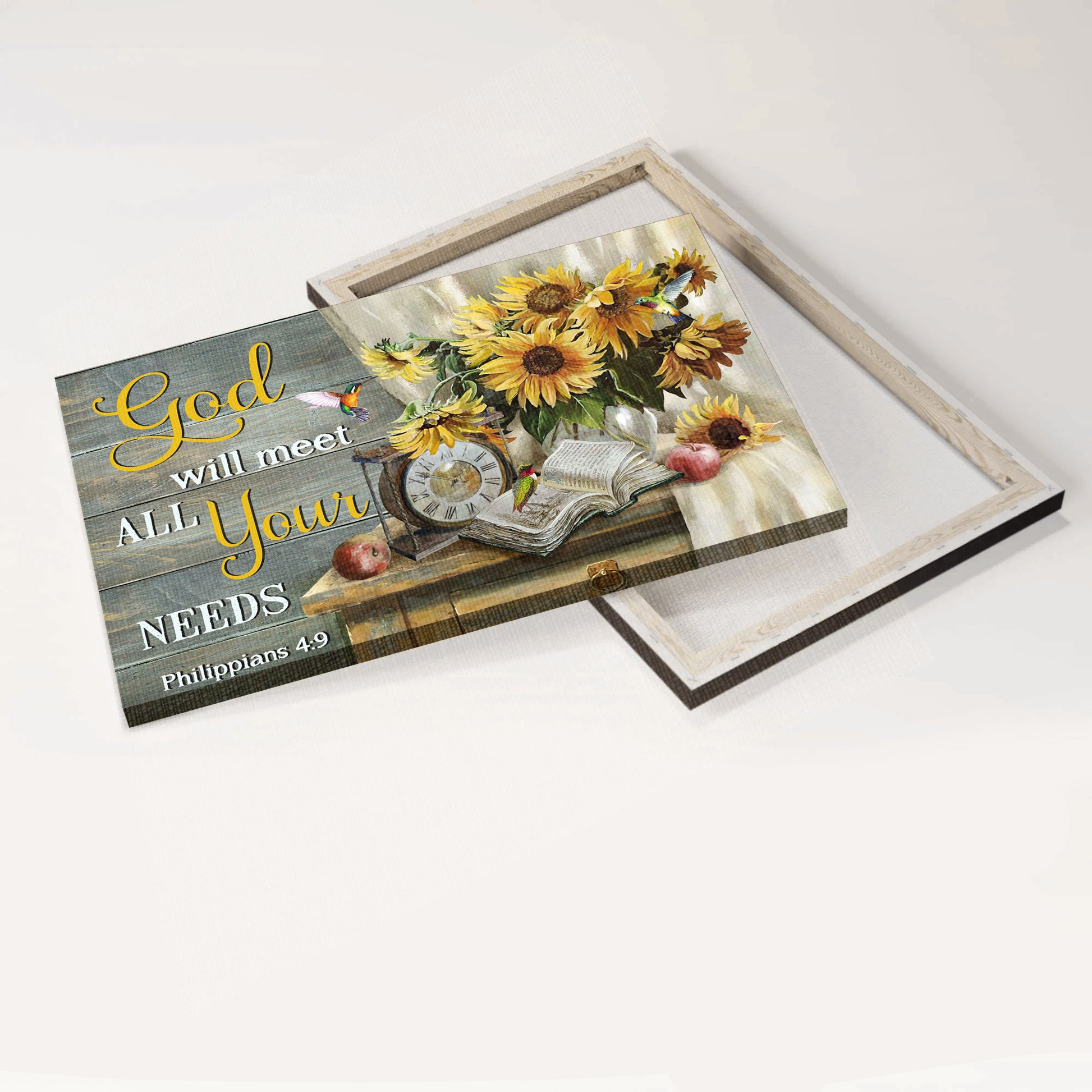 Jesus Landscape Canvas - Antique clock, Sunflower vase, Old bible Landscape Canvas - Gift For Christian - God will meet all your needs