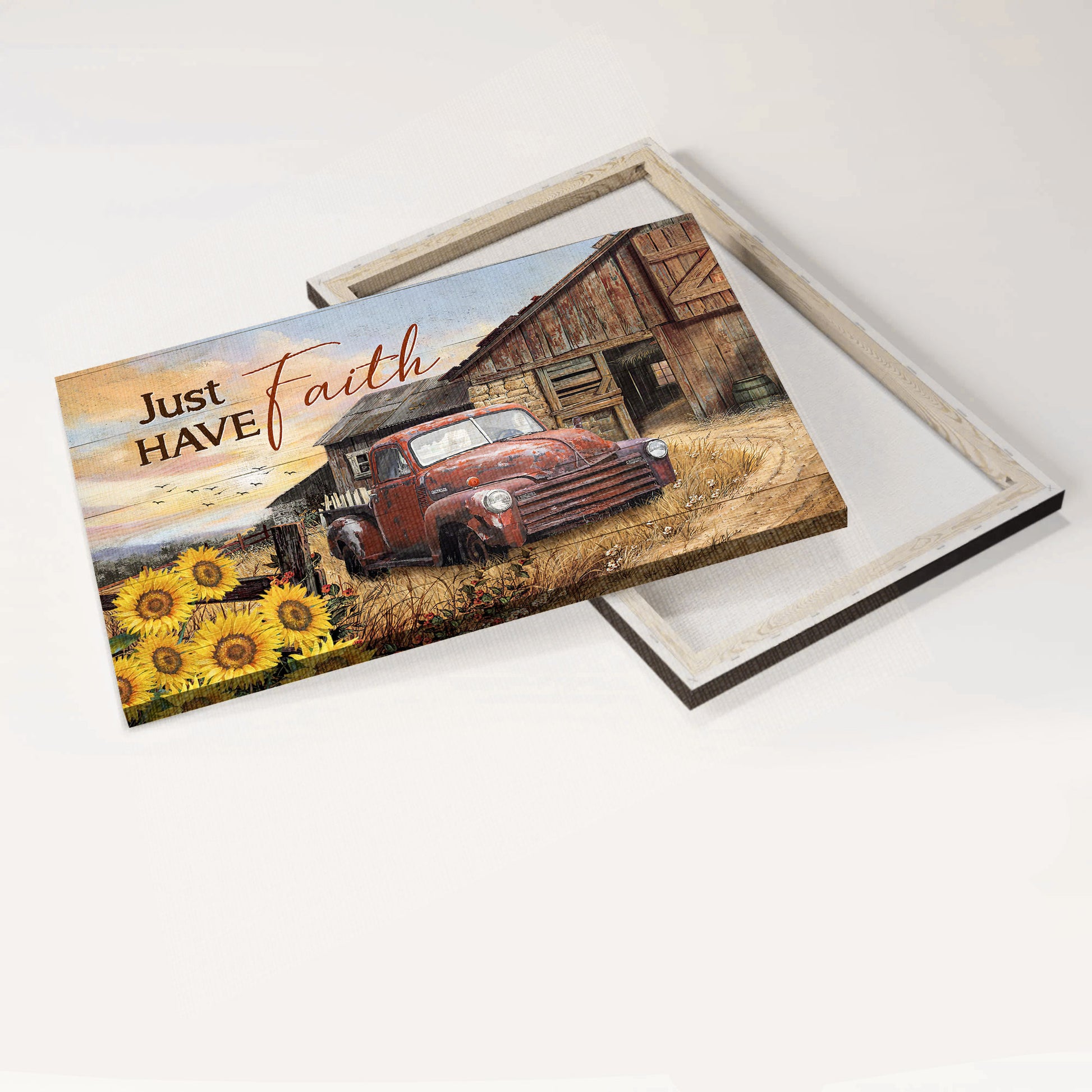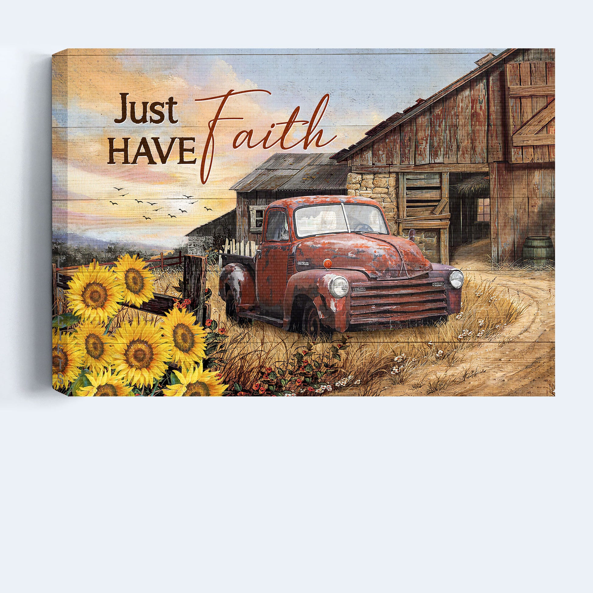 Jesus Landscape Canvas - Antique Ladybug Car, Old Farm, Sunflower Garden Landscape Canvas - Gift For Christian - Just Have Faith