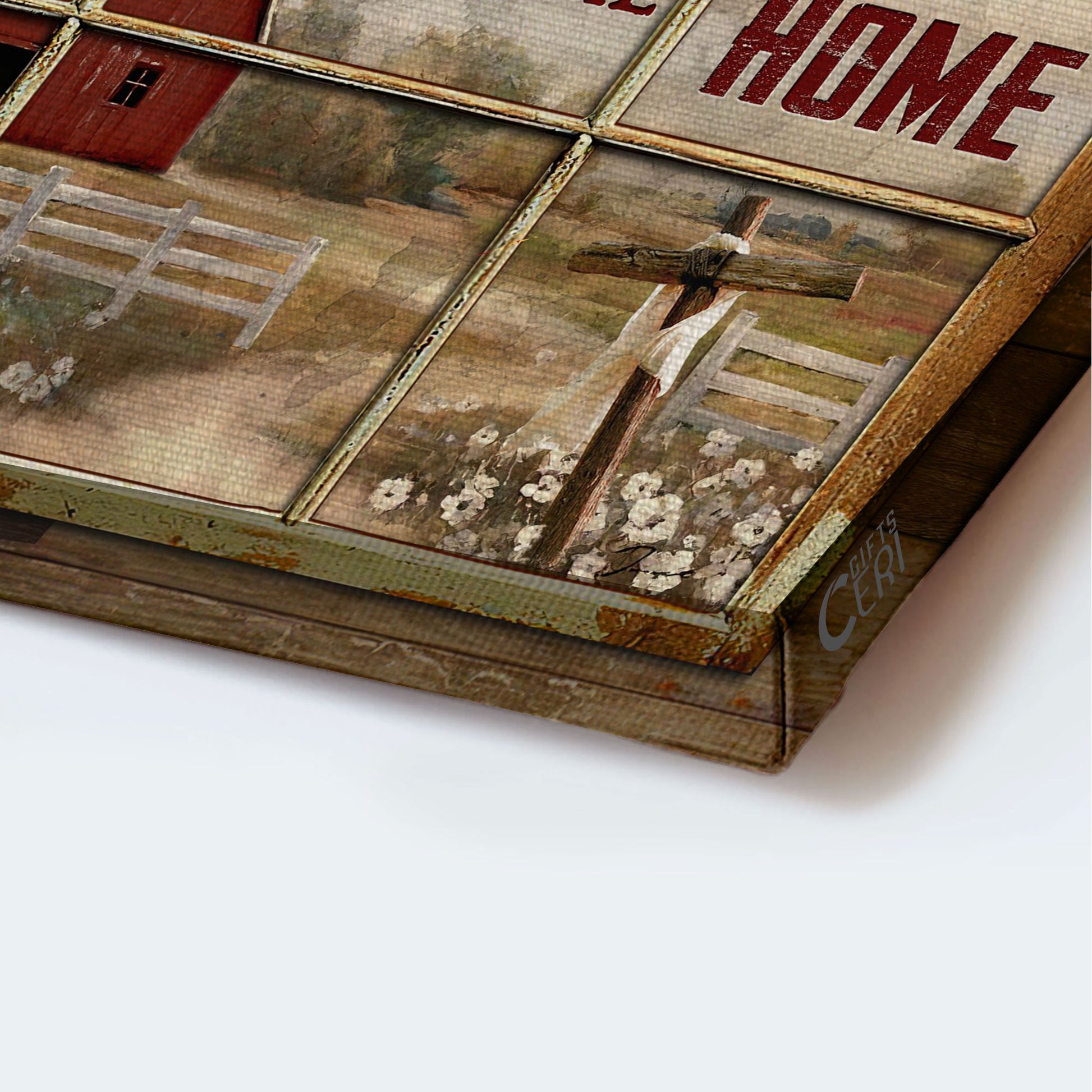 Jesus Landscape Canvas - Antique window, White poppy, Red house Landscape Canvas - Gift For Christian - Country roads take me home