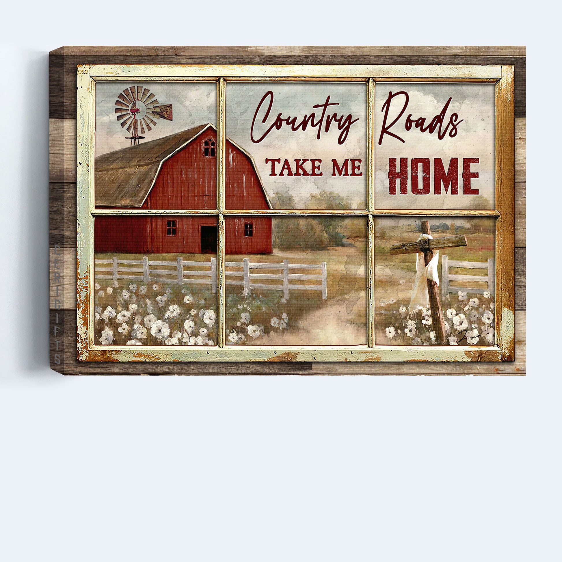 Antique window, White poppy, Red house, Country roads take me home - Jesus Landscape Canvas Prints, Christian Wall Art is a wonderful picture which can be hung in any room in your house such as living room, bedroom, kitchen or even outdoor space.