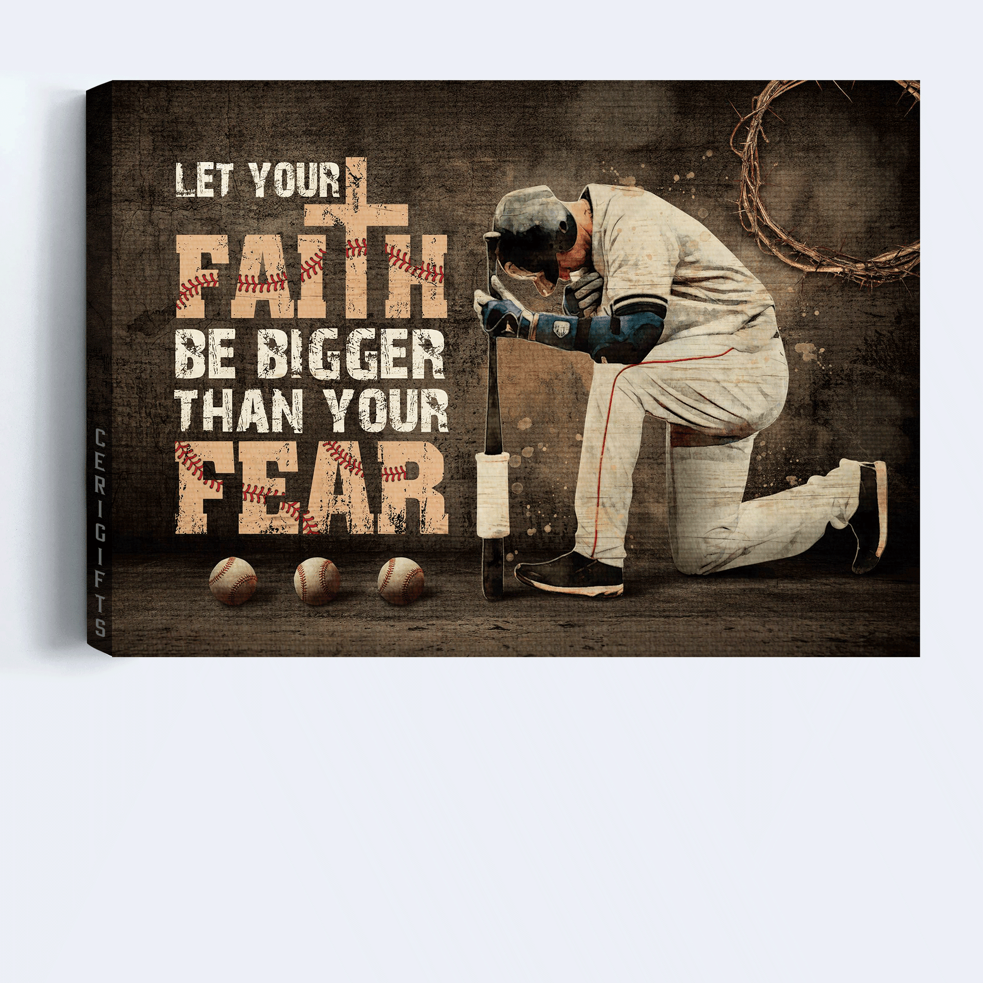 Jesus Landscape Canvas- Baseball, Let Your Faith Be Bigger Than Your Fear Landscape Canvas- Gift For Christian.