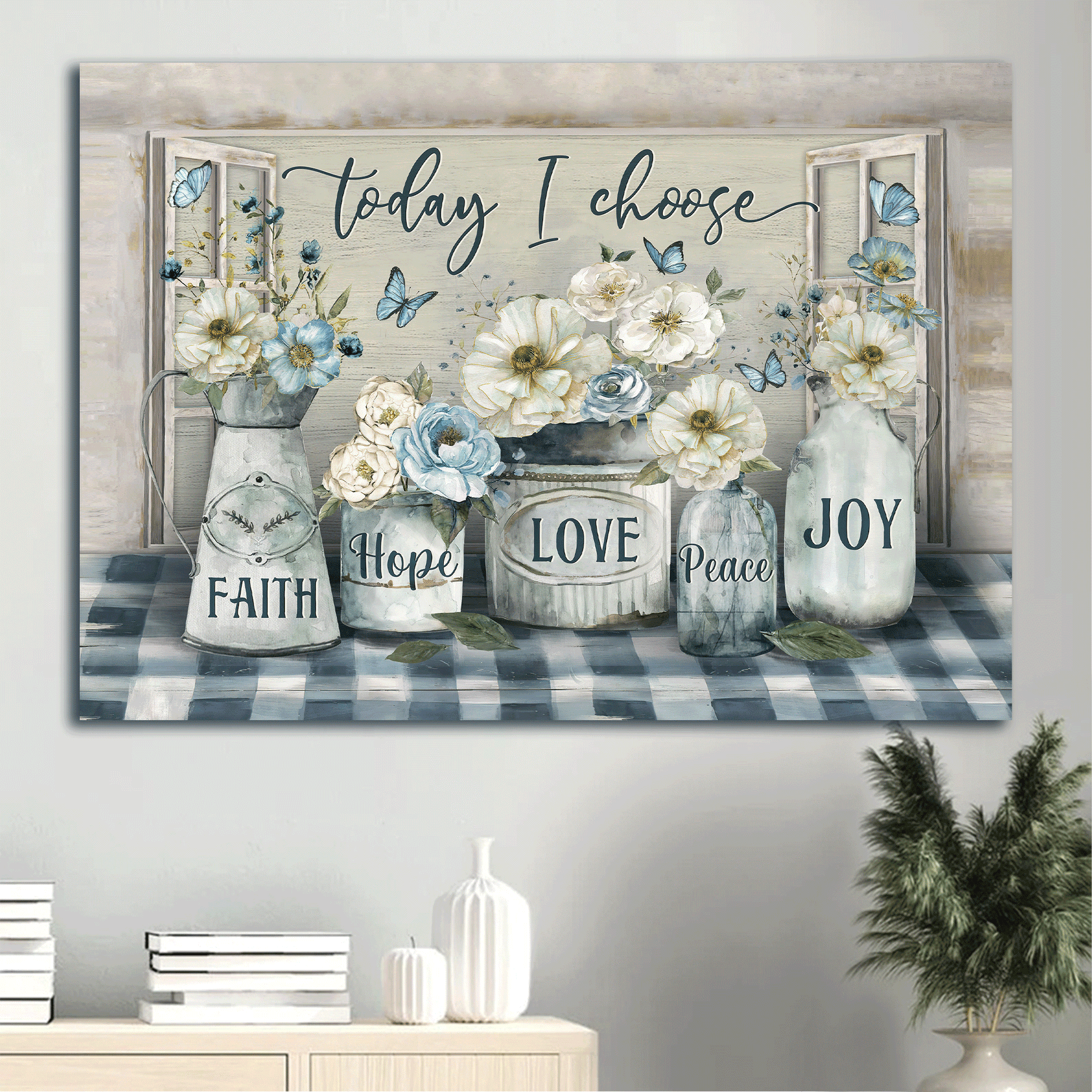 Jesus Landscape Canvas - Beautiful Camellia, Blue Butterfly, Flower Painting Landscape Canvas - Gift For Christian - Today I Choose Joy