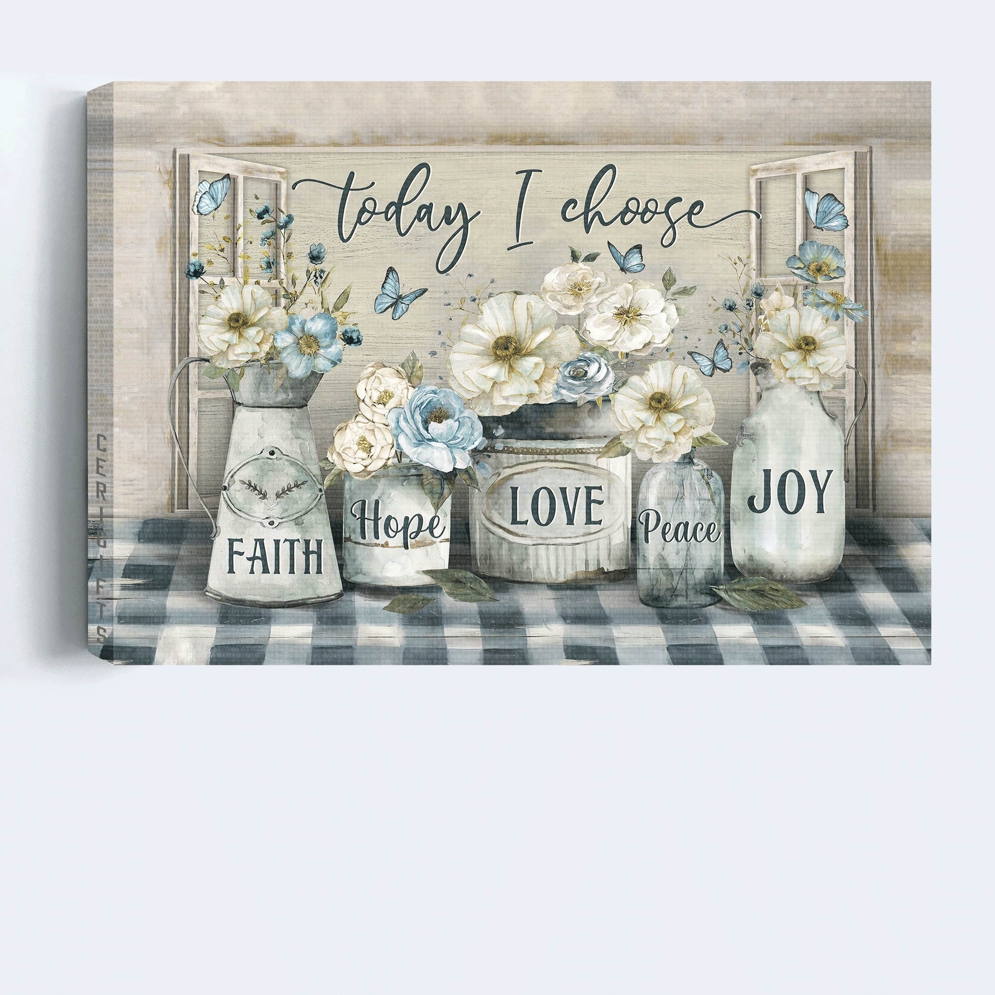 Add more serenity to your living space with our beautiful camellia flower and lovely blue butterfly. Its subtle pastel color, natural tone and meaningful quote will serve as a comforting presence in your house and help you feel peace. This amazing Beautiful Camellia, Blue Butterfly, Flower Painting, Today I Choose Joy - Jesus Landscape Canvas Prints, Christian Wall Art is also a perfect present for your friend, your lover and even for your family.