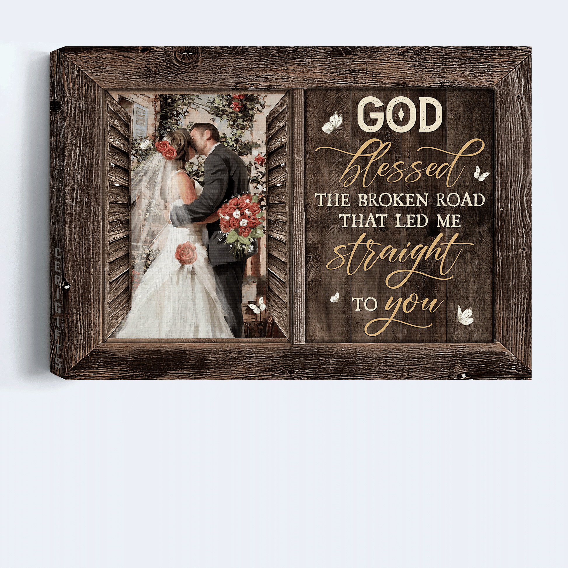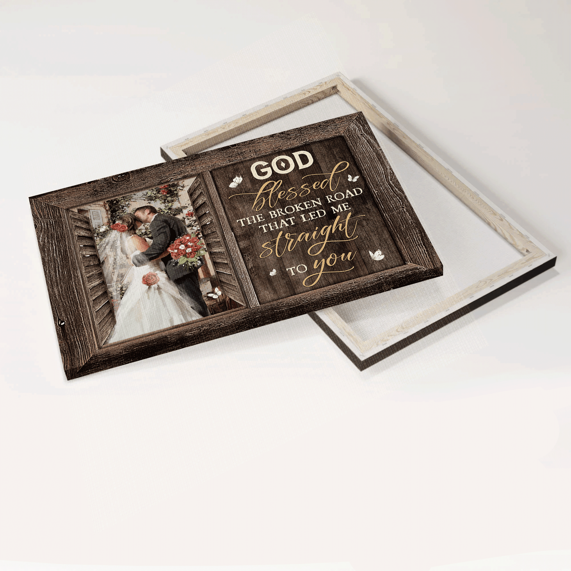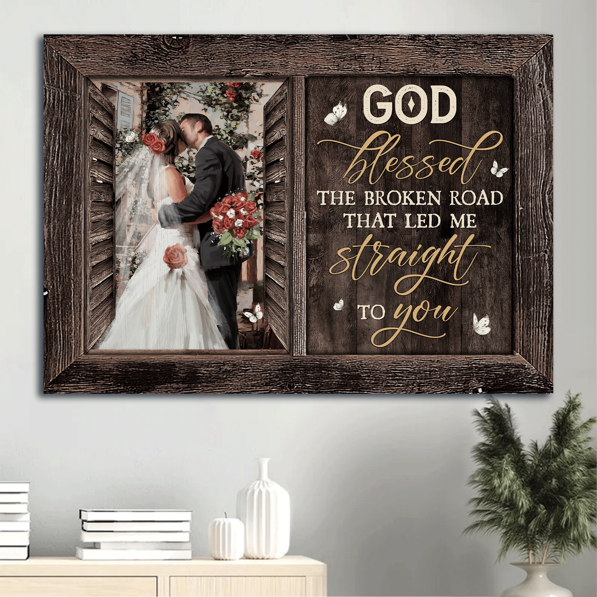 Jesus Landscape Canvas - Beautiful couple, Happy wedding, Red rose Landscape Canvas - Gift For Christian - God blessed the broken road