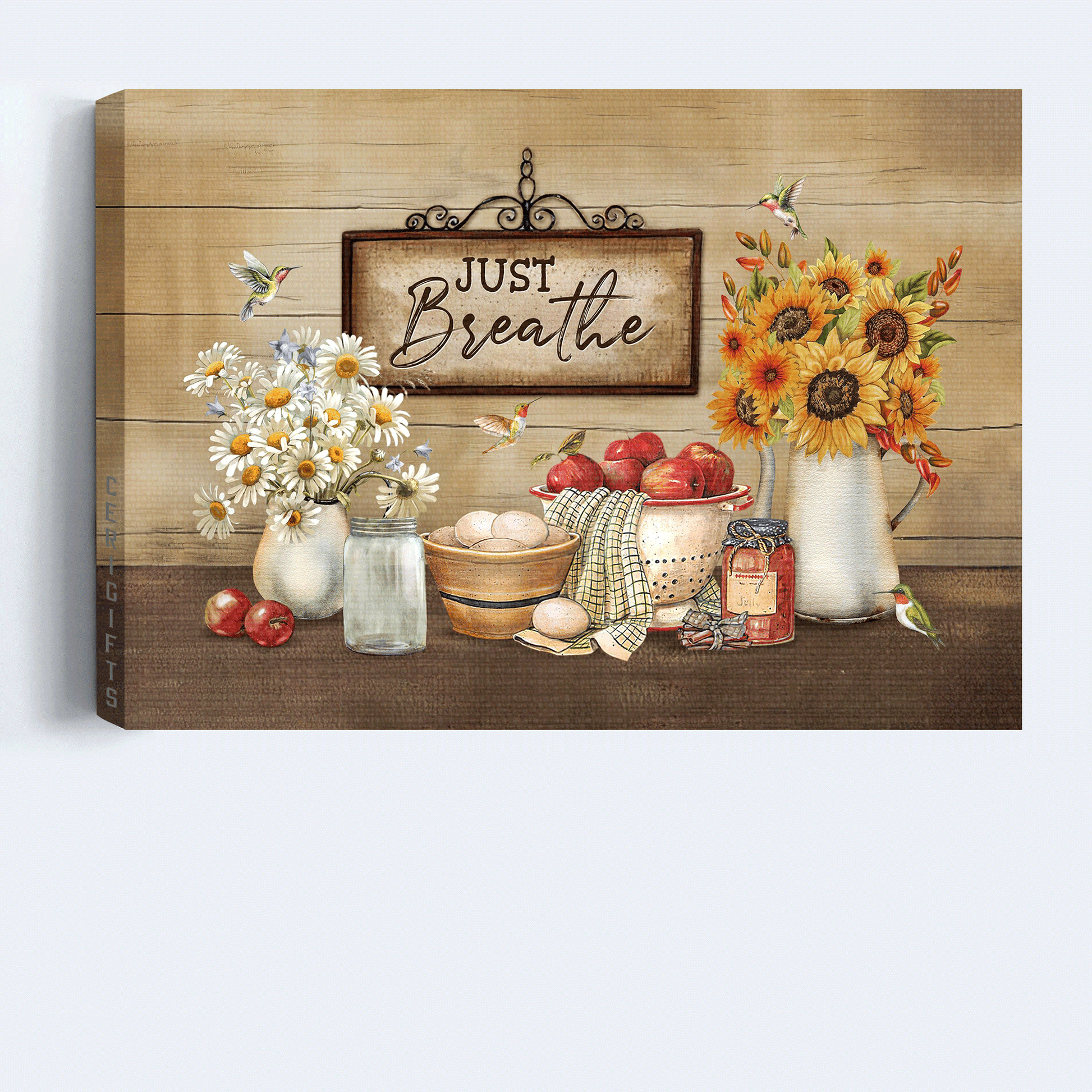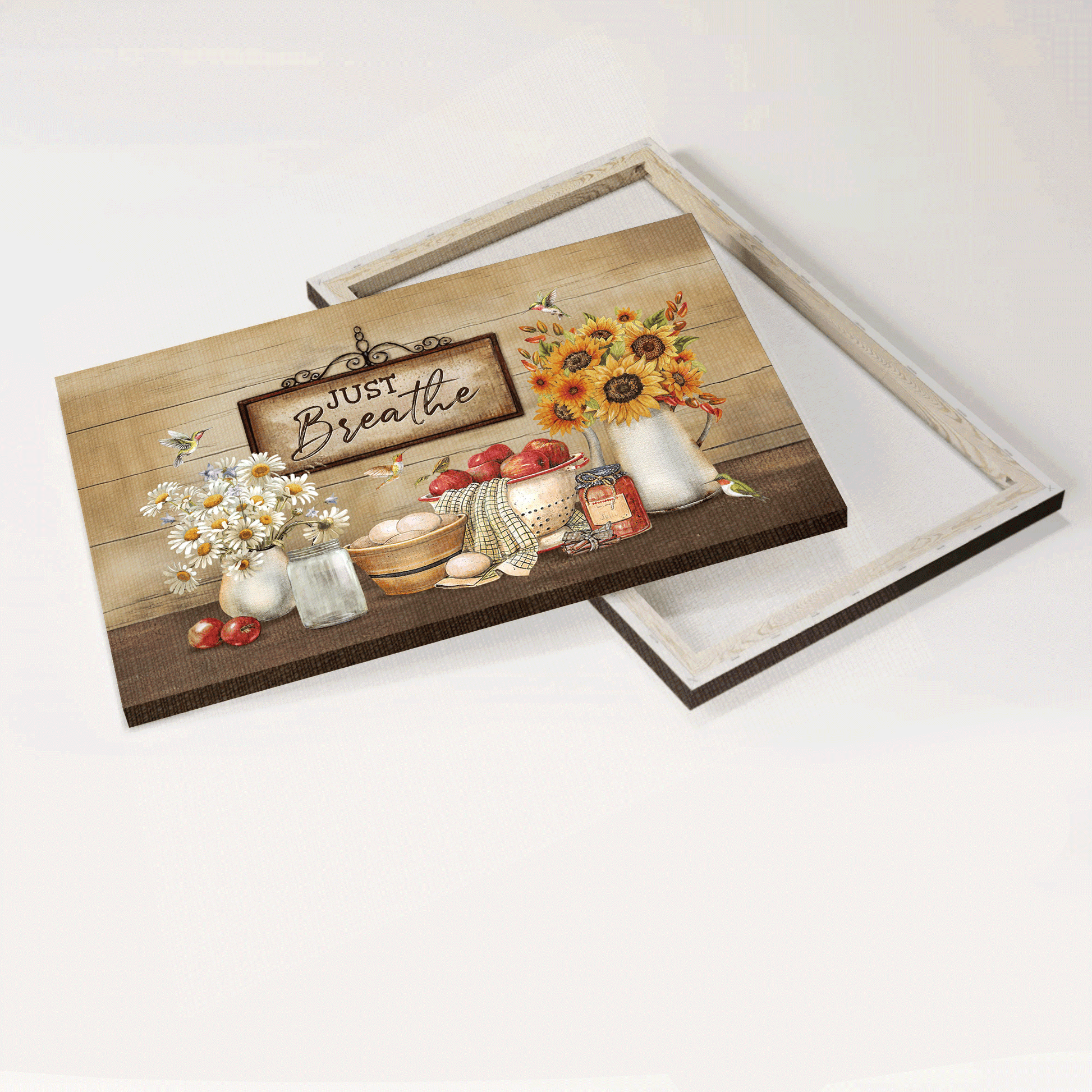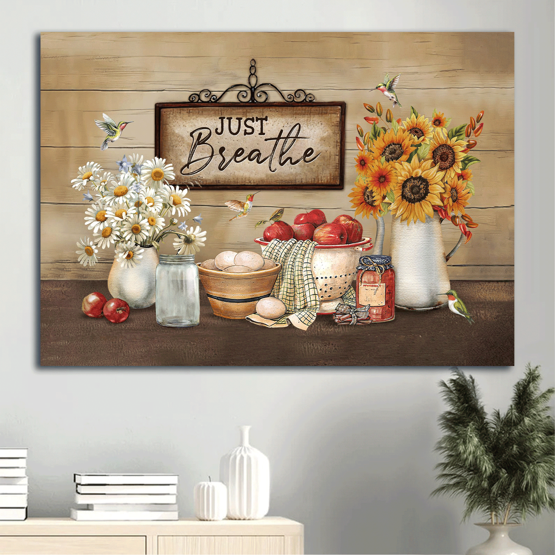 Jesus Landscape Canvas- Beautiful daisy, Pretty kitchen, Vintage sign, Hummingbird canvas- Gift for Christian- Just breathe