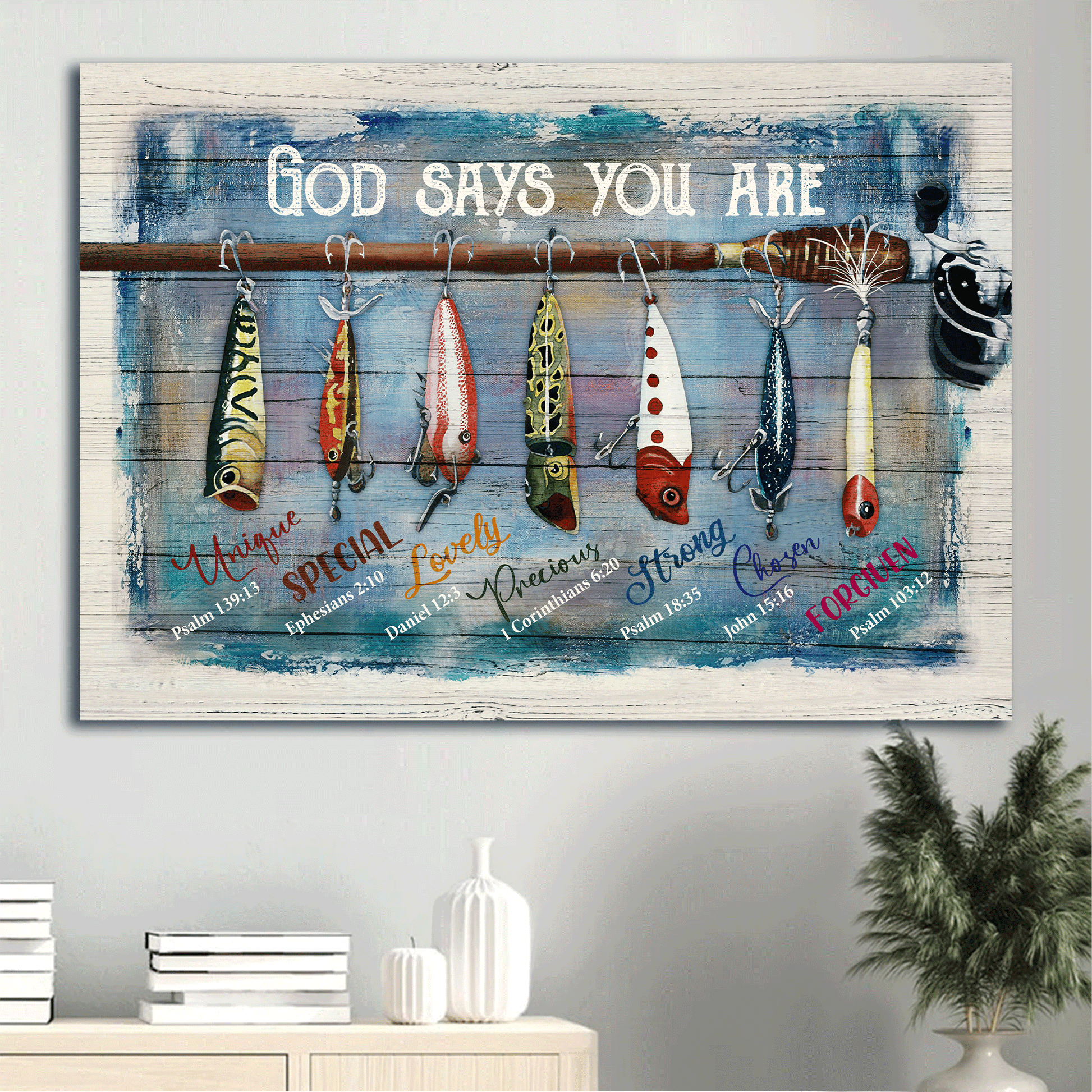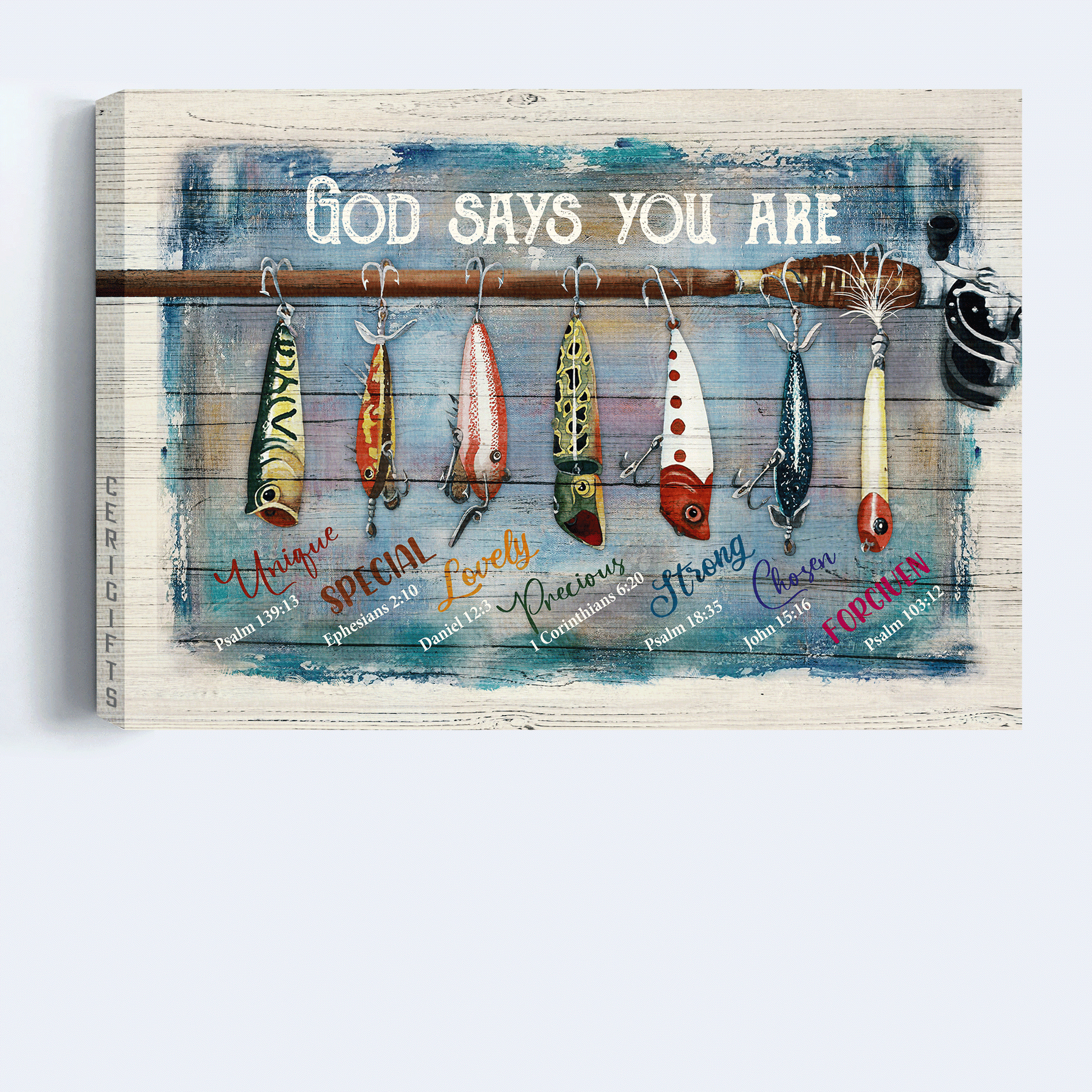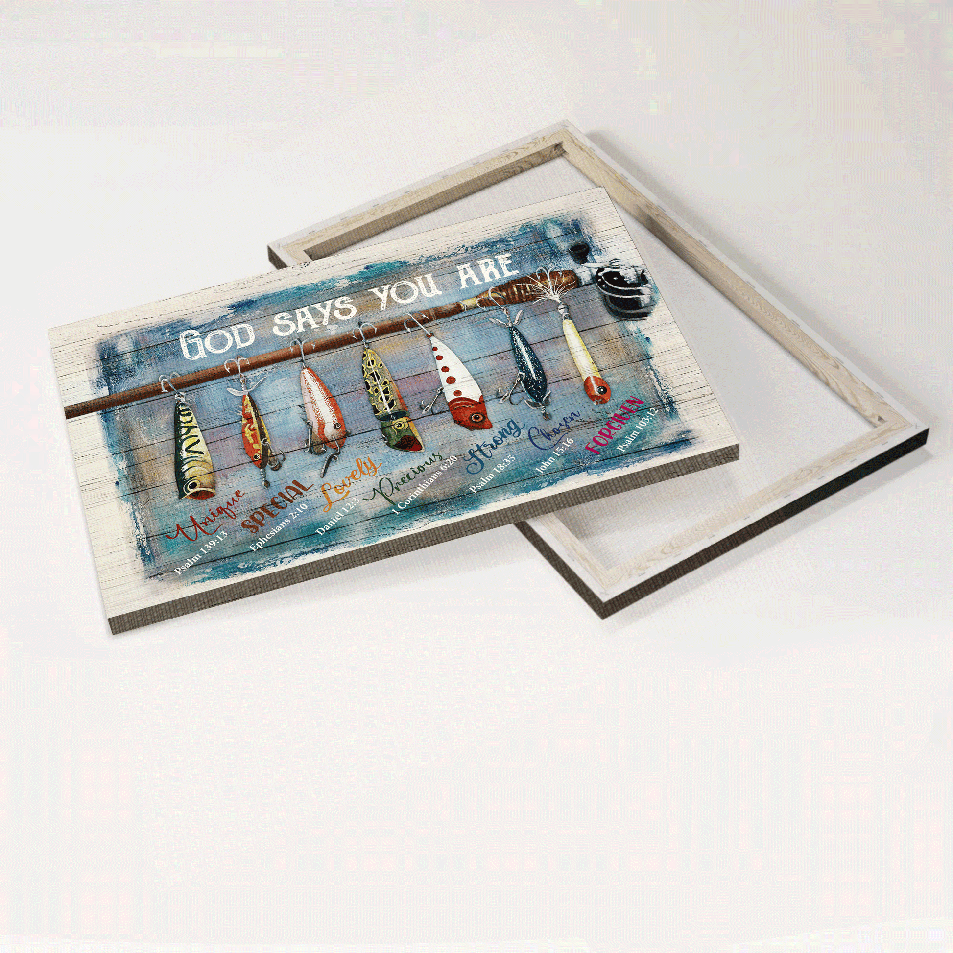 Jesus Landscape Canvas- Beautiful Fish, Hook, Fishing Rod Landscape Canvas- Gift For Christian- God Says You Are.