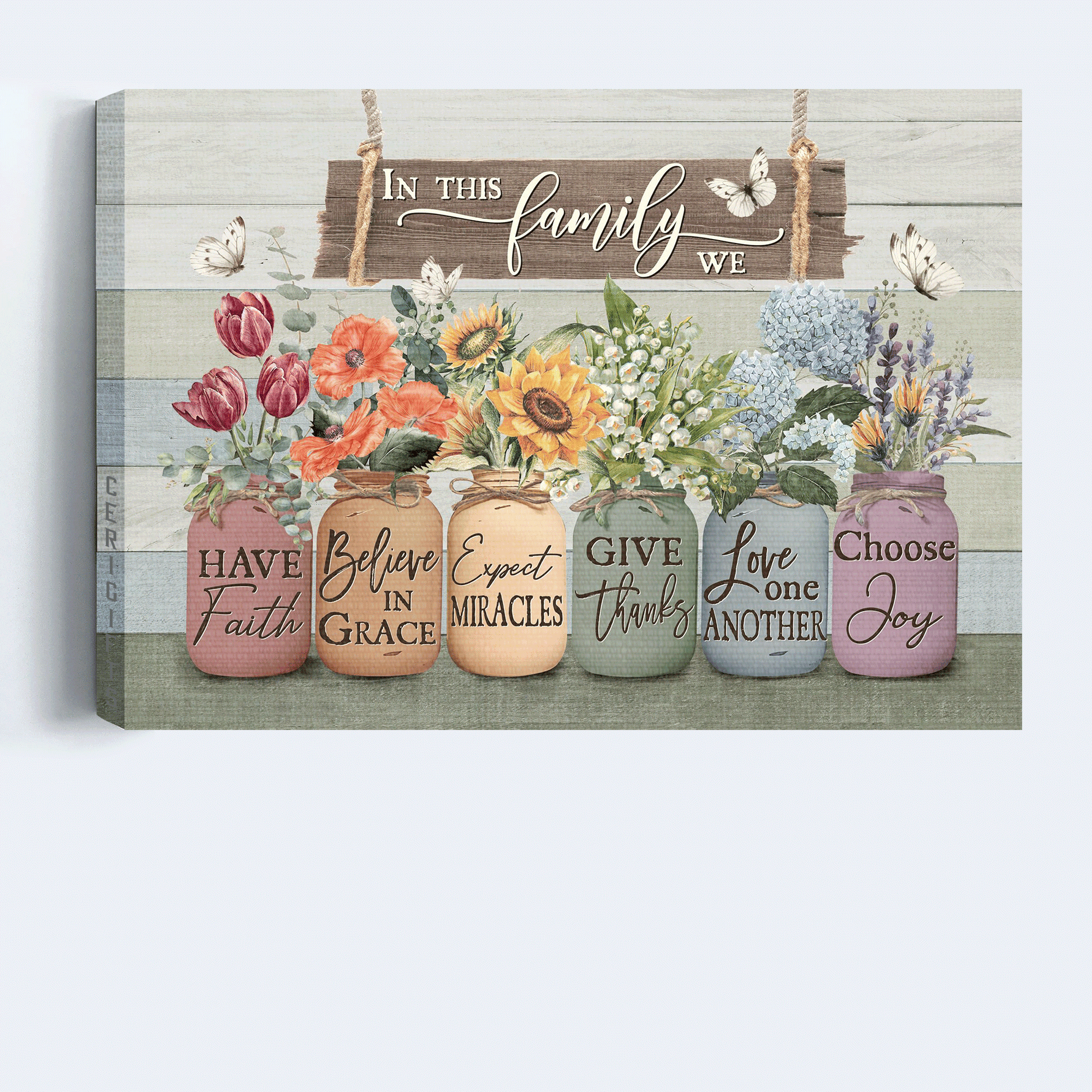 Jesus Landscape Canvas- Beautiful flowers, Sunflower, Tulip, Hydrangea, Bell flower canvas- Gift for Christian- In this family