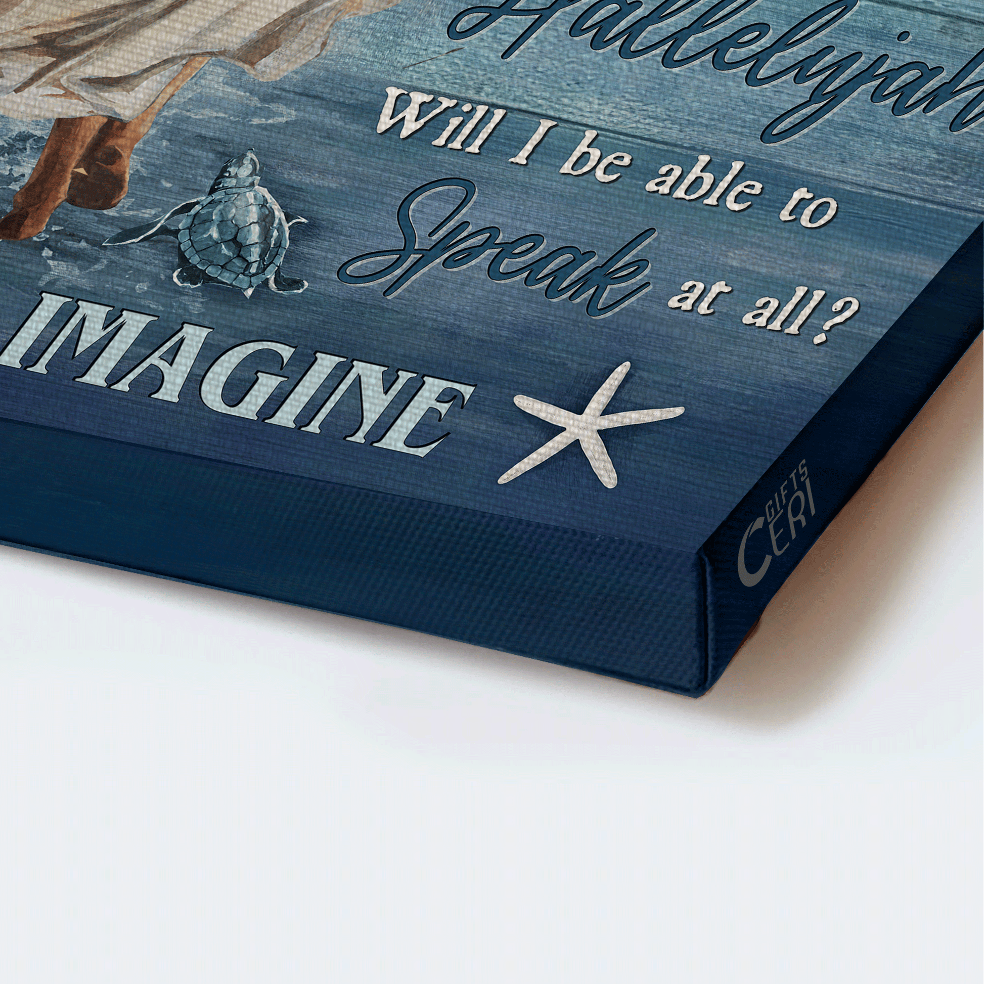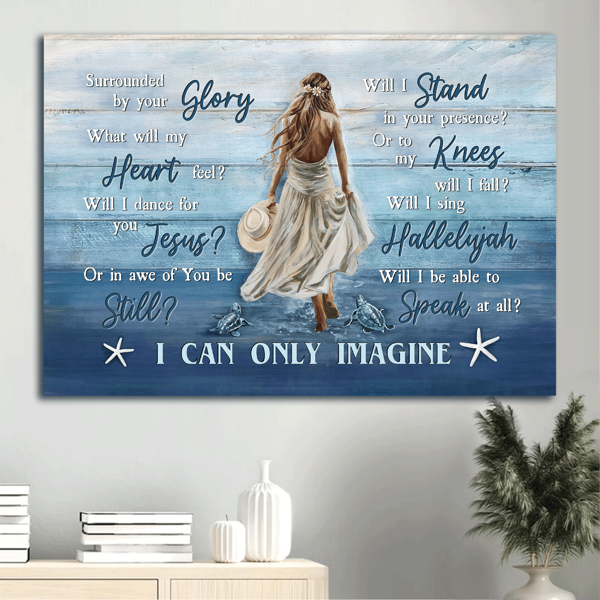 Jesus Landscape Canvas- Beautiful girl, White dress, Sea turtle, Walking on water canvas- Gift for Christian- I can only imagine