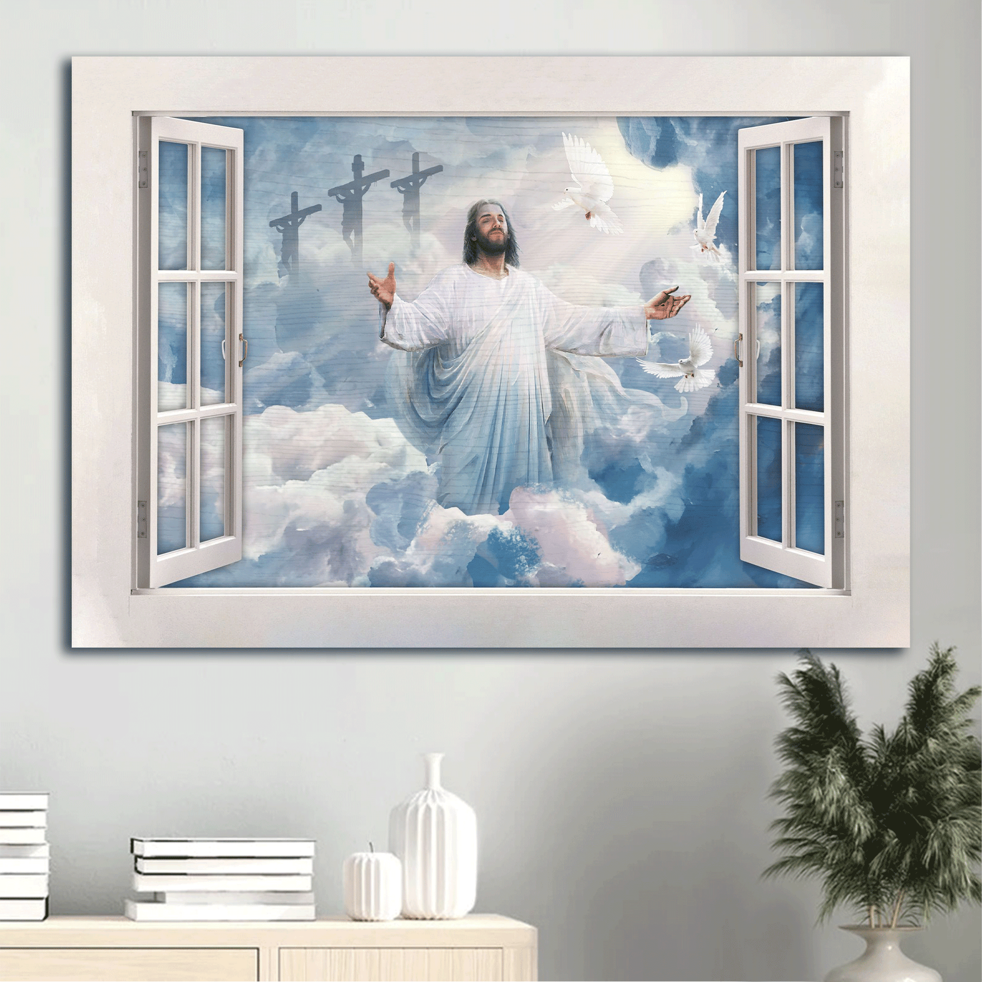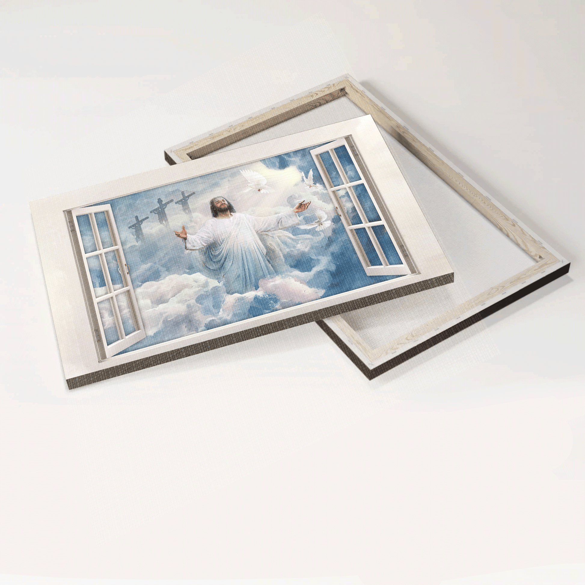 Jesus Landscape Canvas- Beautiful heaven, Jesus painting, Holy spirit dove, White windows, Jesus in heaven canvas- Gift for Christian