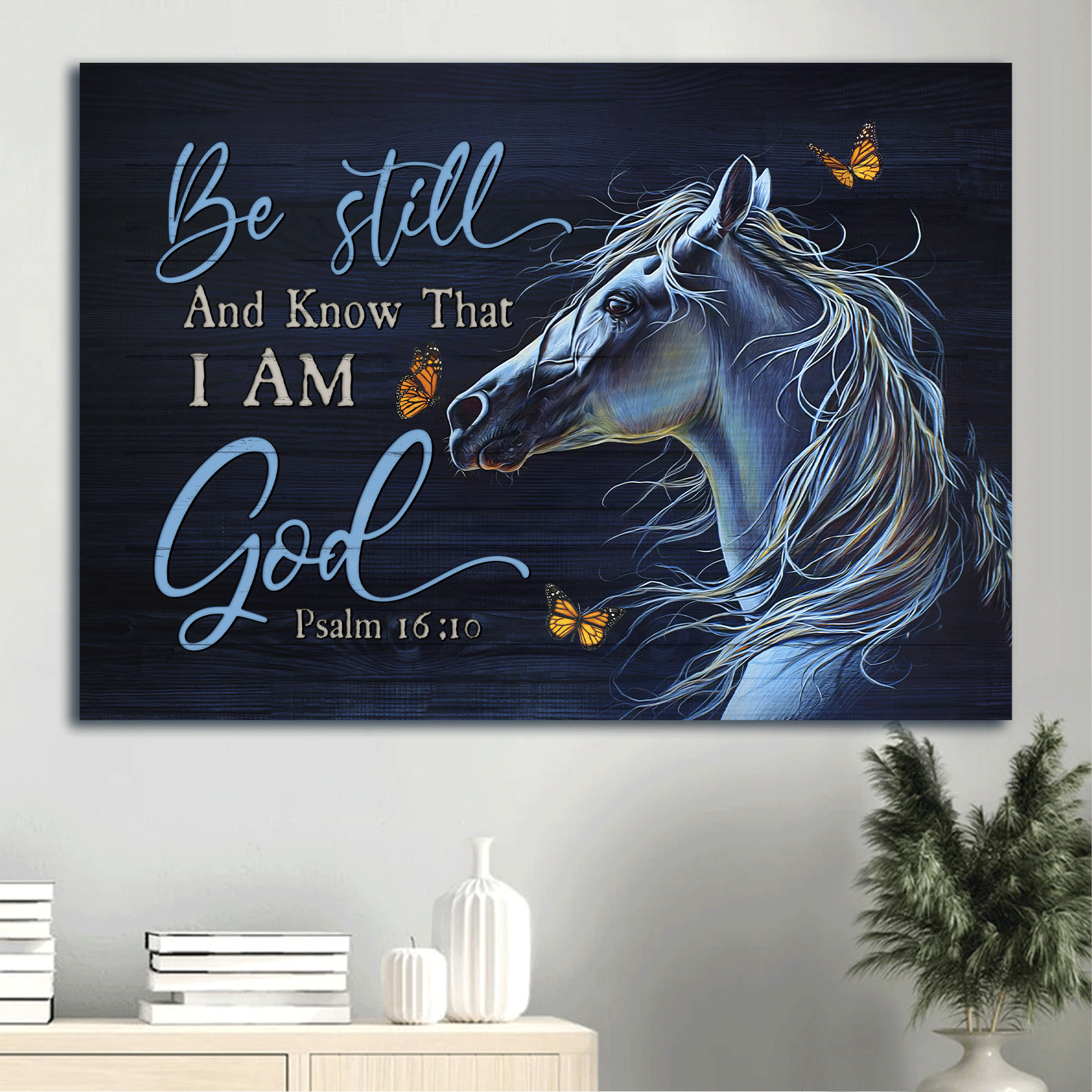 Jesus Landscape Canvas- Beautiful horse, Butterfly canvas- Gift for Christian- Be still & know that I am God.