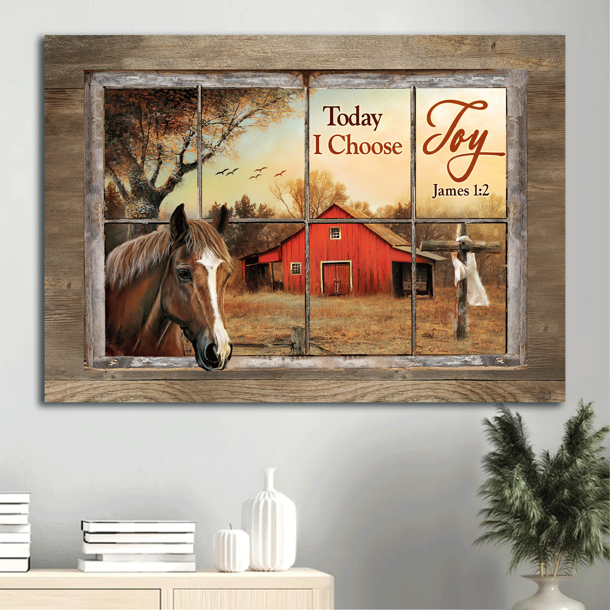 Jesus Landscape Canvas- Beautiful horse, Colorful sunset, Red house, Cross canvas- Gift for Christian- Today I choose joy is a wonderful picture which can be hung in any room in your house such as living room, bedroom, kitchen or even outdoor space.