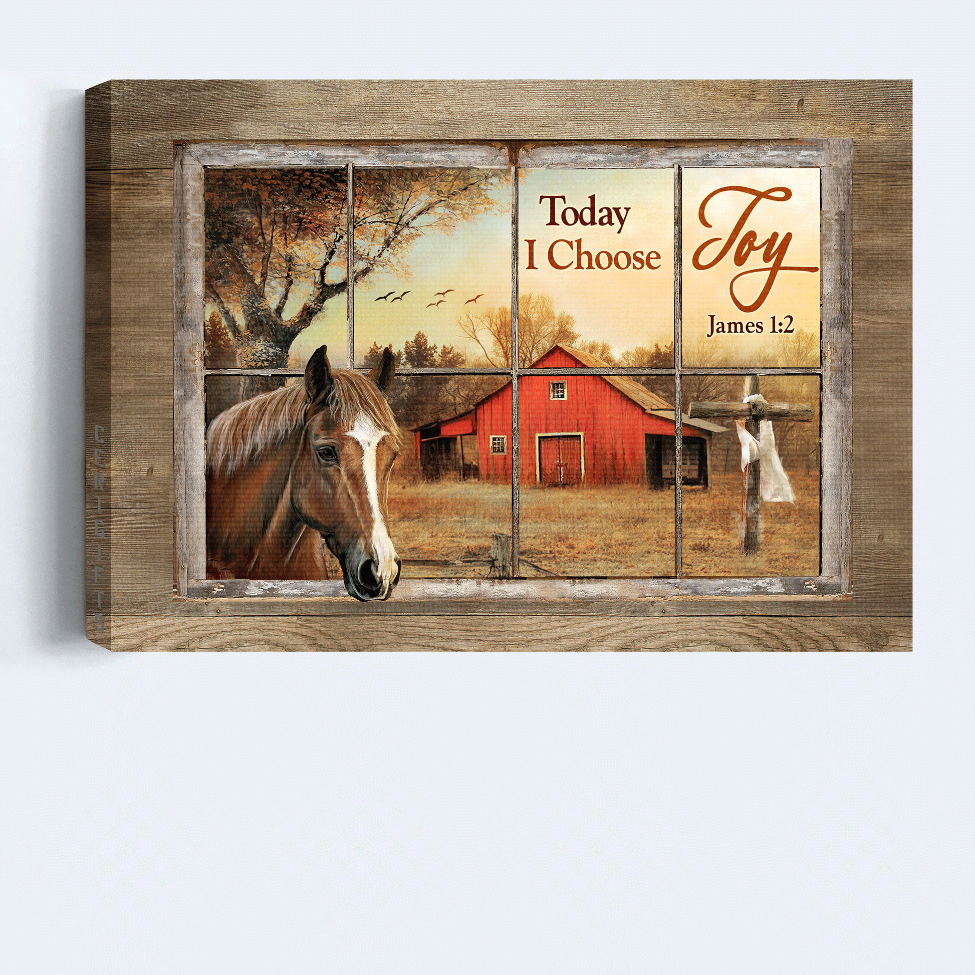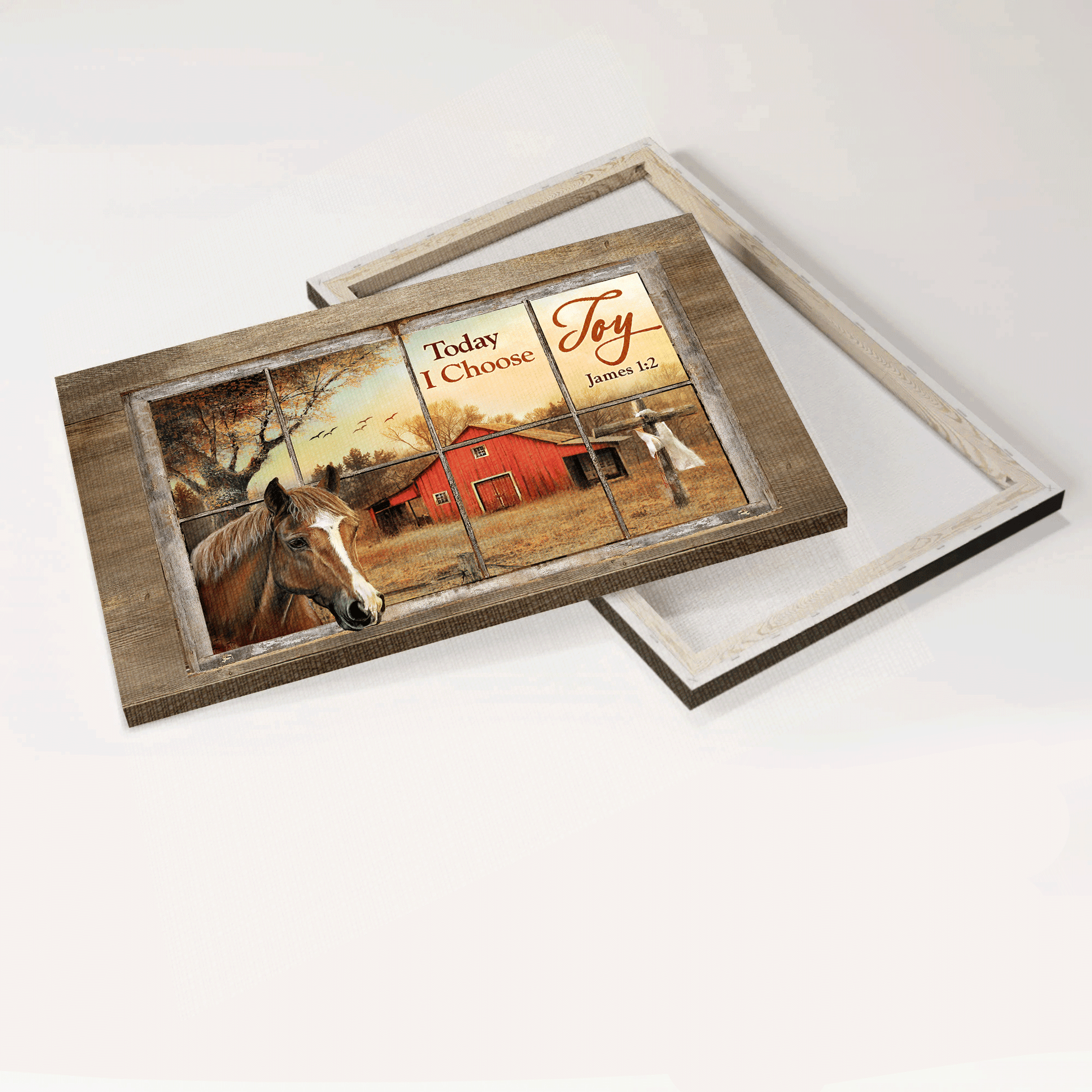 Jesus Landscape Canvas- Beautiful horse, Colorful sunset, Red house, Cross canvas- Gift for Christian- Today I choose joy.
