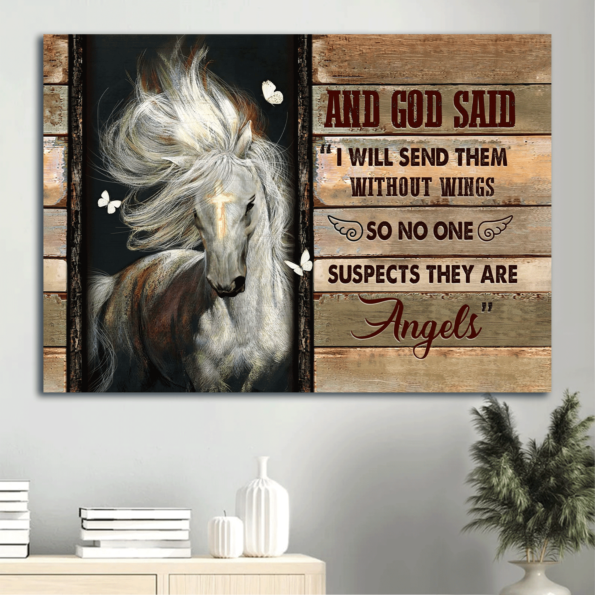 Jesus Landscape Canvas- Beautiful horse, Golden cross, White butterfly canvas- Gift for Christian- I will send them without wings