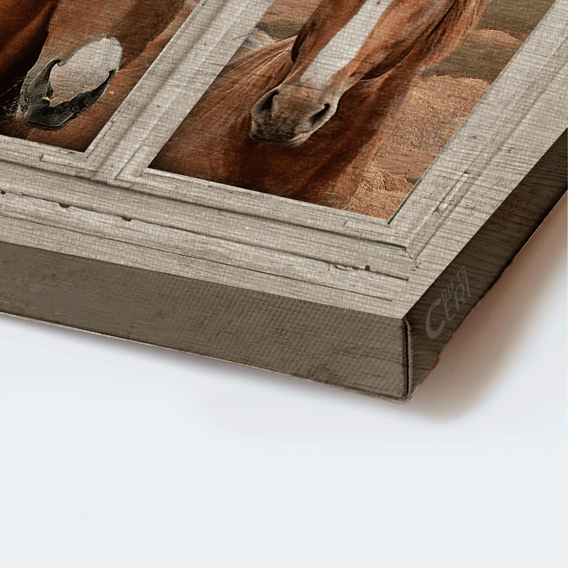 Add more serenity to your living space with our beautiful image of beautiful horses behind white frame window. Its subtle light color and meaningful, soothing-for-soul words will help you unwind and turn your house into a comfortable place.