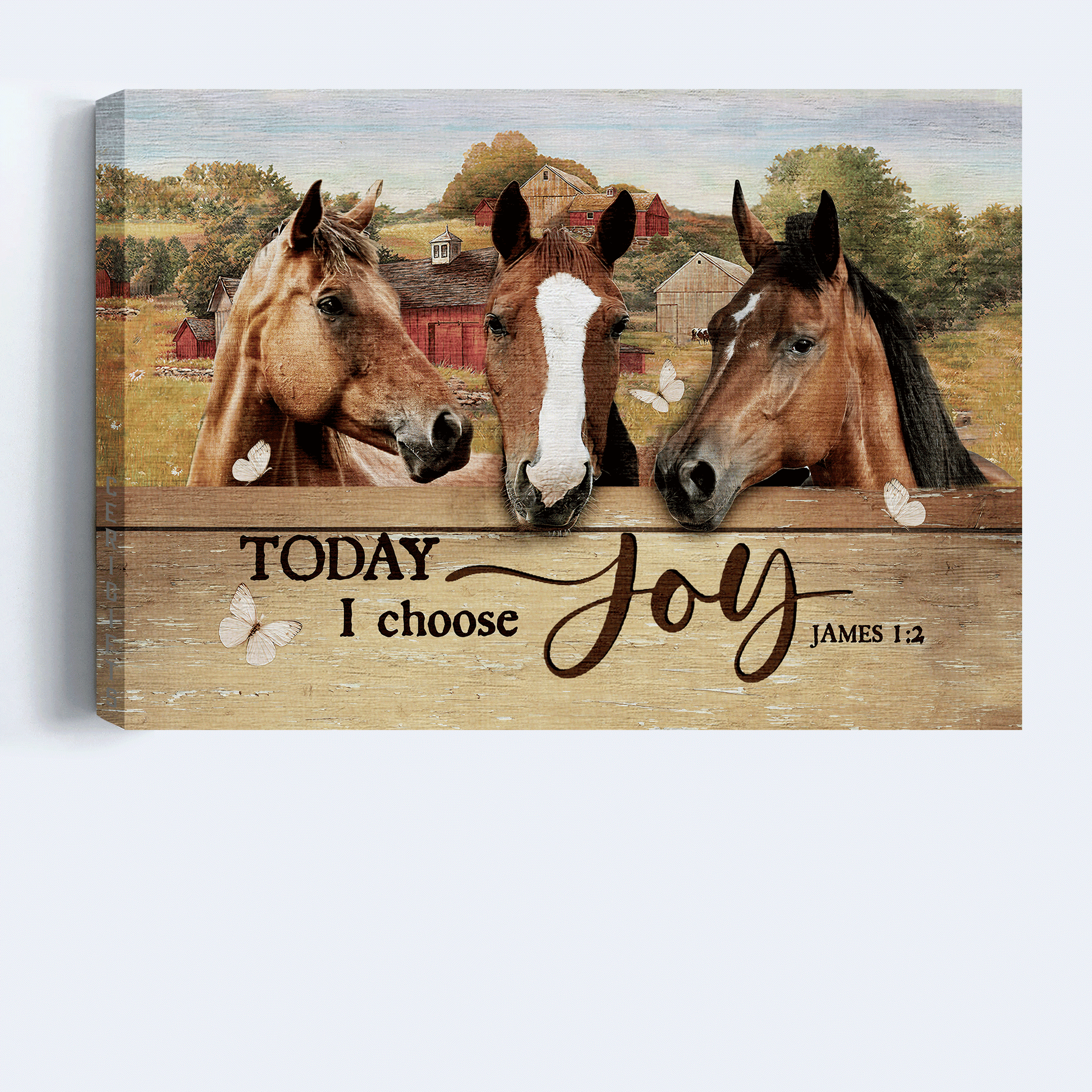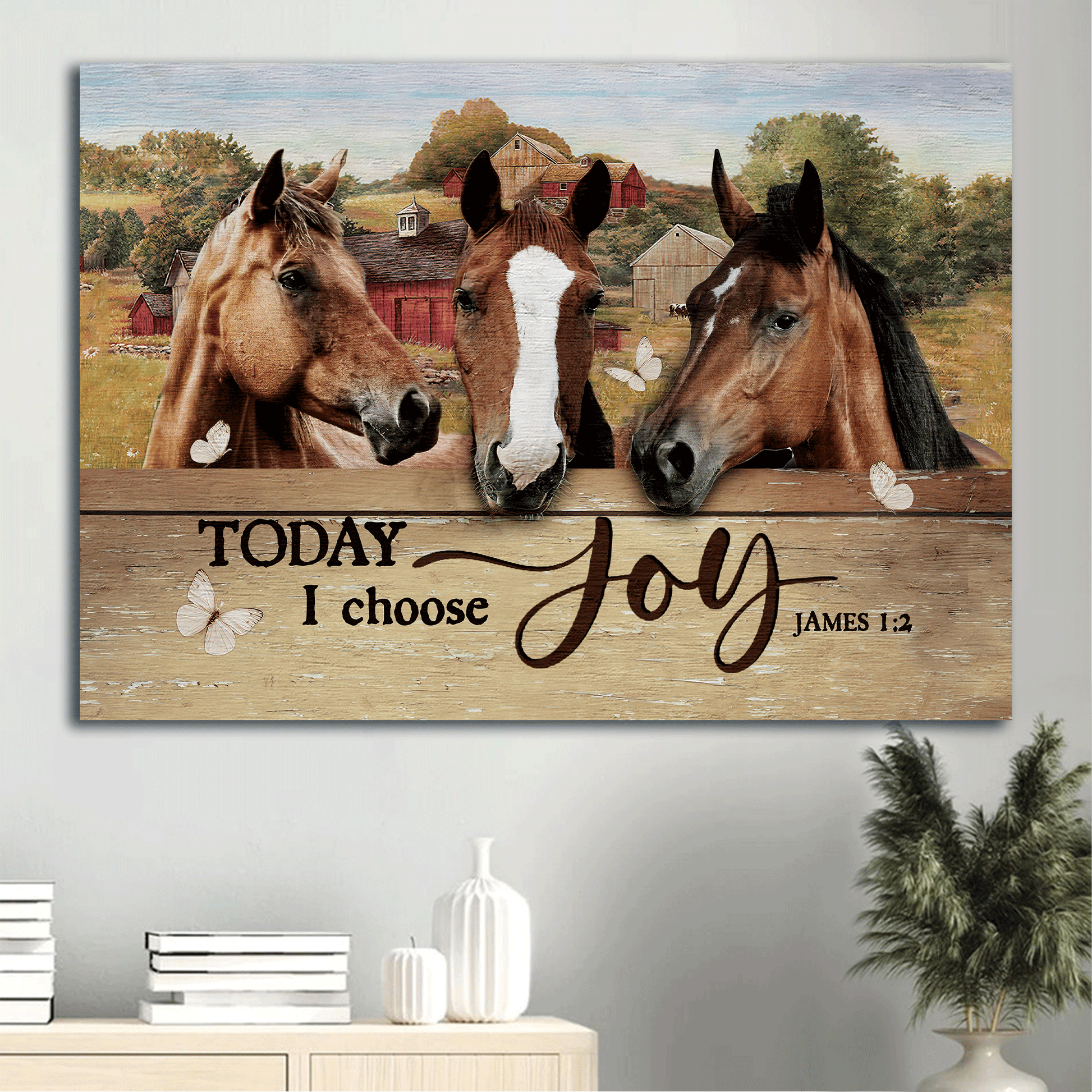 Jesus Landscape Canvas - Beautiful horse painting, Farm drawing, Red house canvas- Gift for Christian- Today I choose joy.