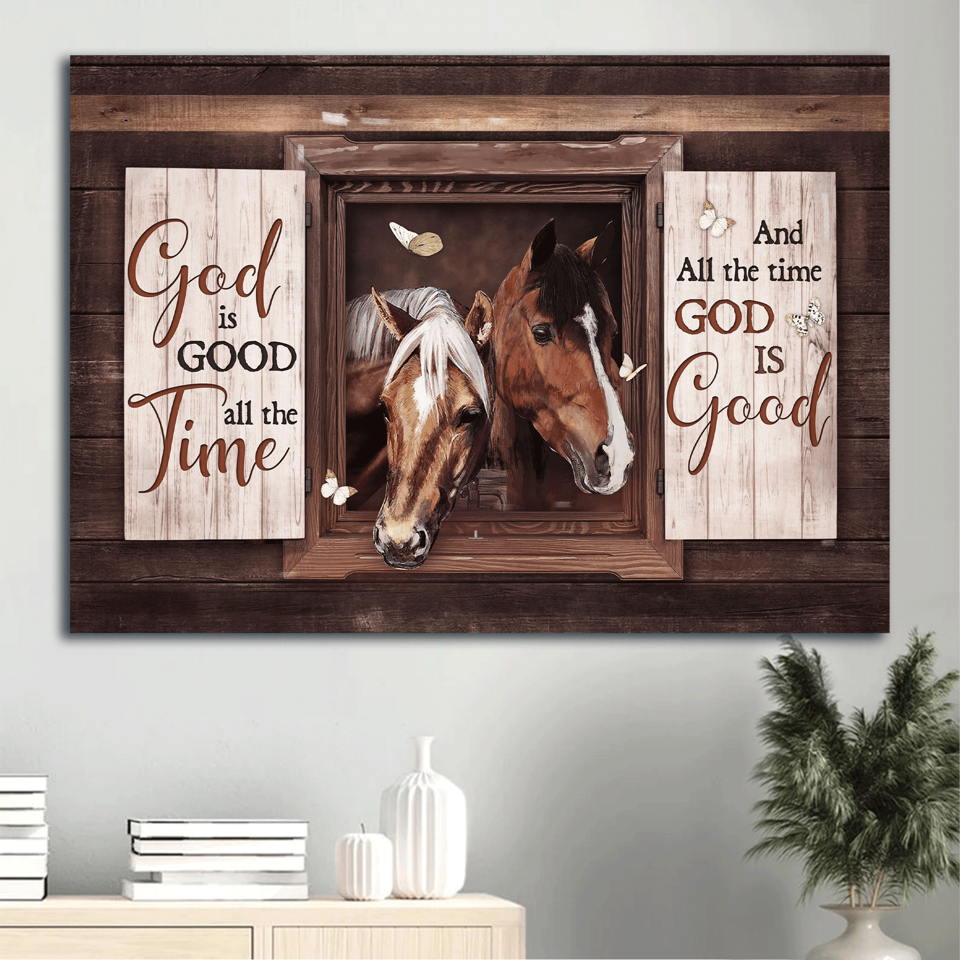 Do you want to add some joy to your living space? And you are a religious Christian? Then, this amazing Jesus Landscape Canvas- Beautiful horse, Square frame, White butterfly canvas- Gift for Christian- God is good all the time is the perfect option for you!