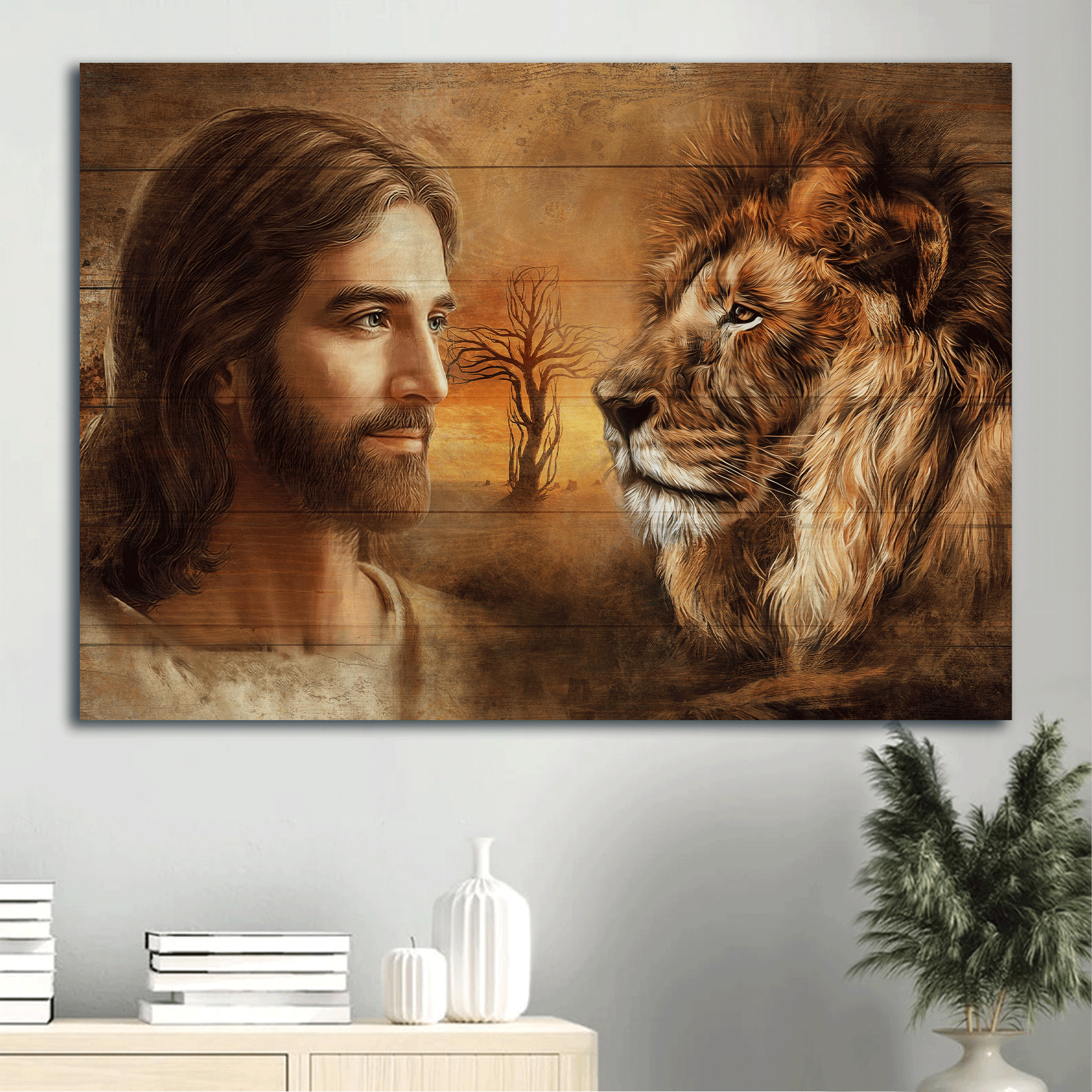 Jesus Landscape Canvas - Beautiful Jesus drawing, Lion face, Lion of Judah, Face to face Landscape Canvas - Gift For Christian