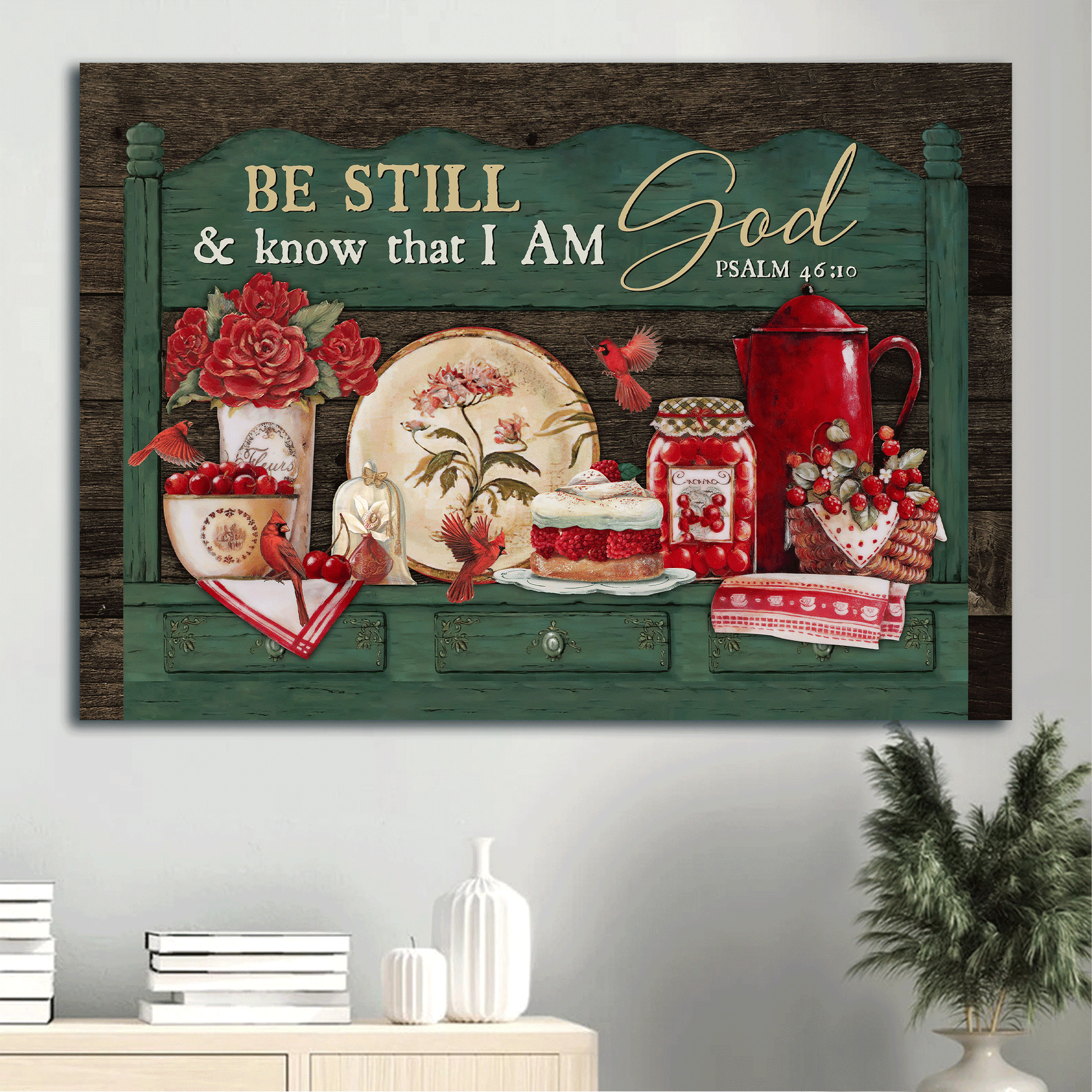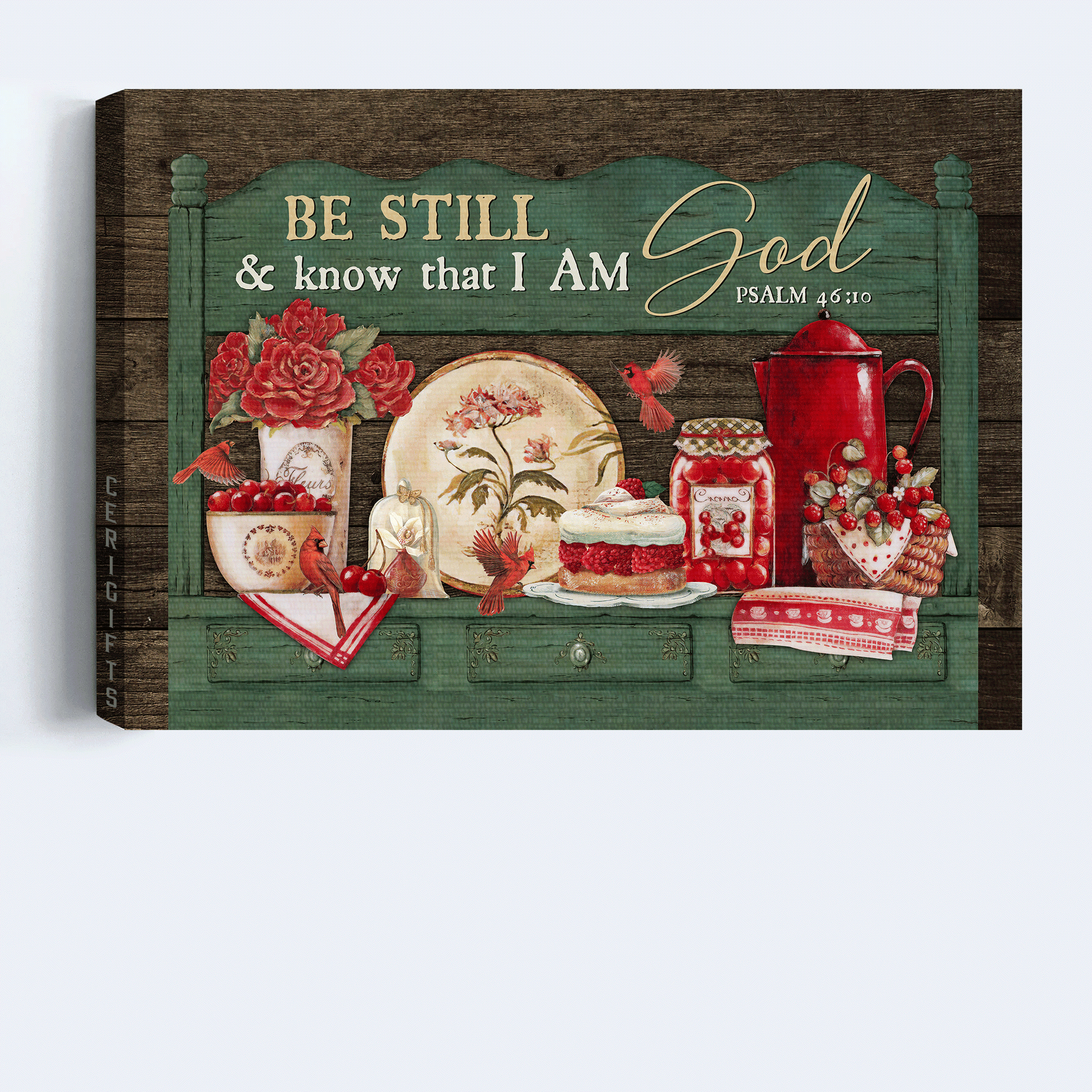 Jesus Landscape Canvas- Beautiful kitchen, Christmas Eve, Red cardinal canvas- Gift for Christian- Be still and know that I am God.
