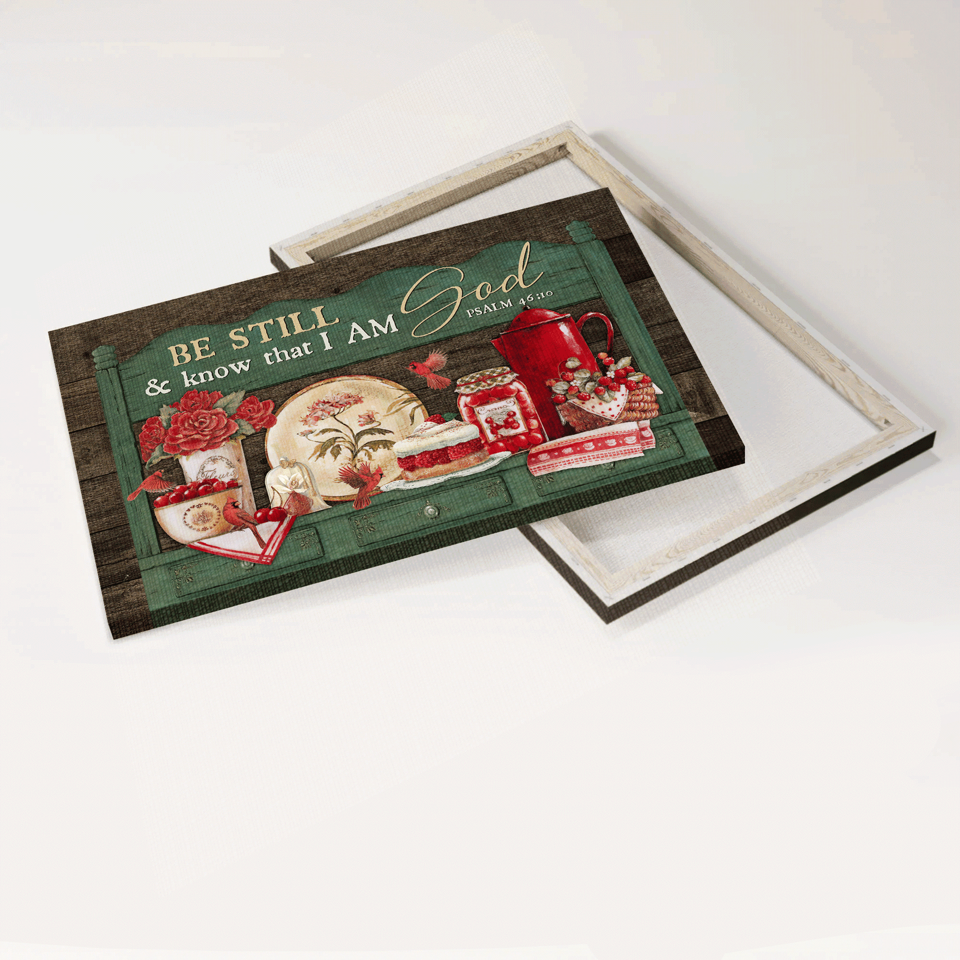 Jesus Landscape Canvas- Beautiful kitchen, Christmas Eve, Red cardinal canvas- Gift for Christian- Be still and know that I am God