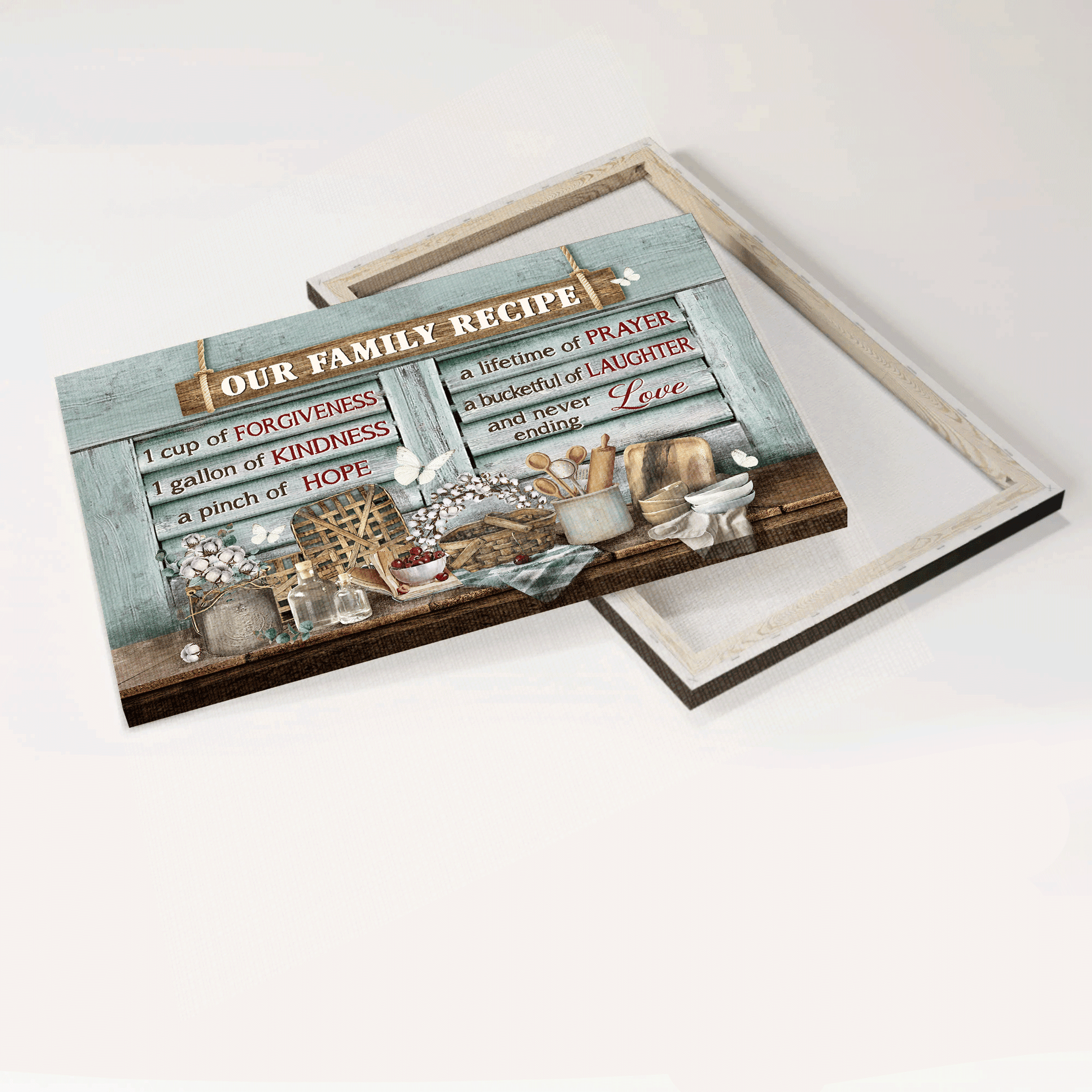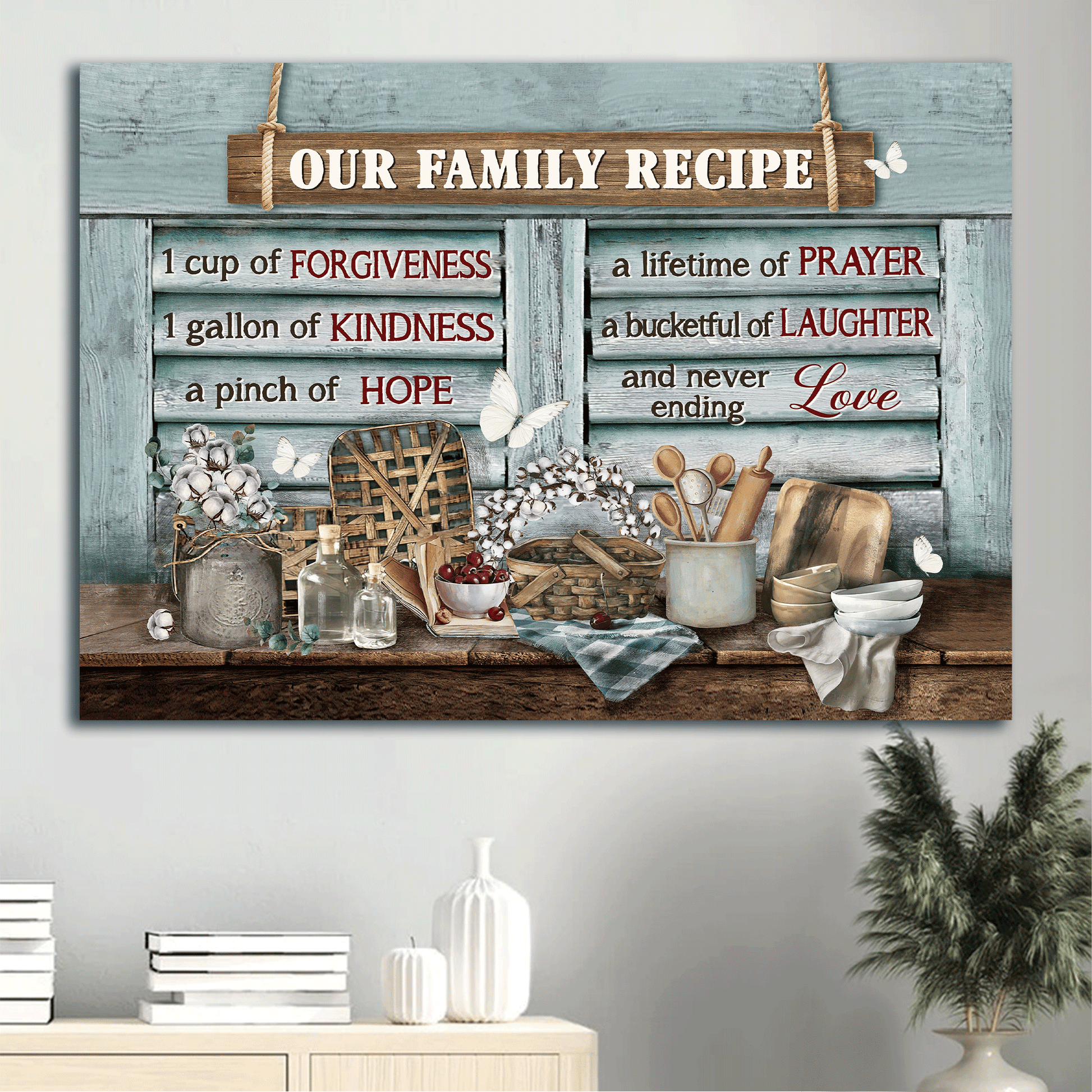 Beautiful kitchen, Cotton flower, Butterfly, Our family recipe - Jesus Landscape Canvas Prints, Christian Wall Art will bring attractiveness to any decor in the house.