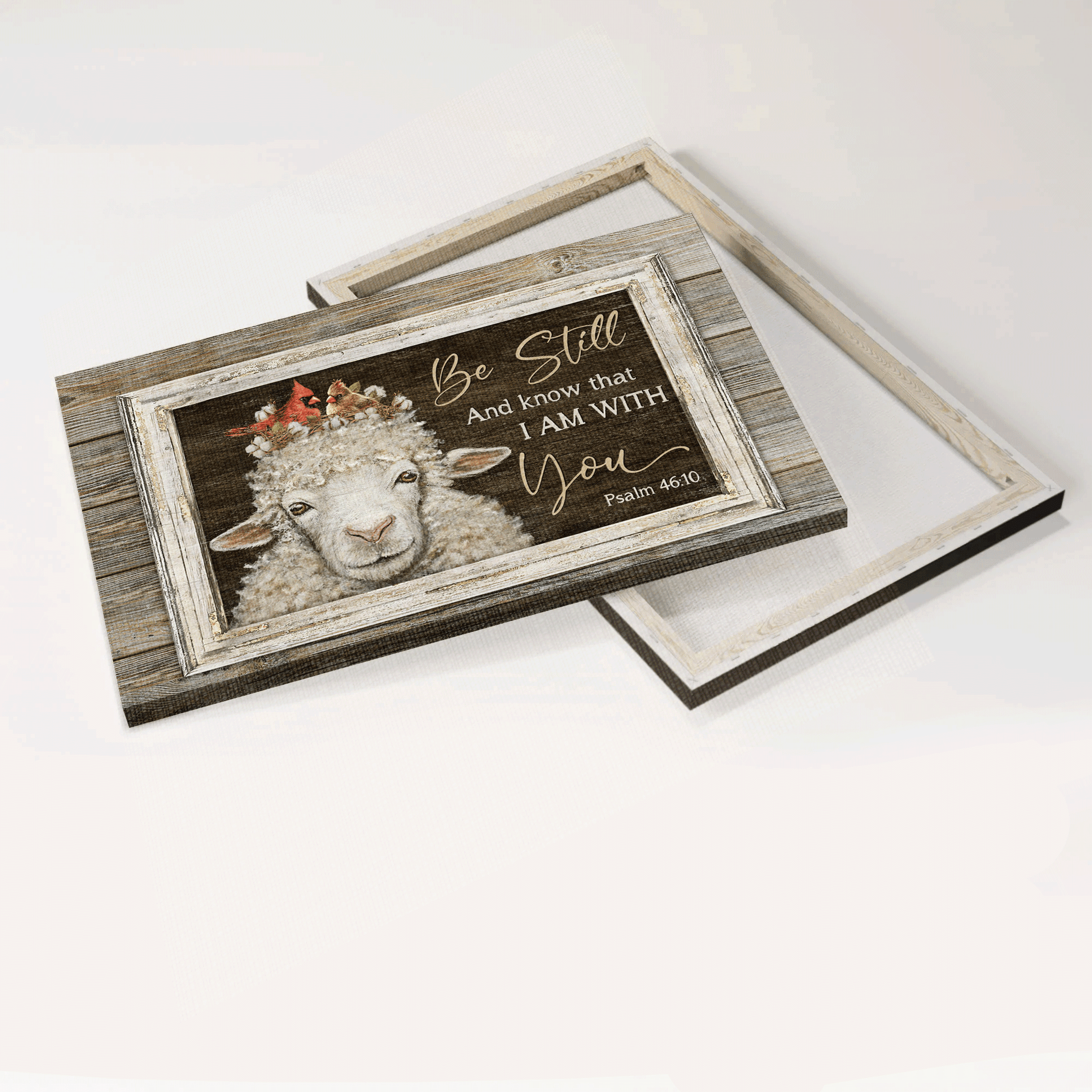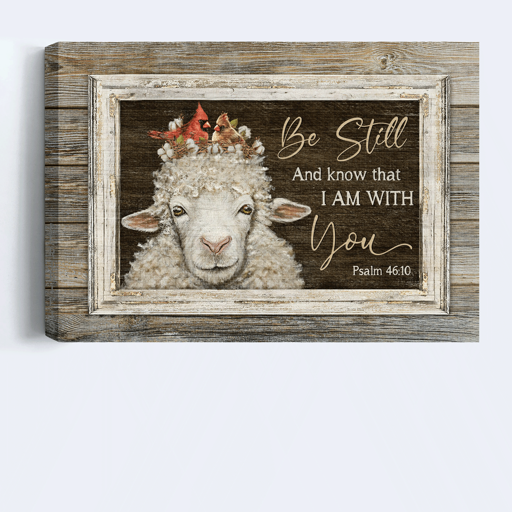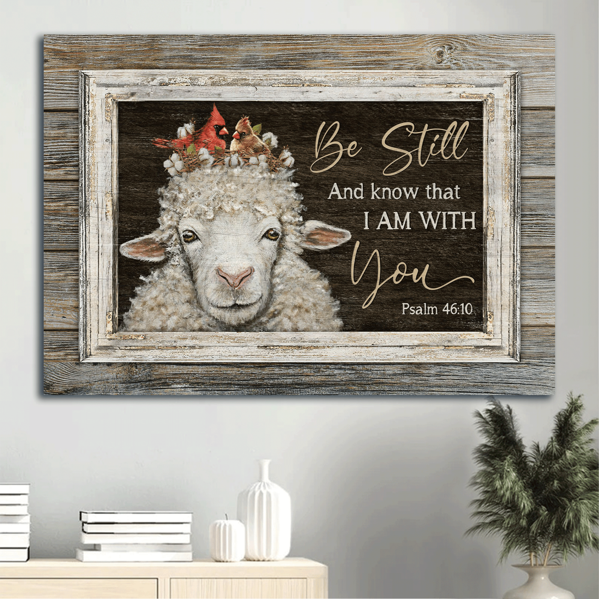 Jesus Landscape Canvas- Beautiful lamb drawing, Cardinal couple canvas- Gift for Christian- Be still and know that I am with you.