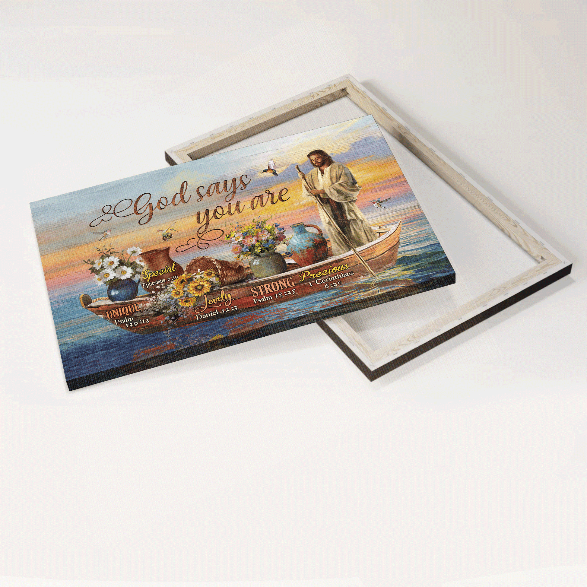 God Says You Are Unique Special Lovely Precious Strong Chosen Forgiven Canvas Prints, Wall Art suits any room from bedroom, bathroom, living room to hallway.