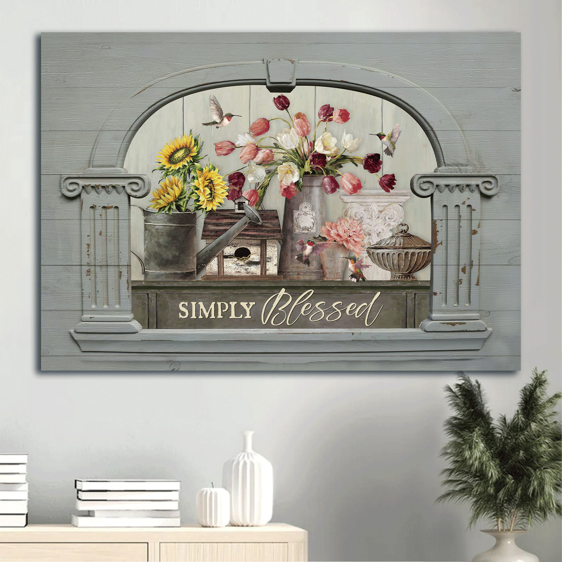 Jesus Landscape Canvas - Beautiful tulip, Sunflower painting, Colorful hummingbird Landscape Canvas - Gift For Christian - Simply blessed