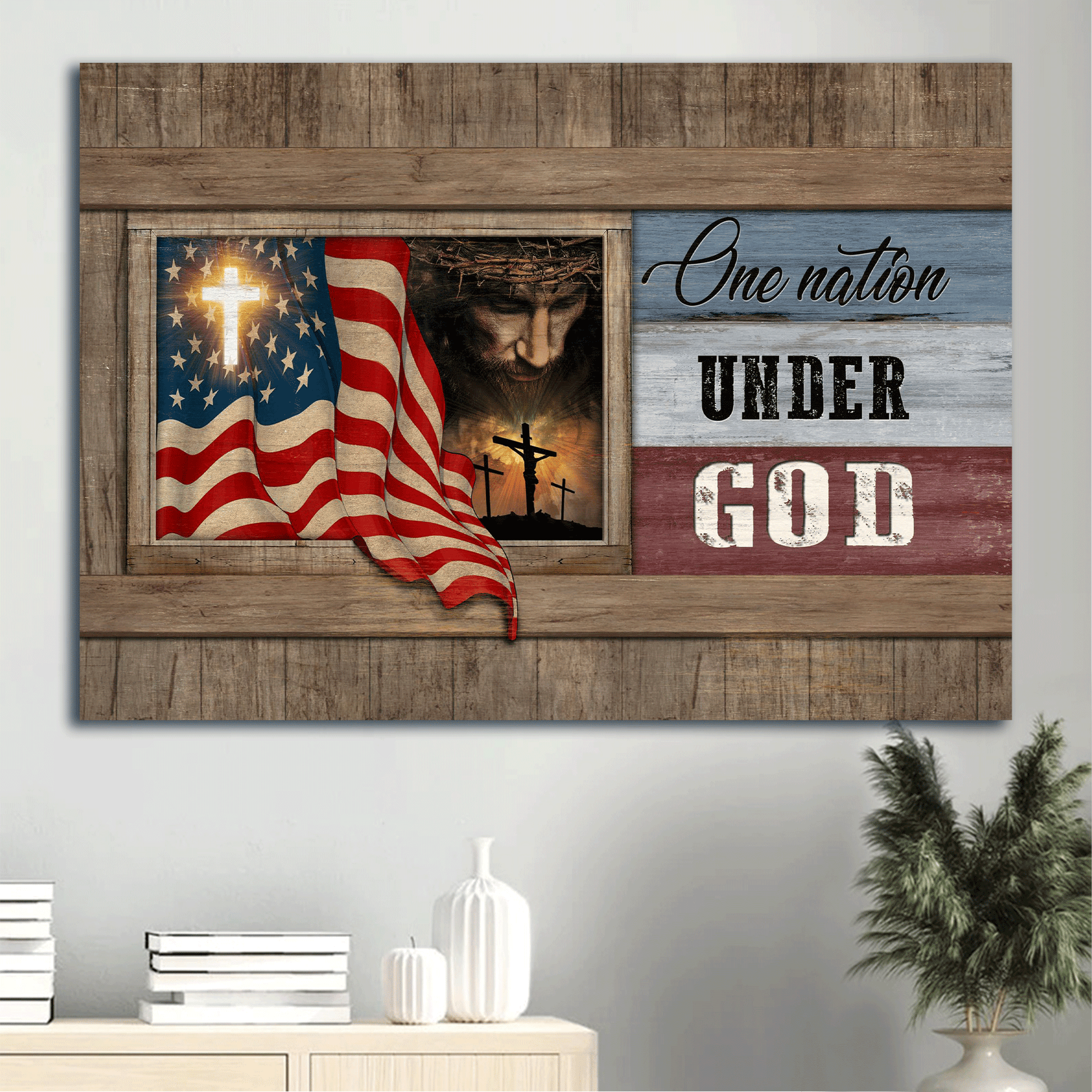 Jesus Landscape Canvas - Beautiful Us Flag, Face Of Jesus, Window Painting Landscape Canvas - Gift For Christian - One Nation Under God