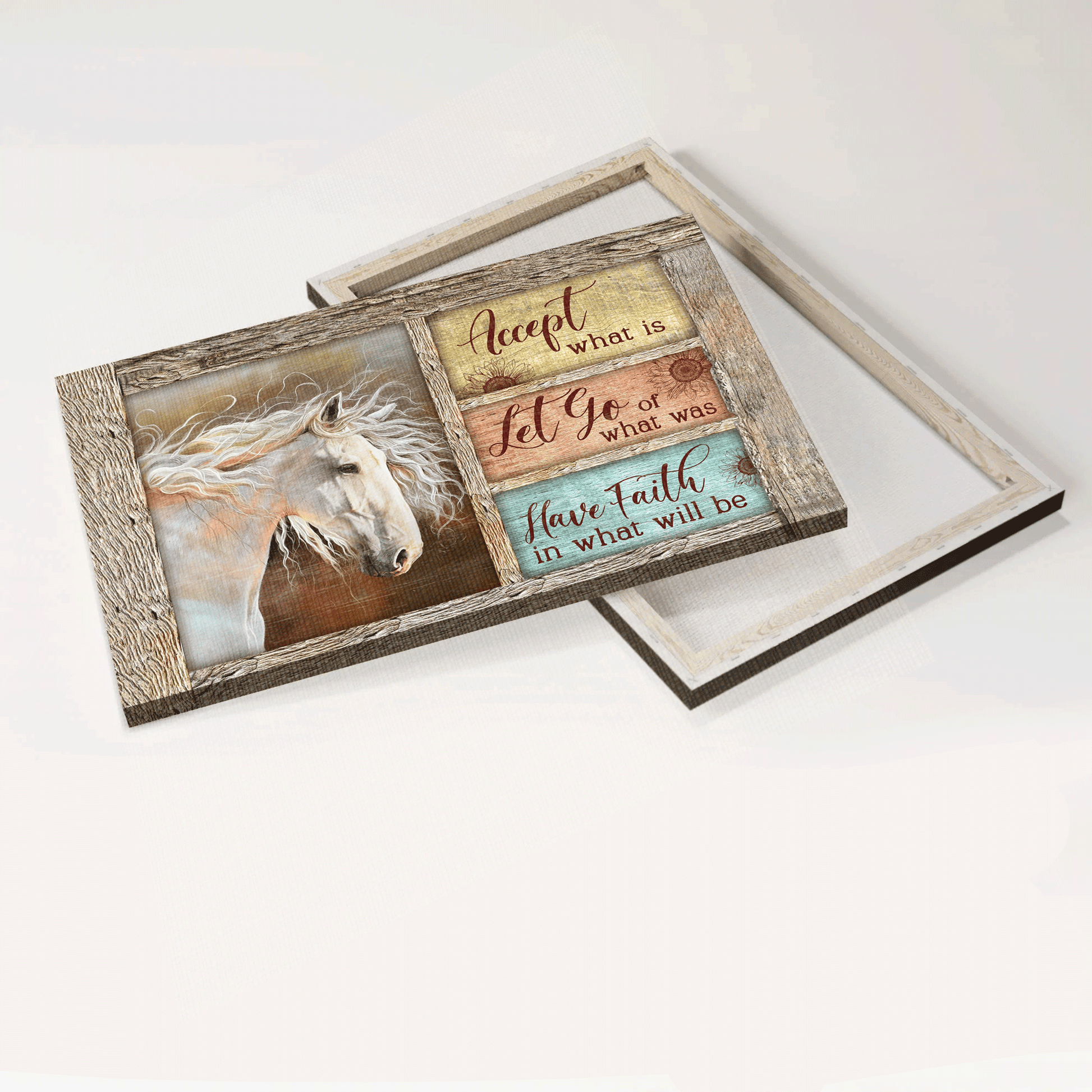This amazing Beautiful white horse, Wooden frame, Pastel background, Have faith in what will be - Jesus Landscape Canvas Prints, Wall Art is the perfect present for family members, friends or people who love white horses. Besides, the wall art suits any room in the house from the living room, bedroom, kitchen to even the entryway.
