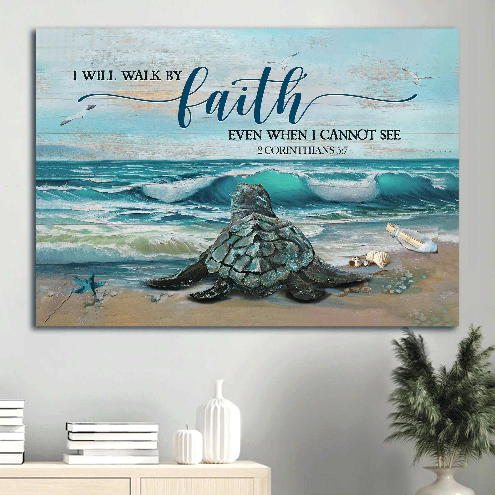 Besides, the Big sea turtle, Blue ocean drawing, Seagull, I will walk by faith even when I cannot see - Jesus Landscape Canvas Prints, Christian Wall Art is suited for any room in the house from the living room, bedroom, kitchen to even outdoor space.
