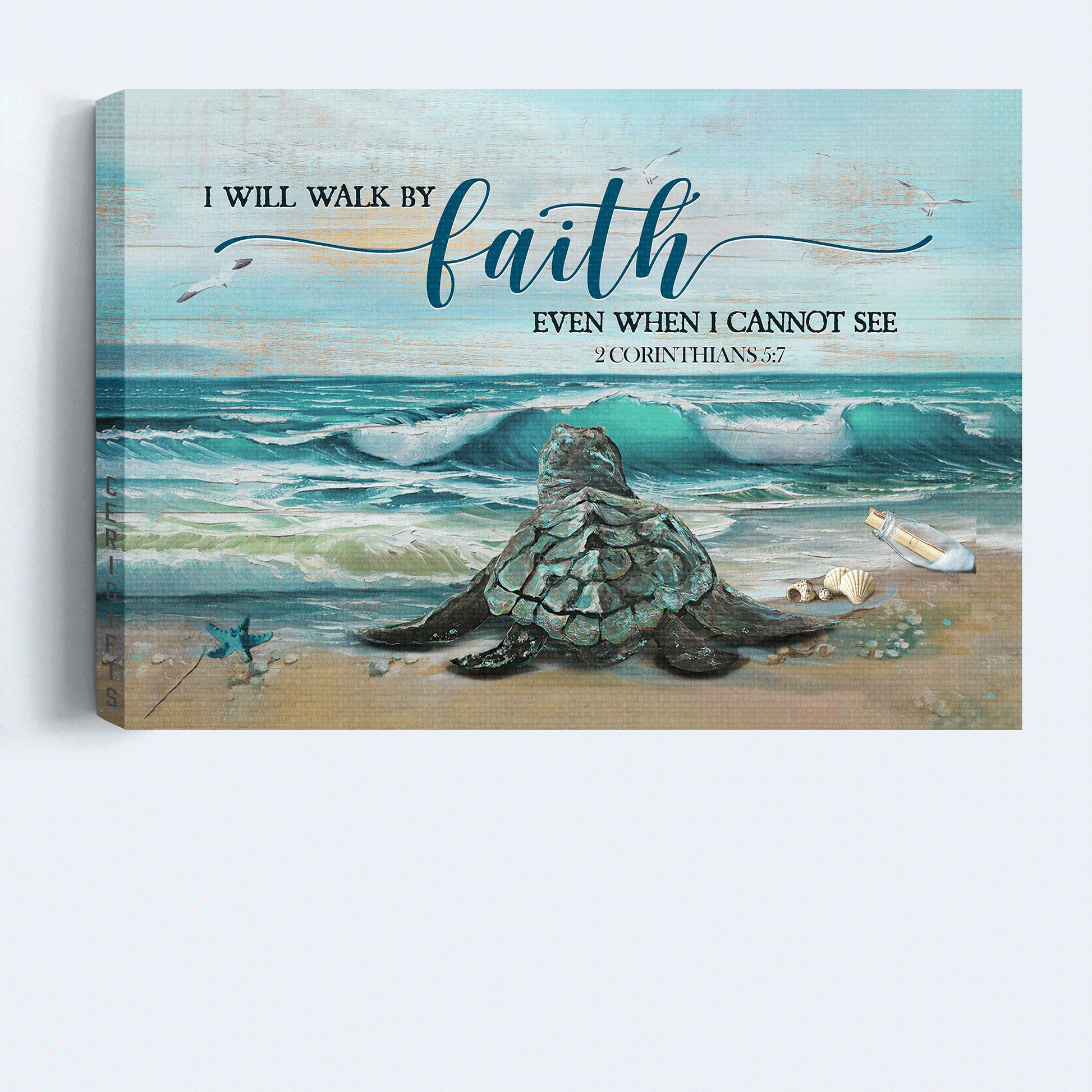 Besides, the Big sea turtle, Blue ocean drawing, Seagull, I will walk by faith even when I cannot see - Jesus Landscape Canvas Prints, Christian Wall Art is suited for any room in the house from the living room, bedroom, kitchen to even outdoor space.